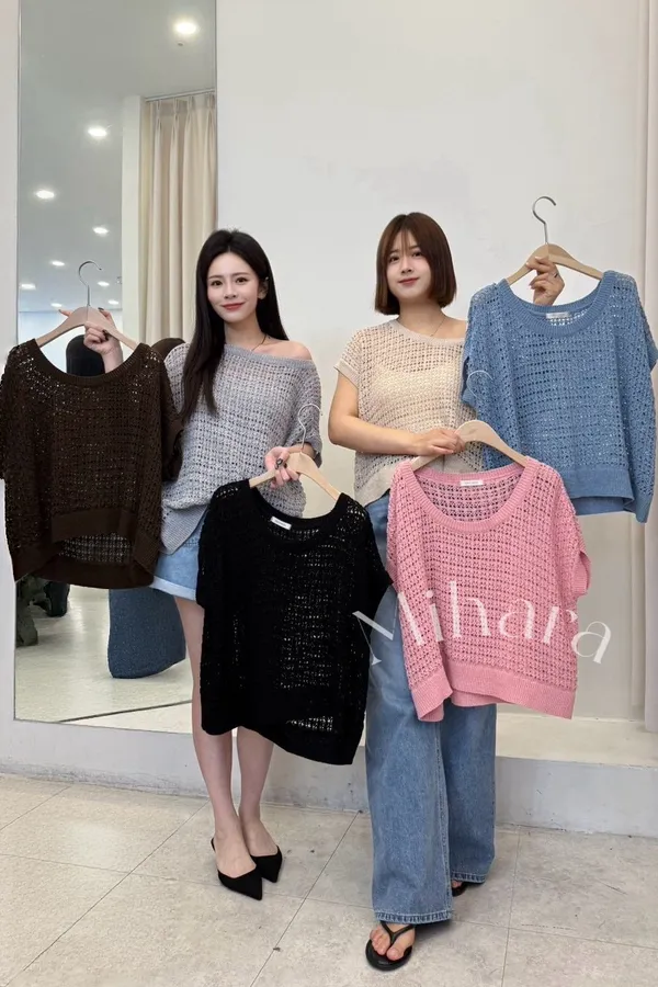 A14 0319好穿家圓領洞洞針織罩衫6色