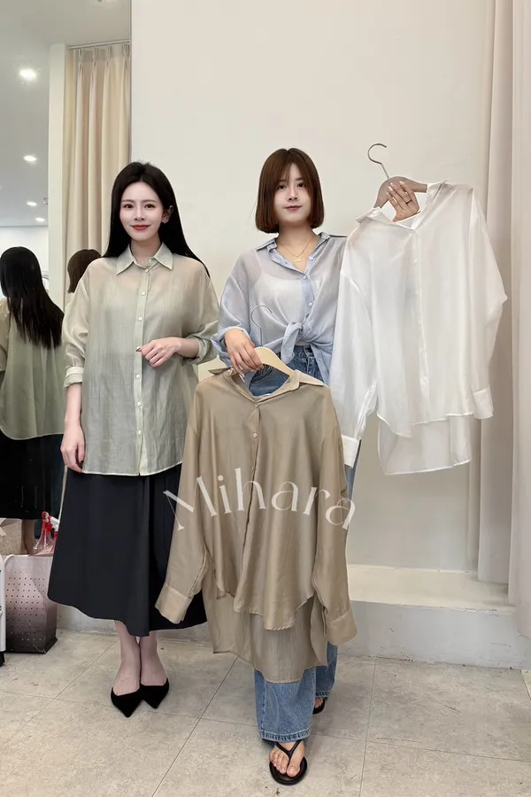 A18 0319好穿家條紋天絲薄襯衫上衣4色