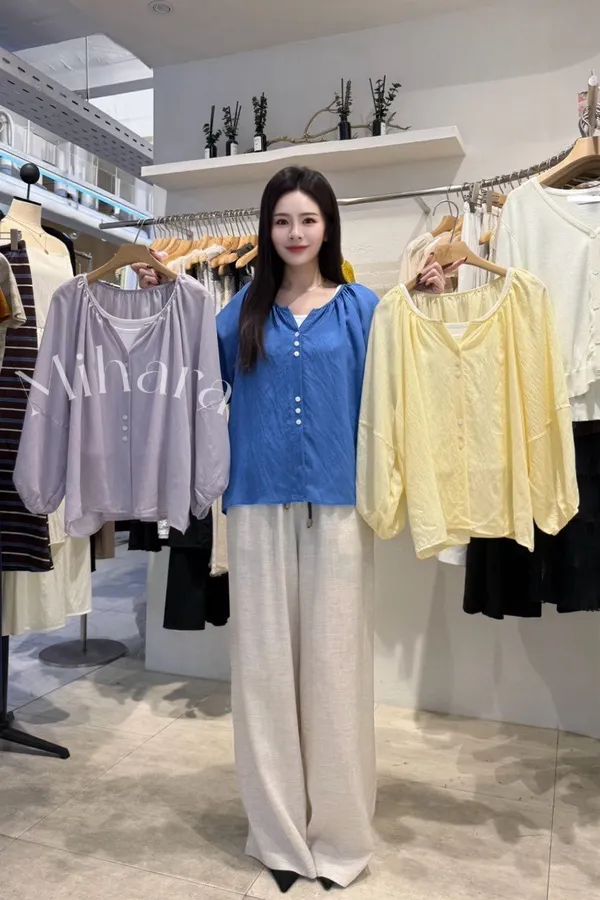 A27 0319許願家抓褶小V領上衣+寬肩帶圓領背心(SET)6色