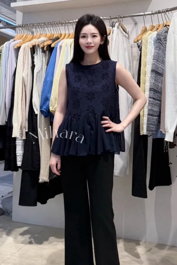 A32 0319(限量特)許願家蕾絲下擺簍空雕花圓領背心