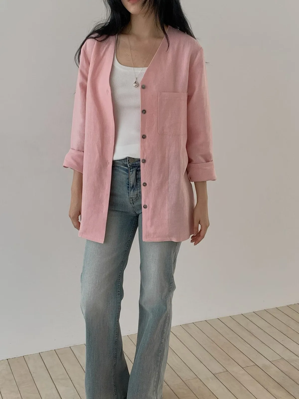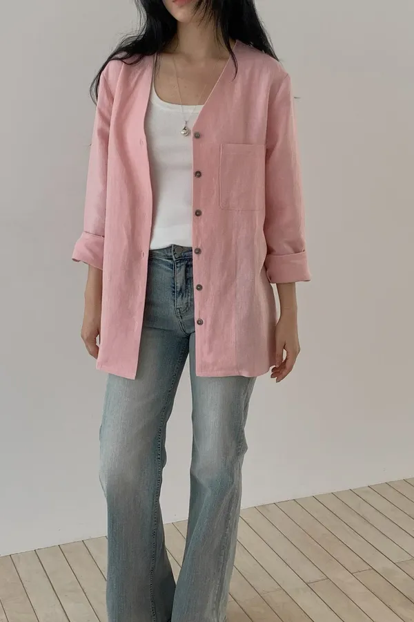 B08字母家單口袋V領排釦外套