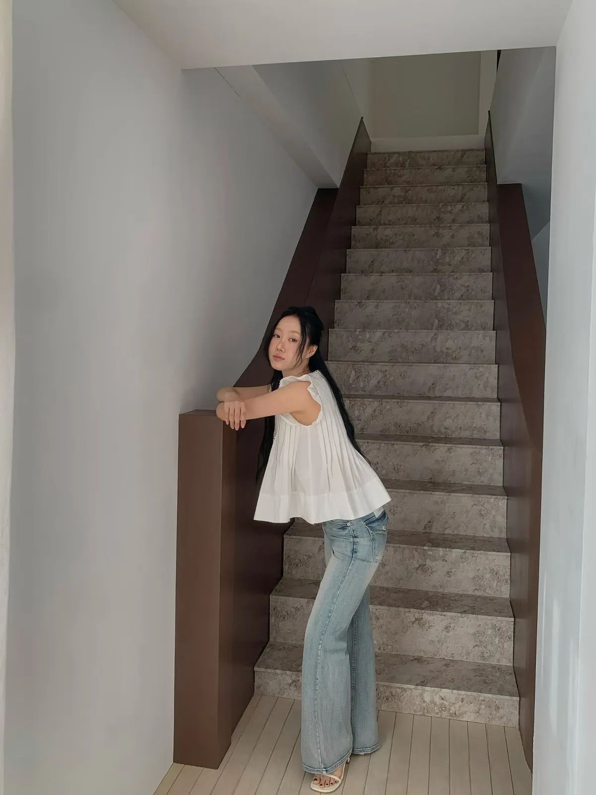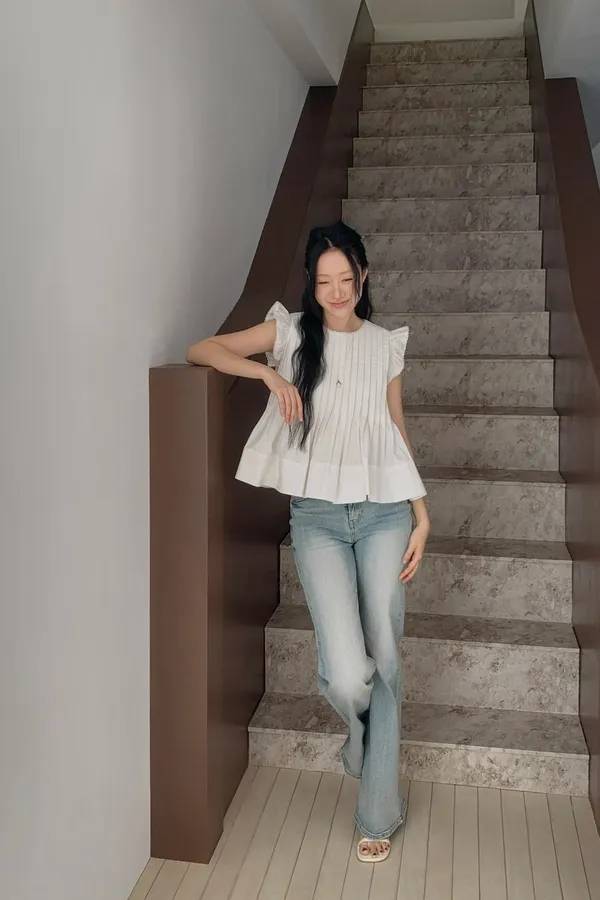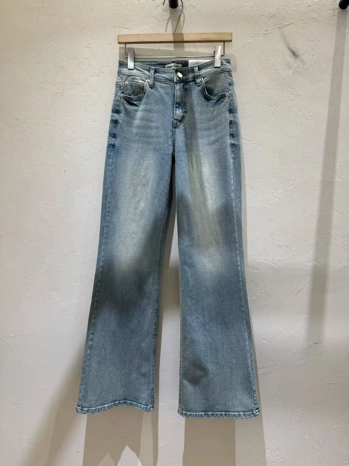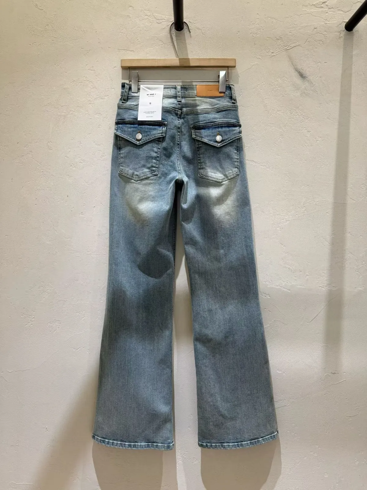 B04字母家後掀蓋口袋刷色牛仔褲