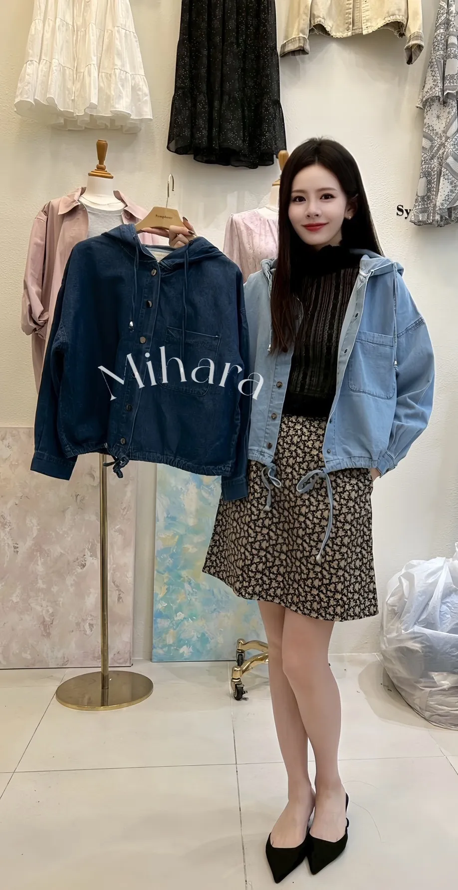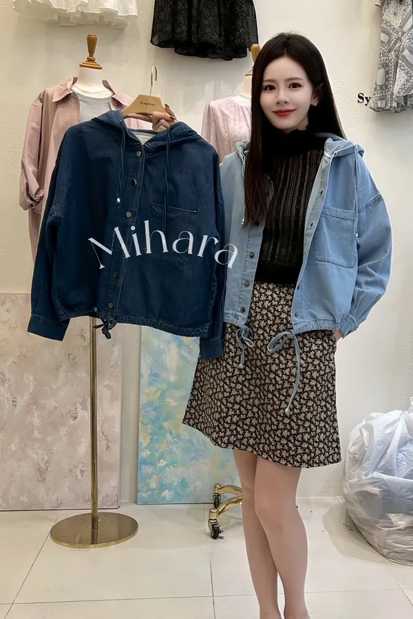 A15 0322(限量特)拉拉歐膩家抽繩連帽牛仔外套2色