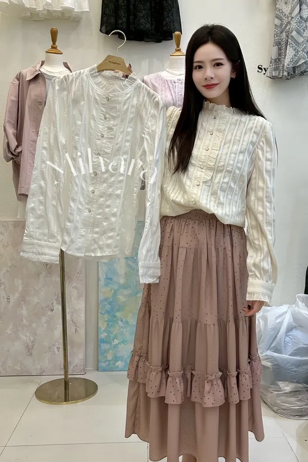 A18 0322(限量特)拉拉歐膩家拼接布蕾絲襯衫2色