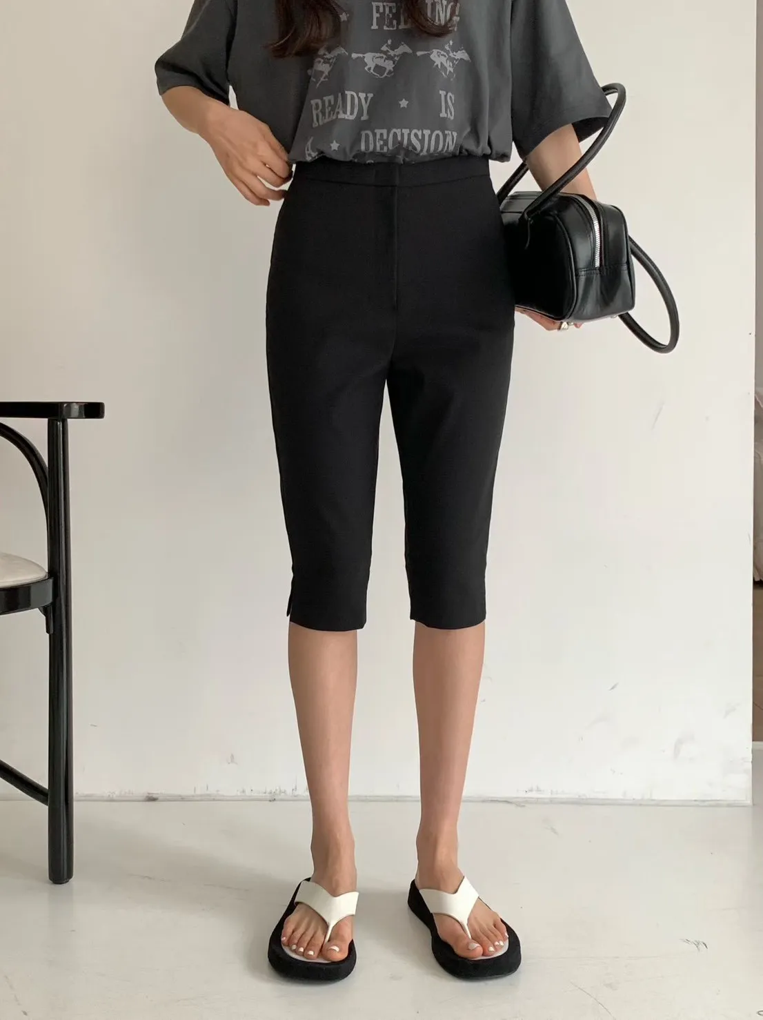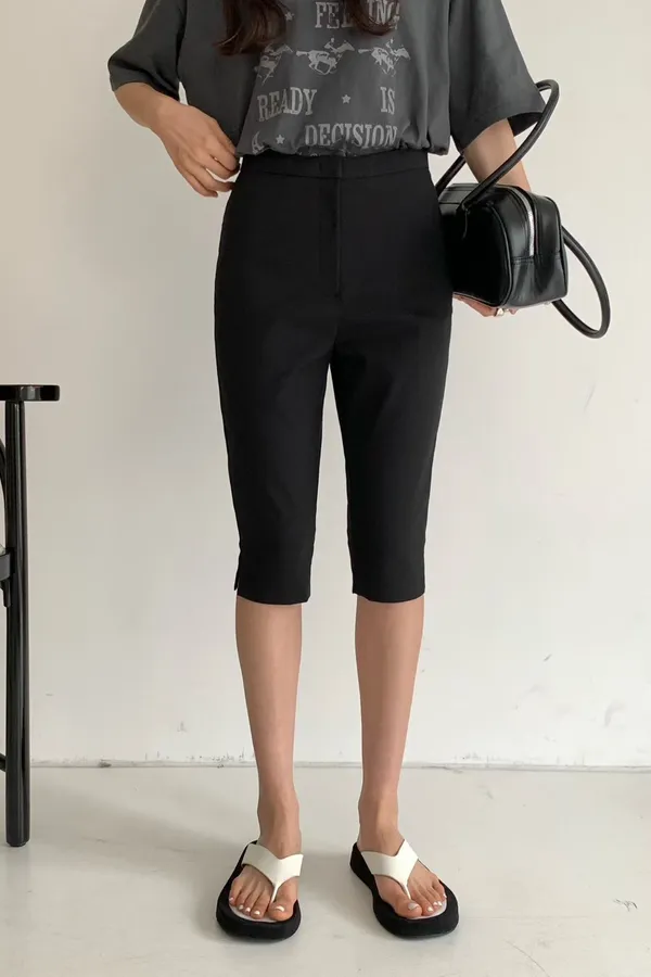 A24 0322質感歐膩家側開衩五分褲2色(S/M)