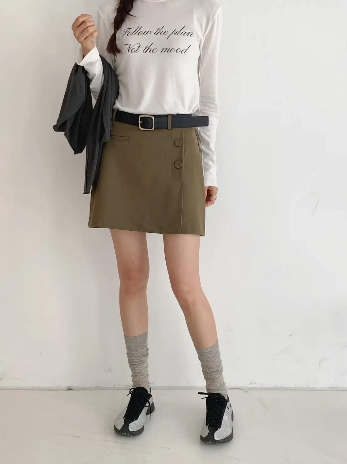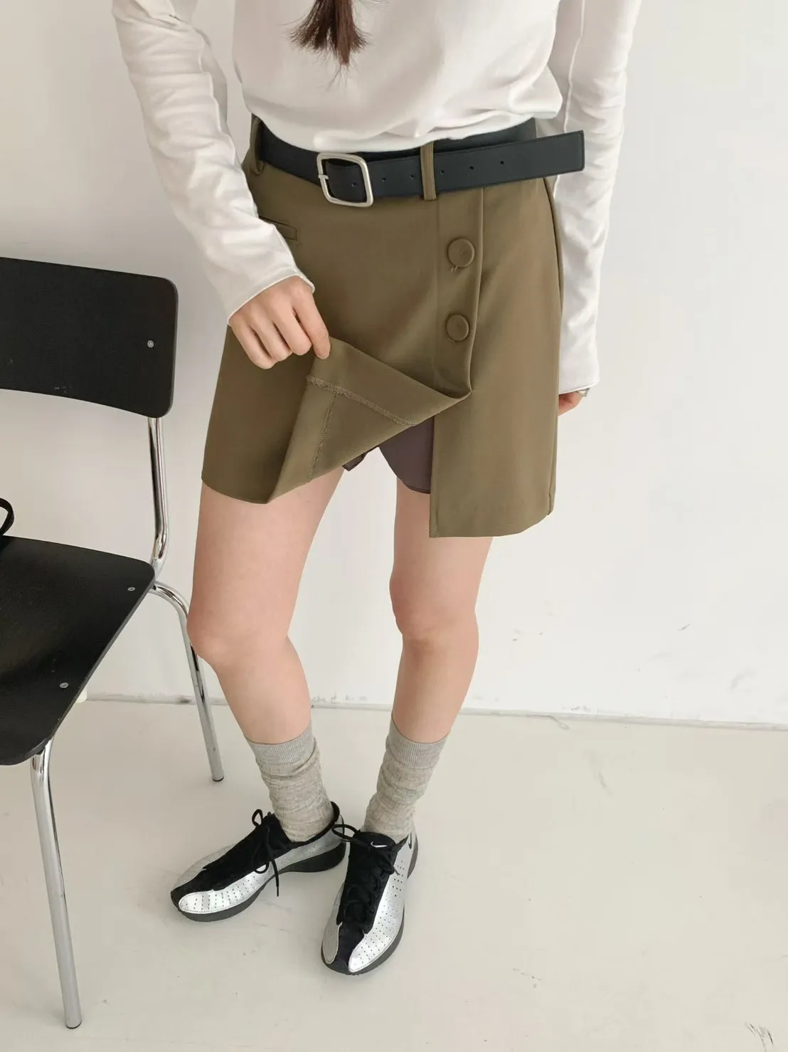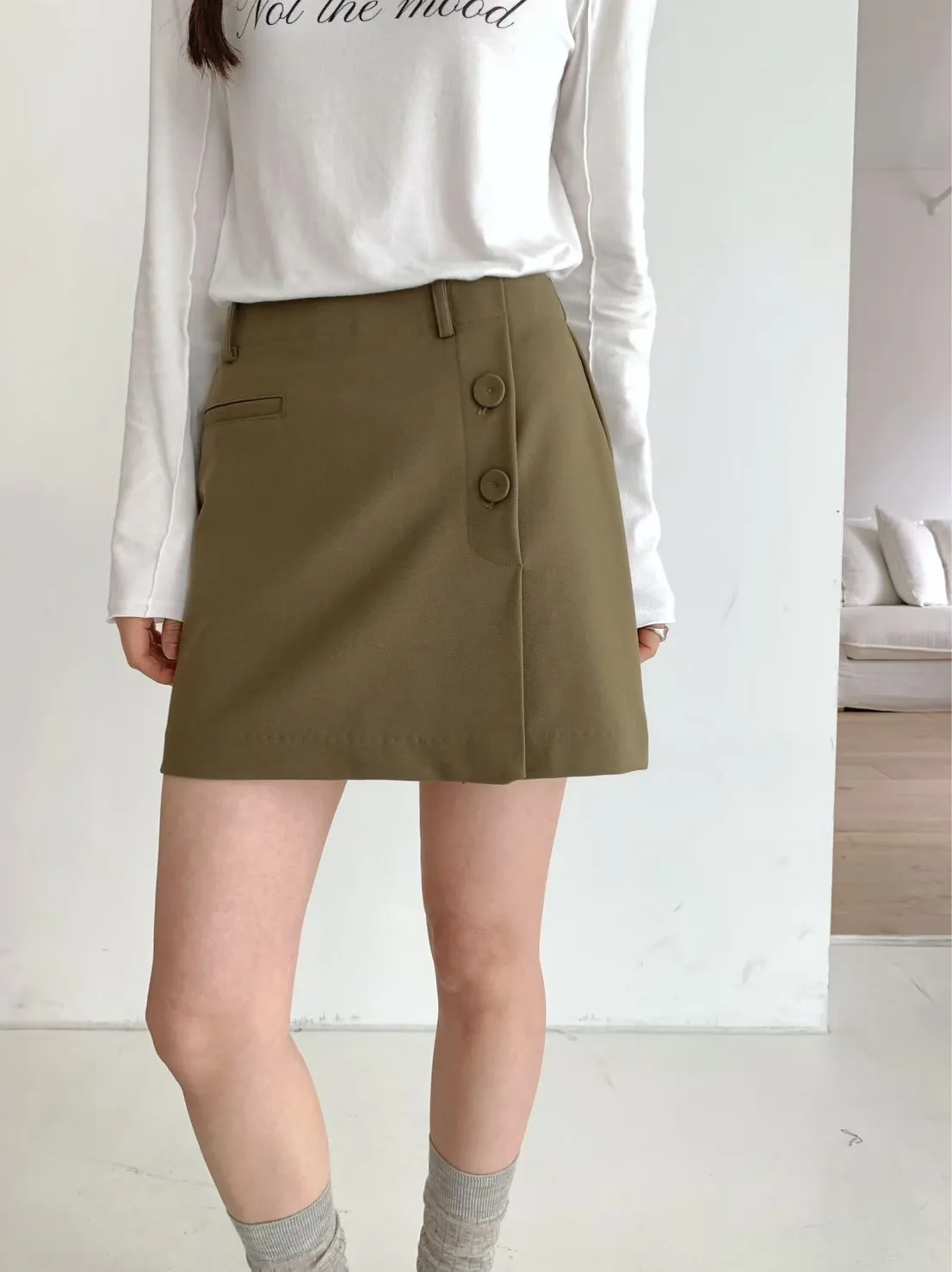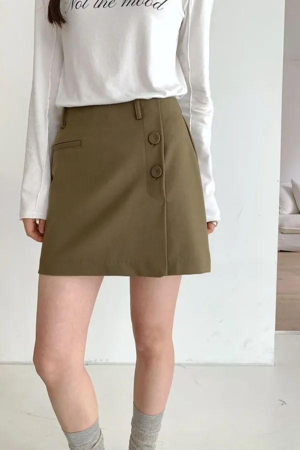 A25 0322(限量特)質感歐膩家側開衩H字短褲裙2色(S/M)