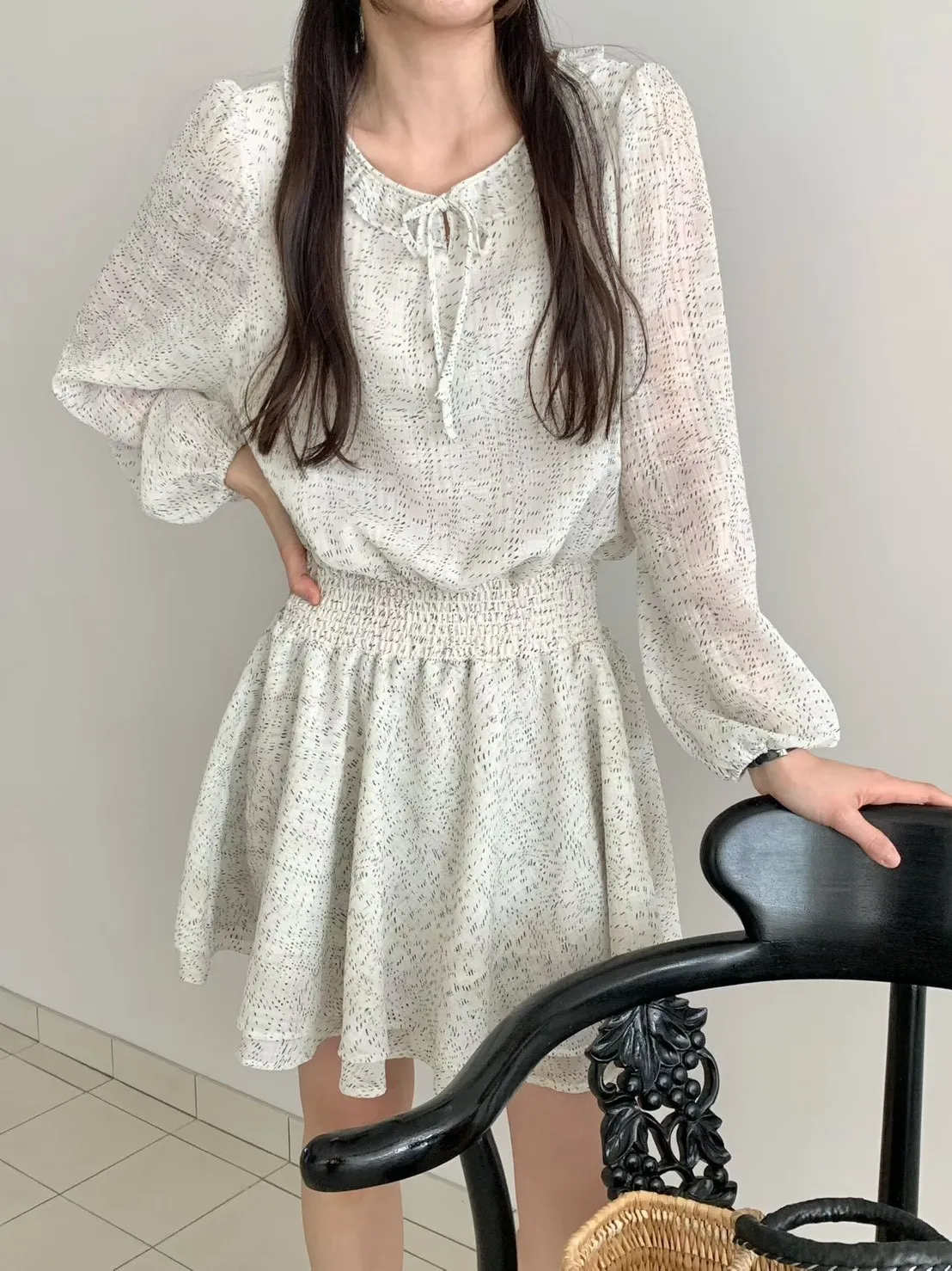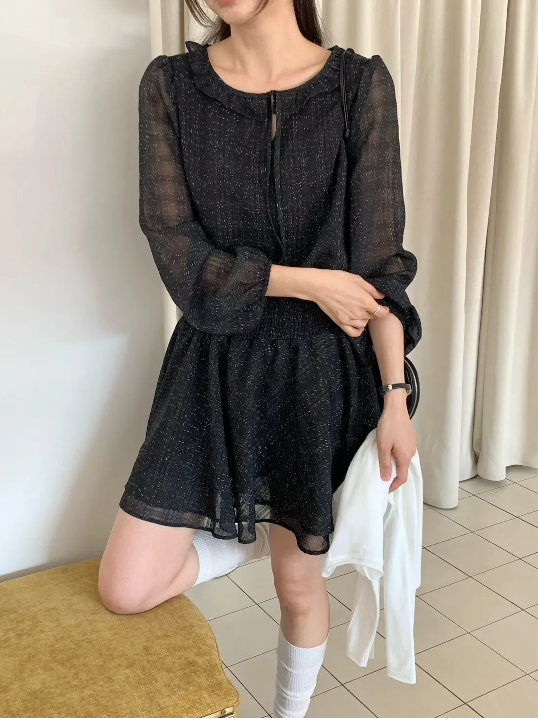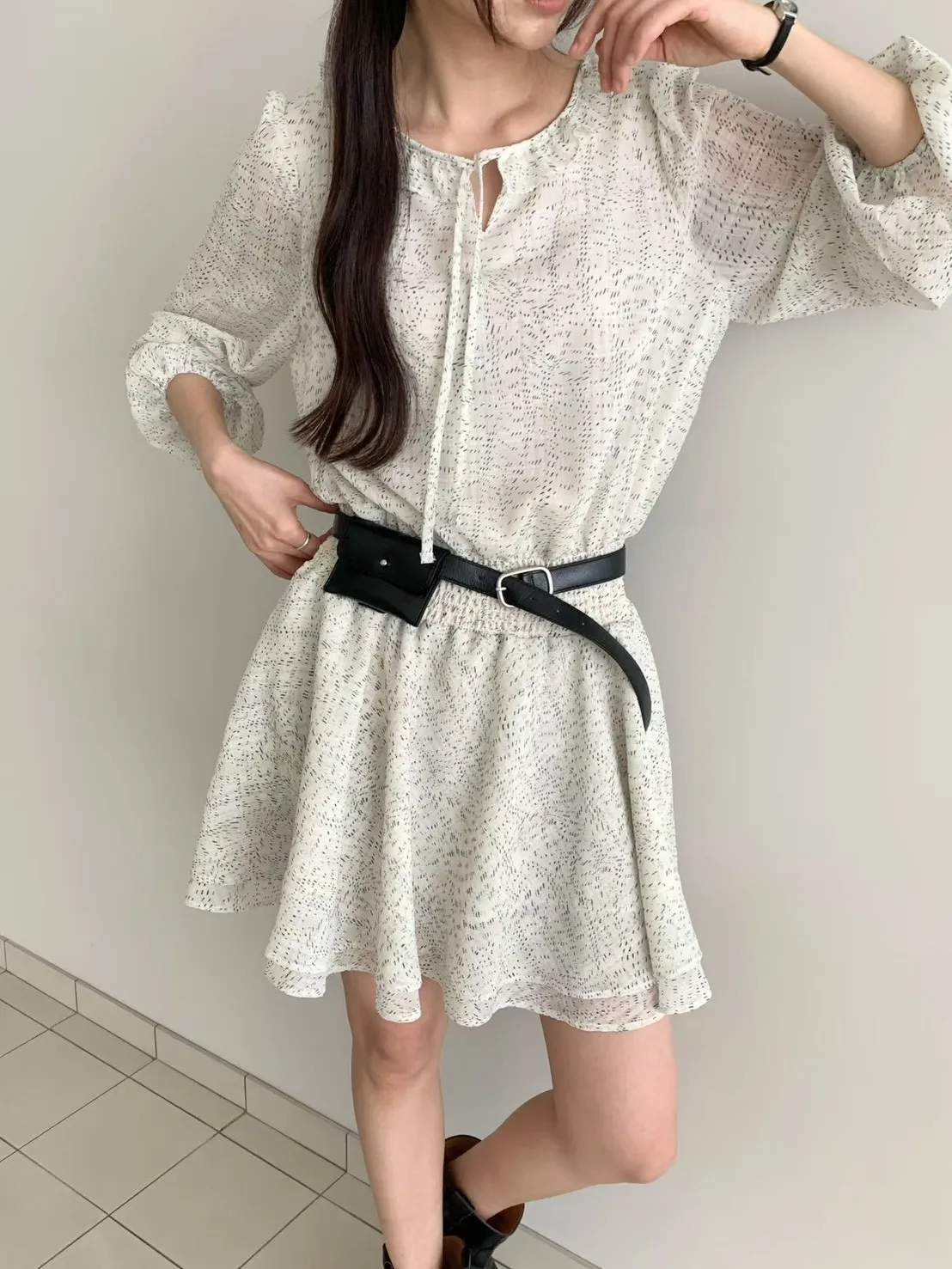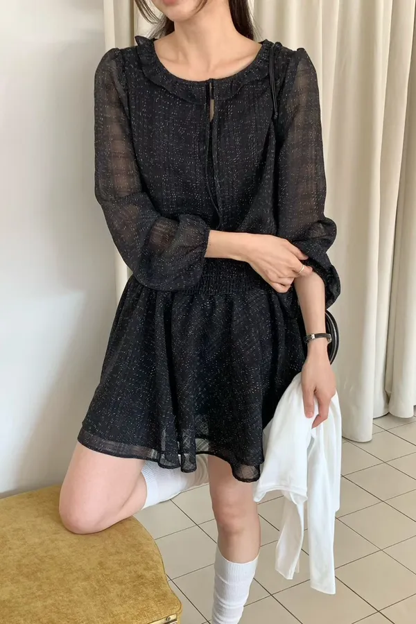 A26 0322質感歐膩家格紋綁帶小V領雪紡洋裝2色