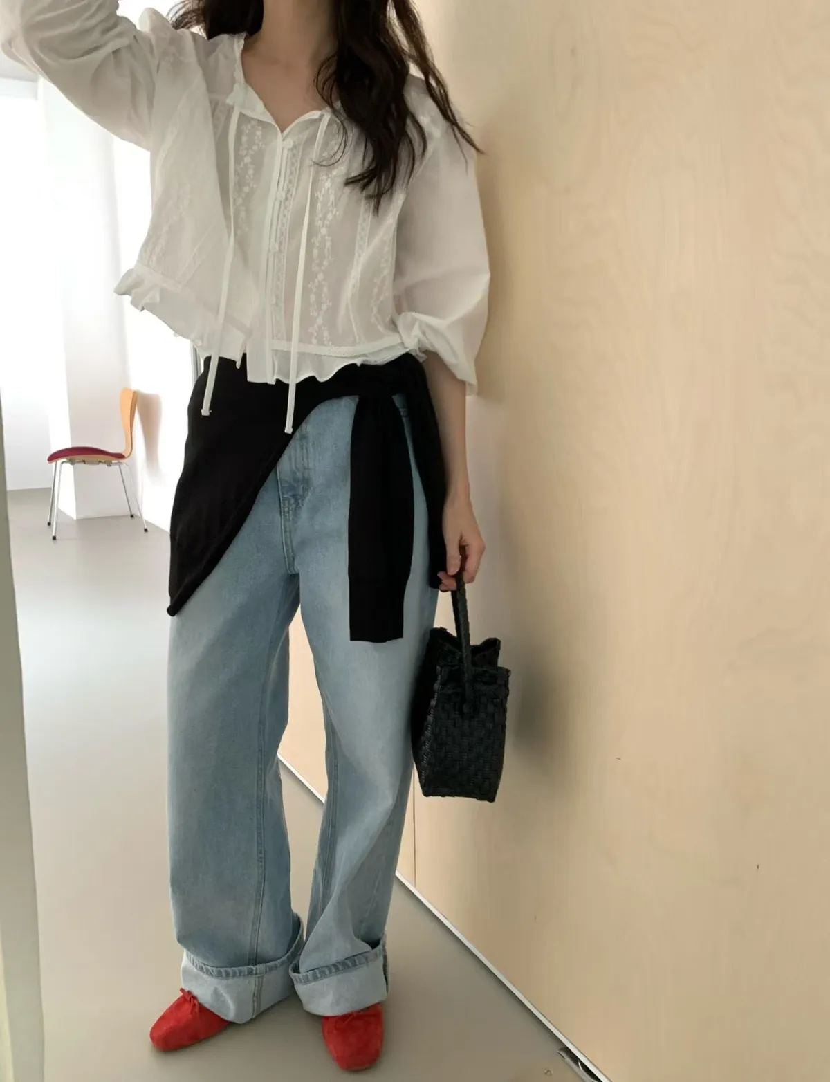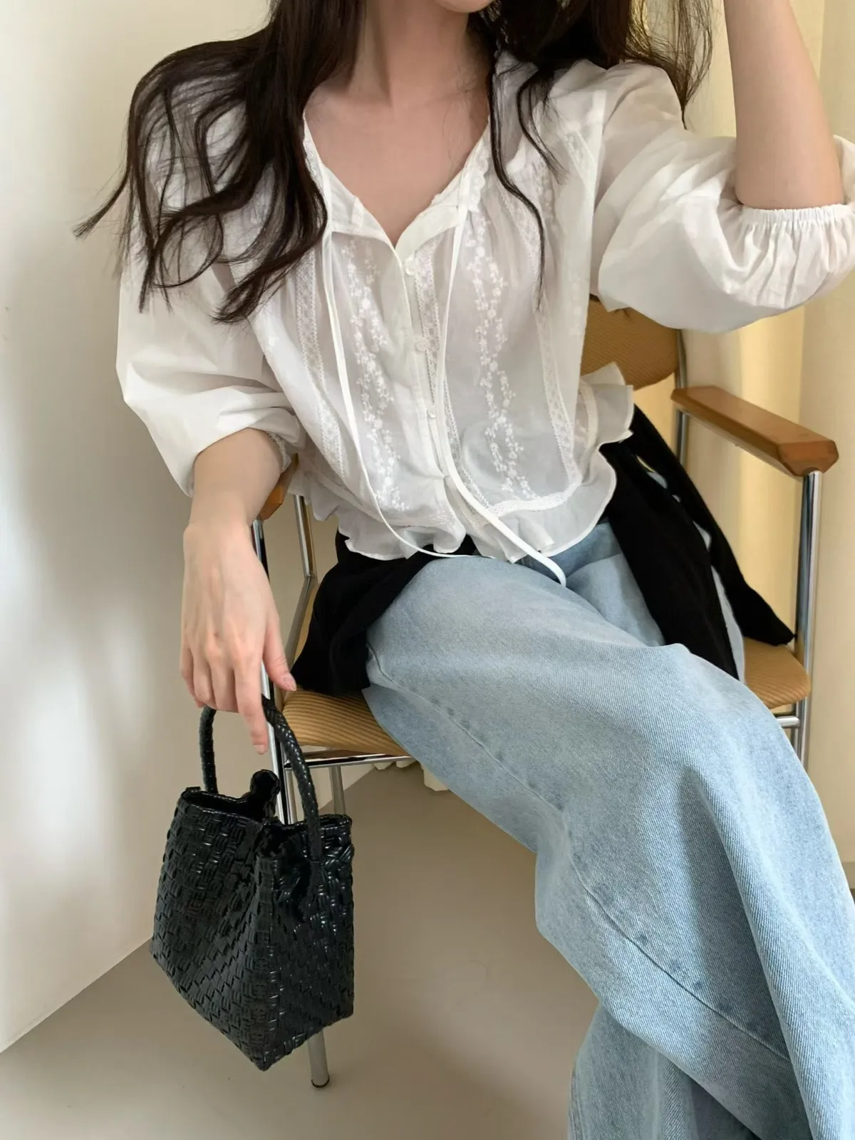 B16小荷葉布蕾絲上衣