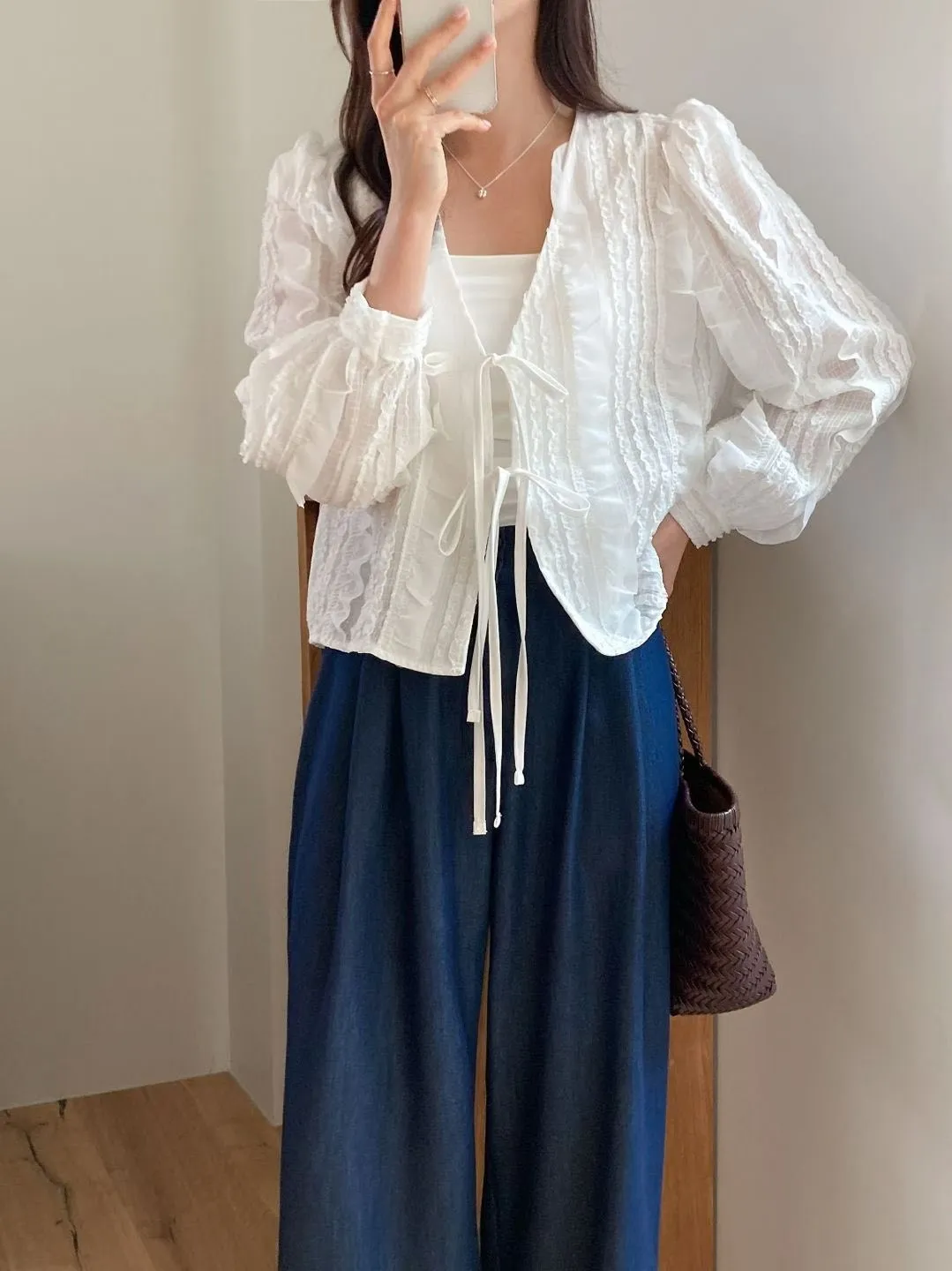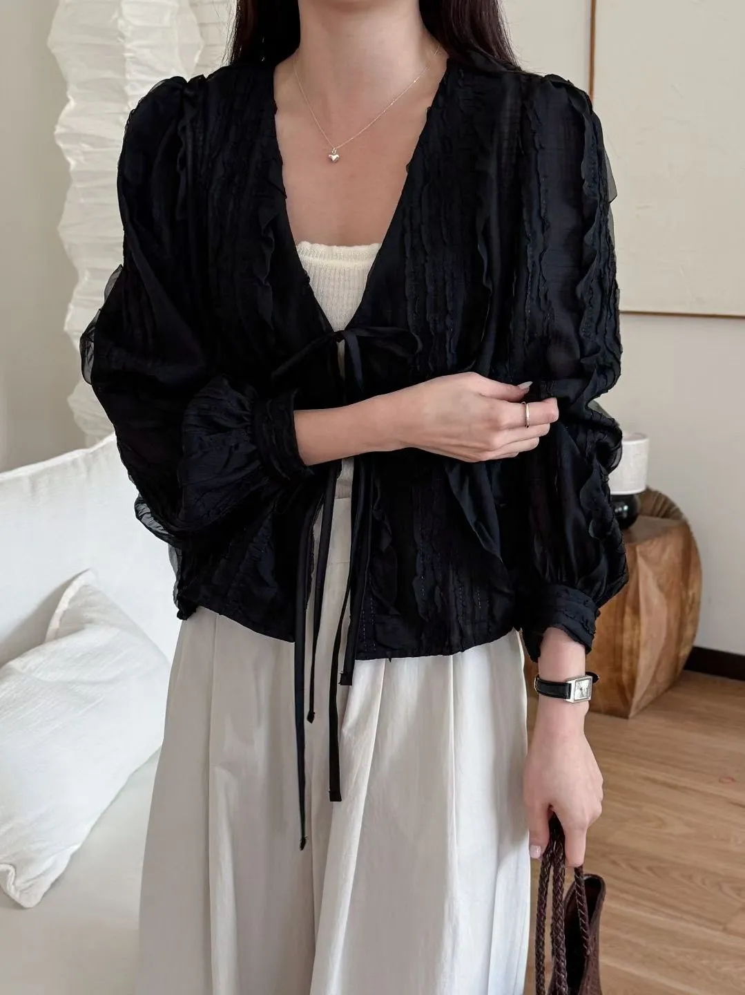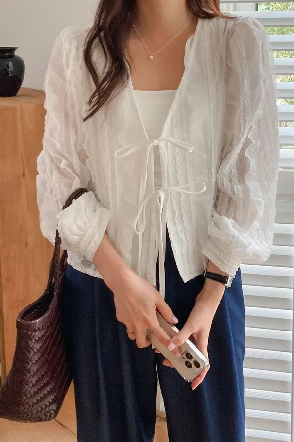 B61浪漫立體蕾絲綁帶罩衫