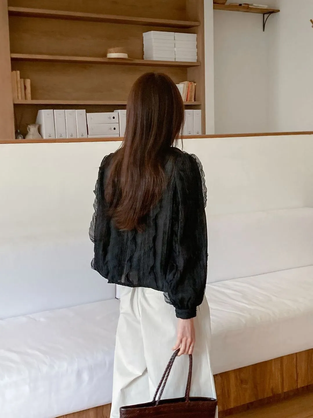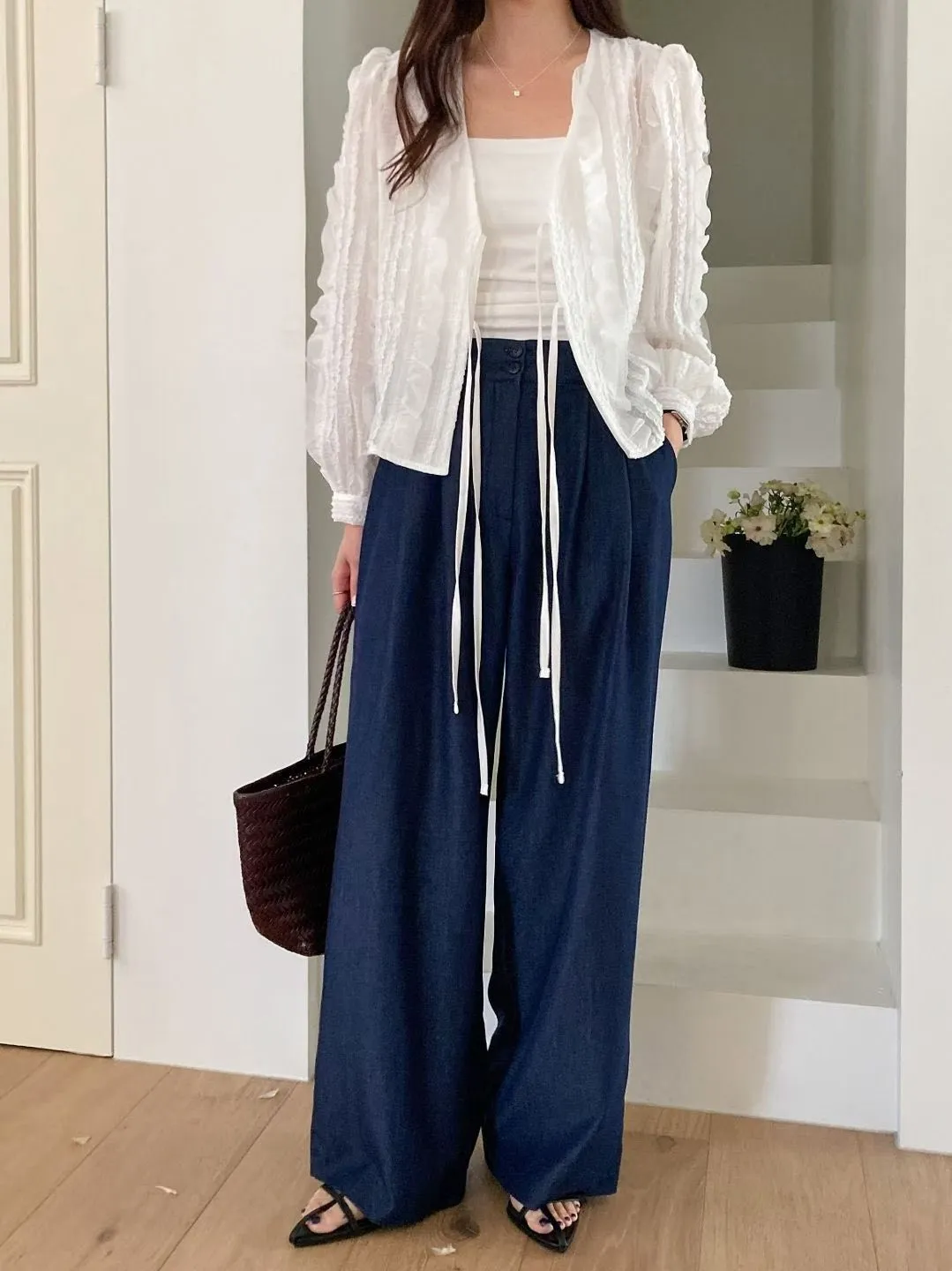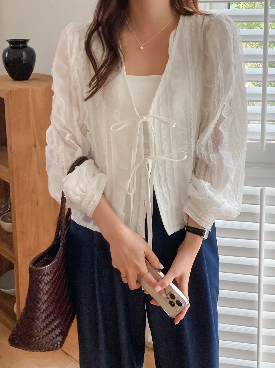 B61浪漫立體蕾絲綁帶罩衫