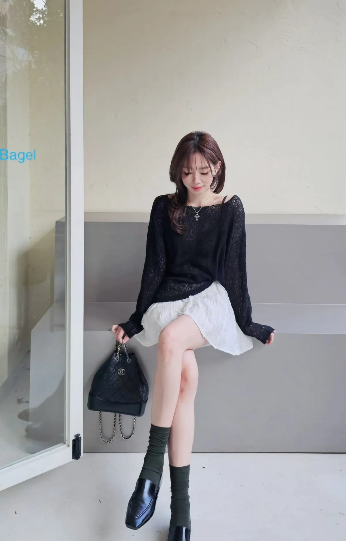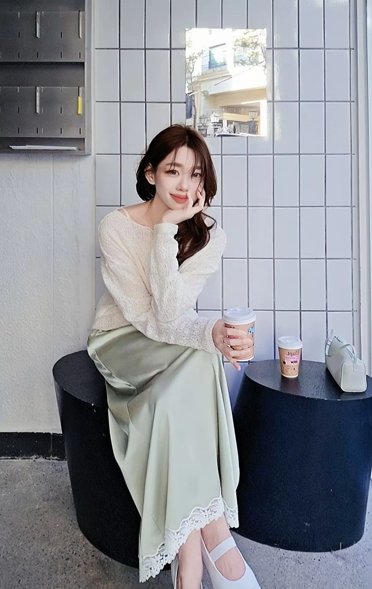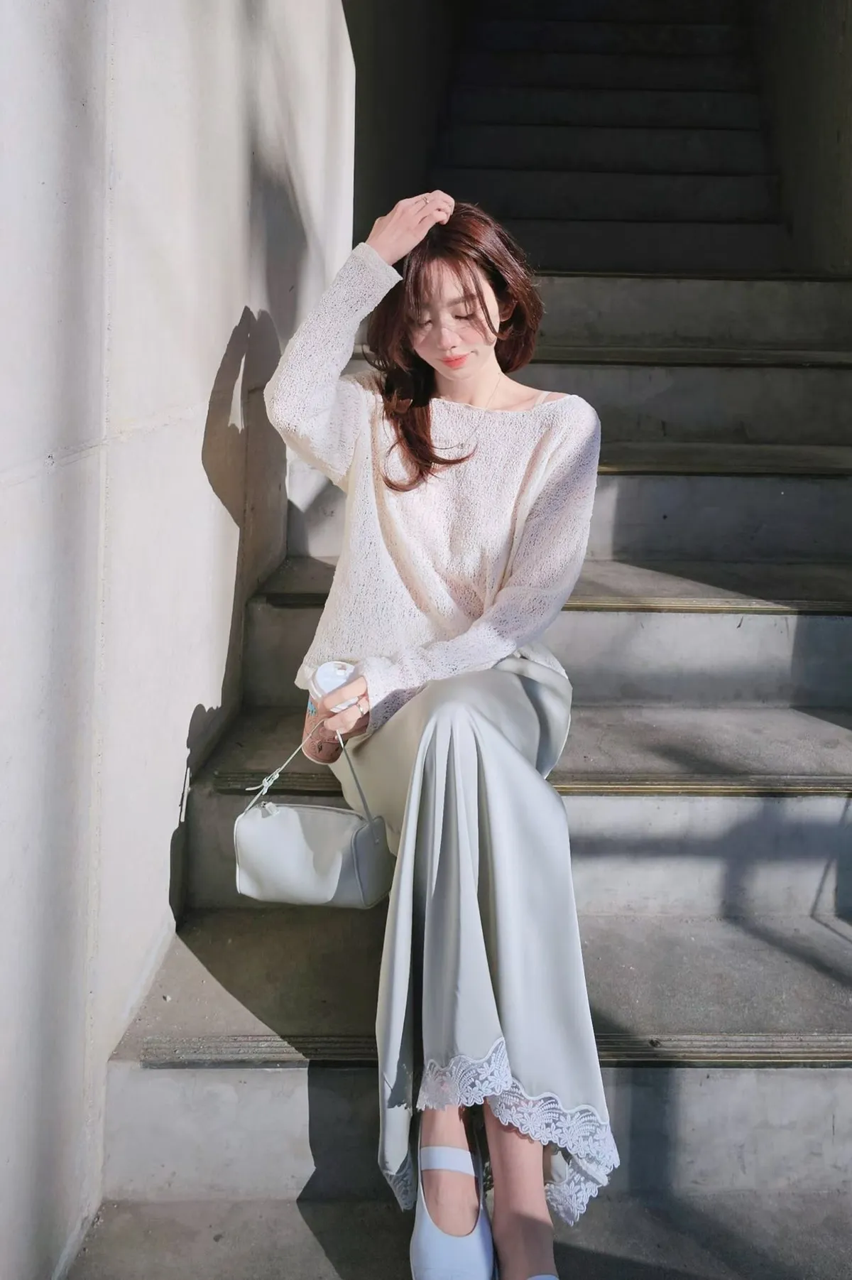 ★搭配:下擺蕾絲緞面長裙
