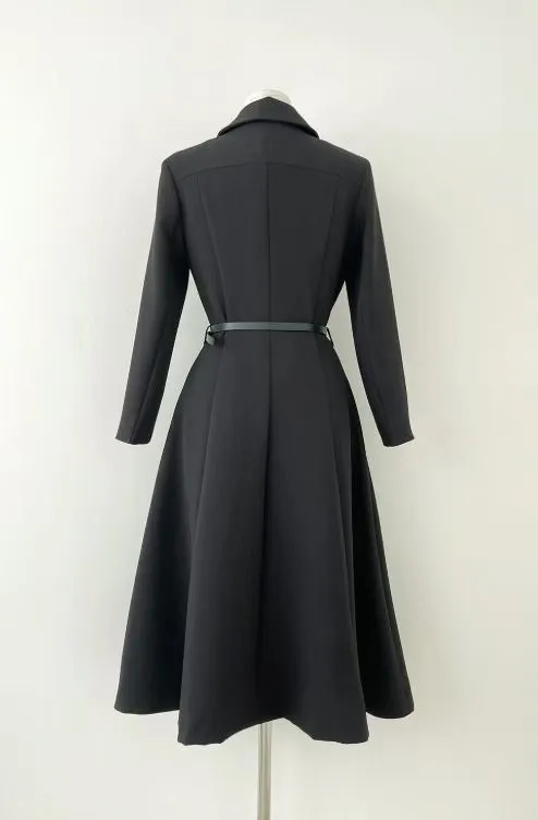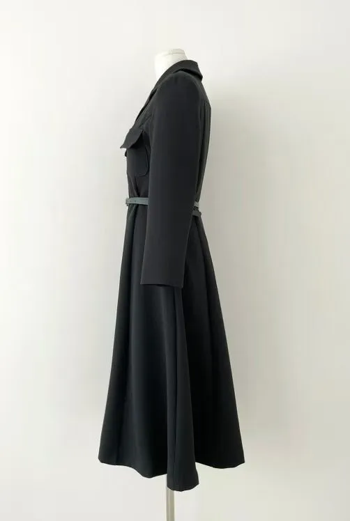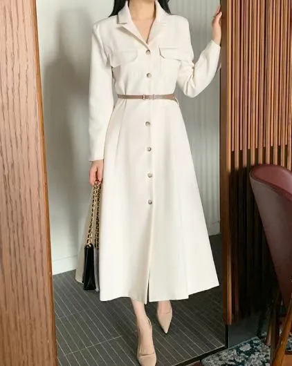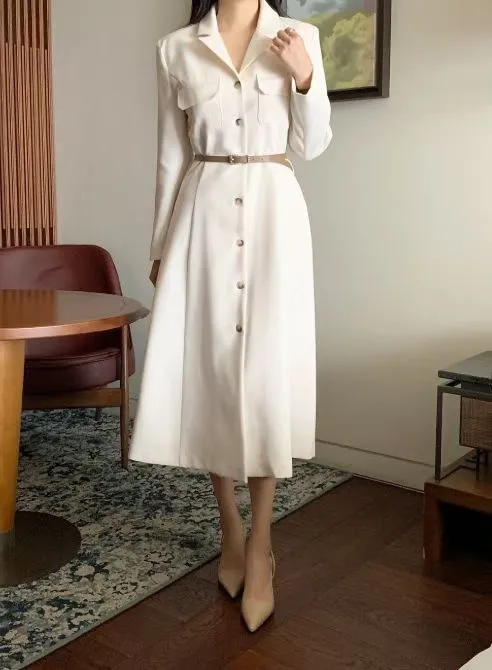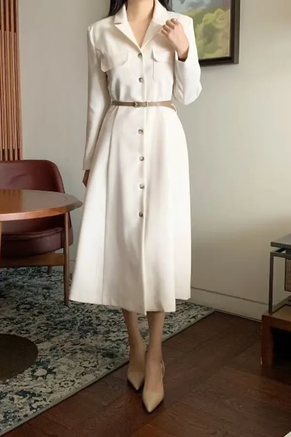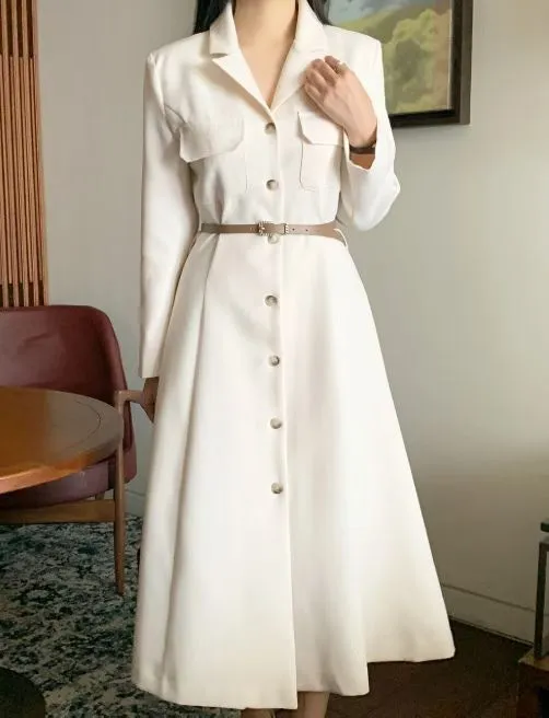 A24 0325名媛翻領開釦附腰帶洋裝2色