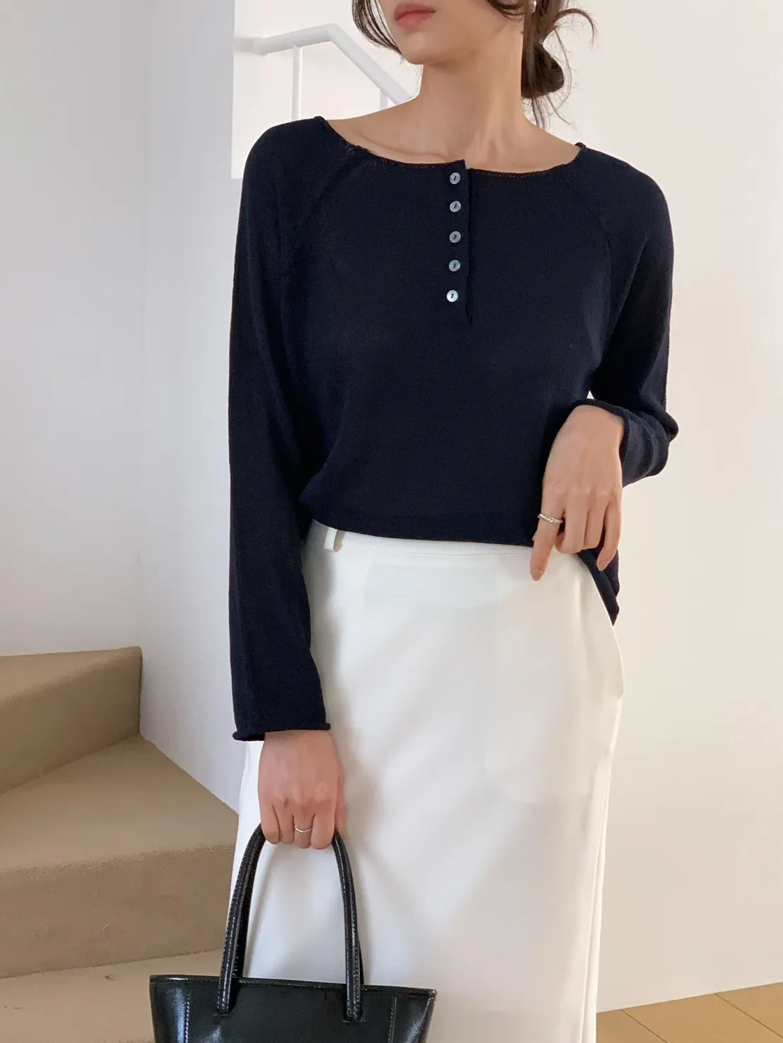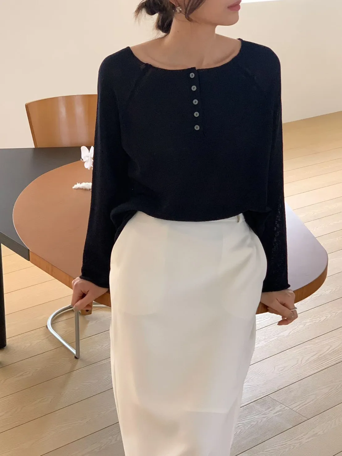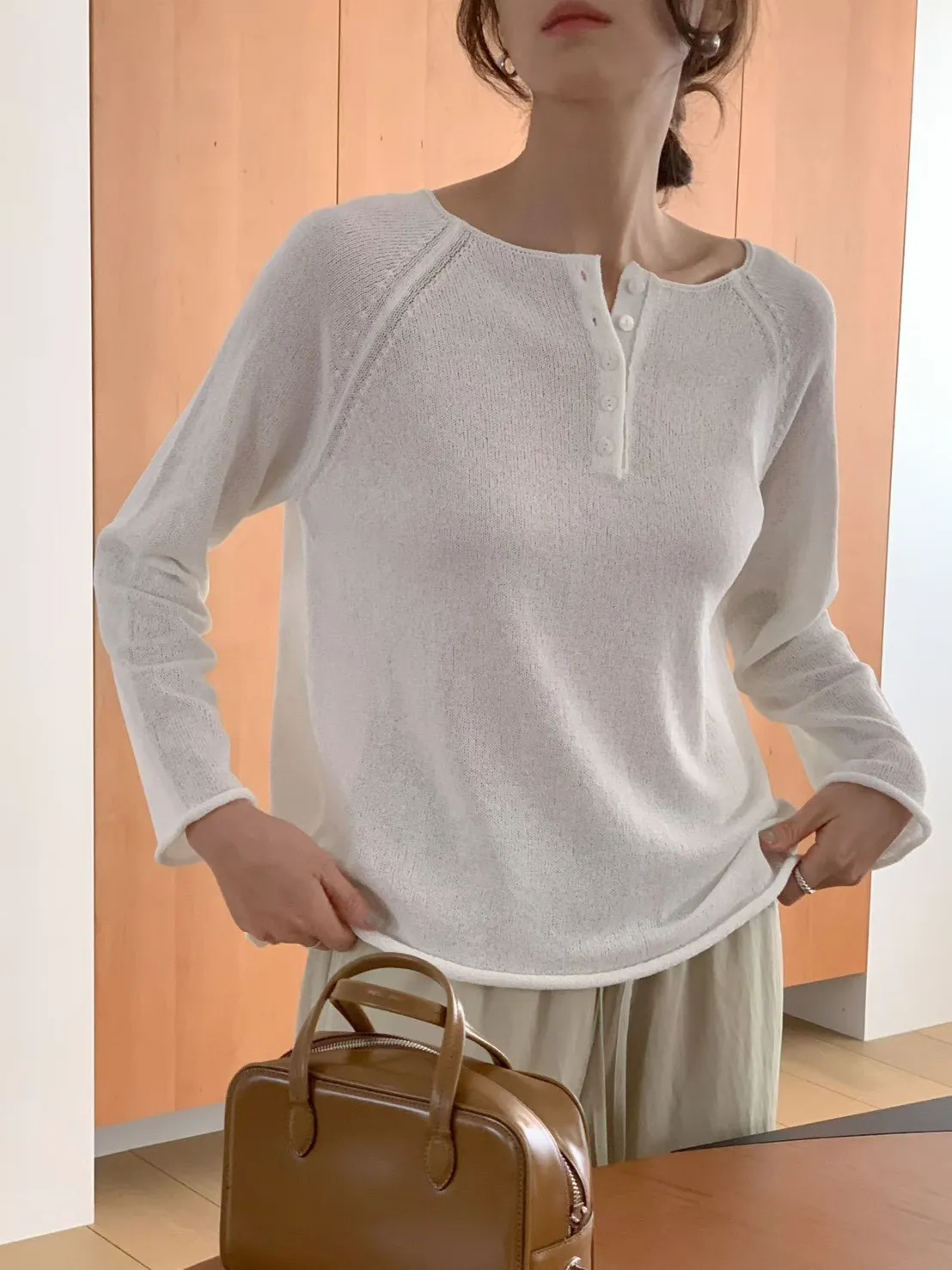 A28 0325寬領開釦亞麻薄針織上衣3色