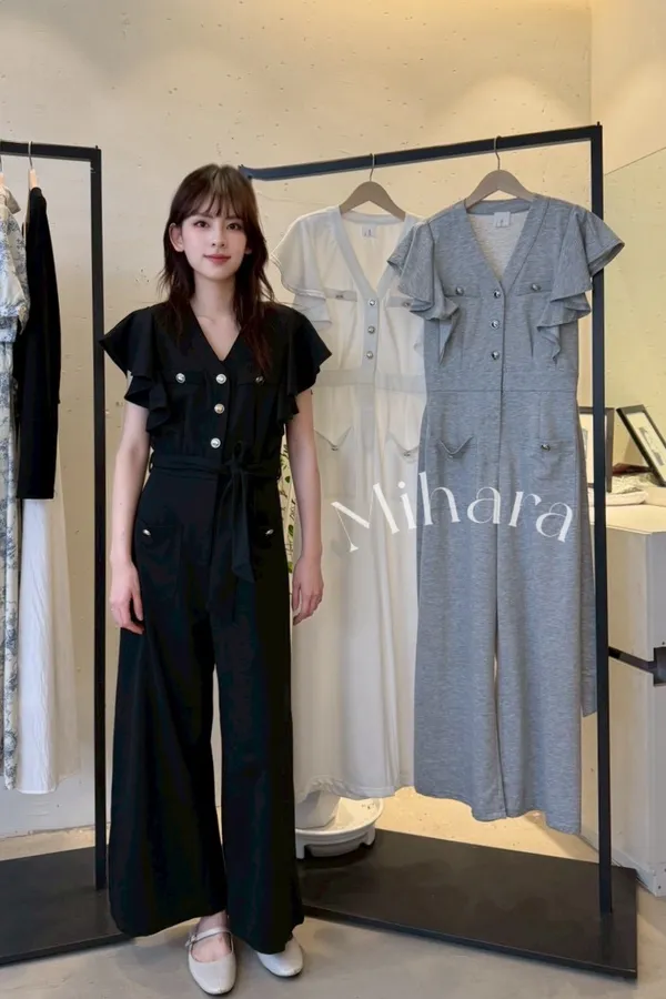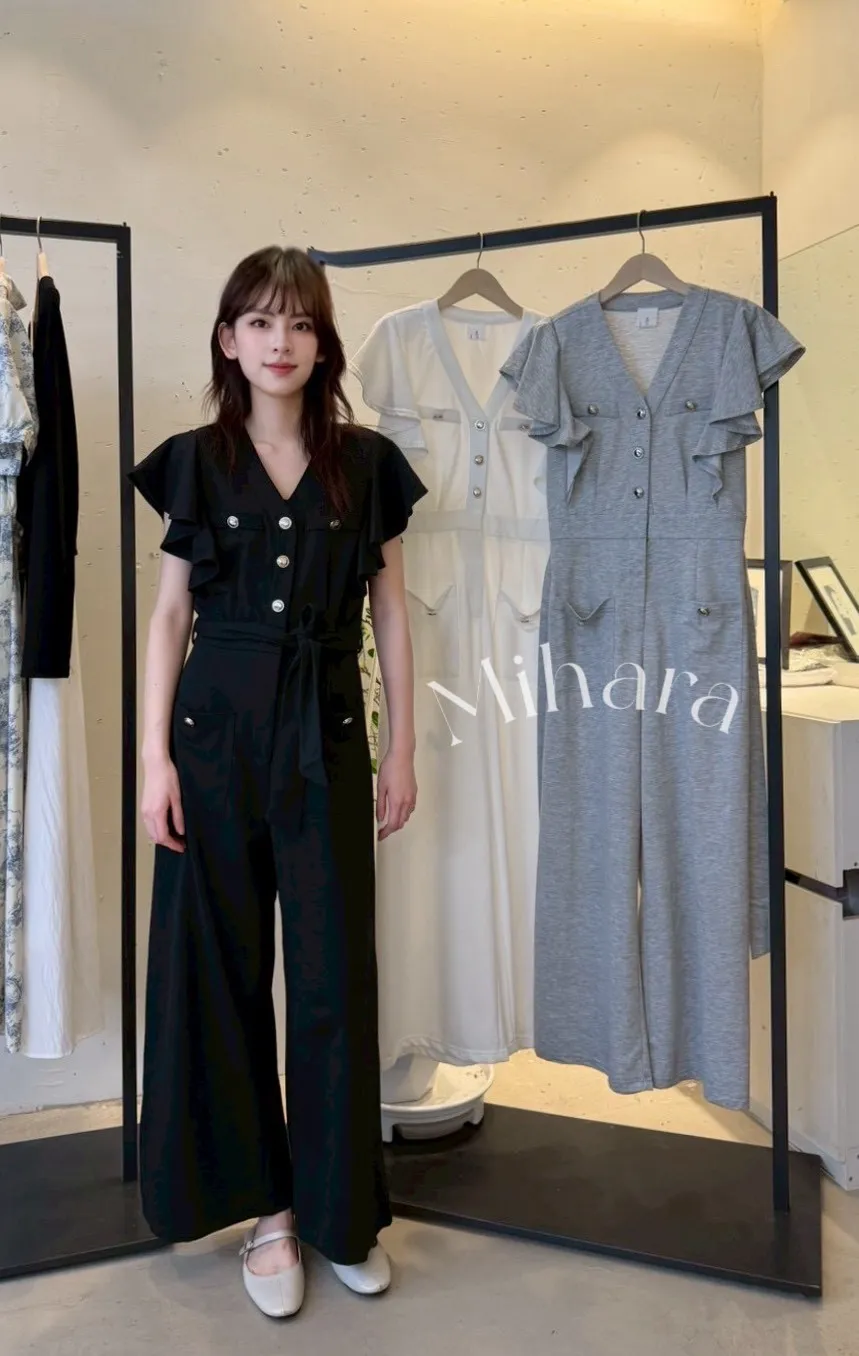A60 0325CP家V領連身褲附綁帶3色