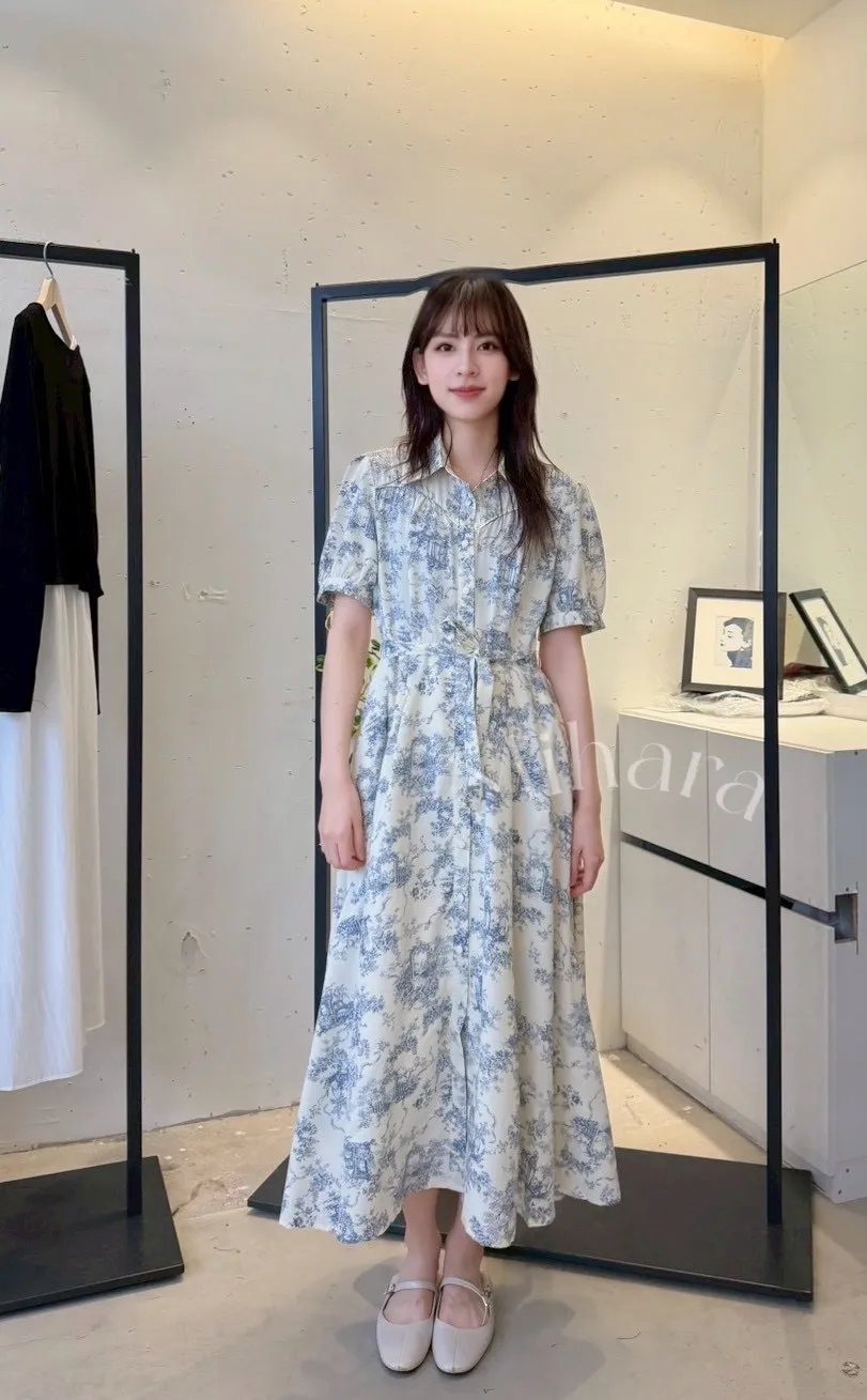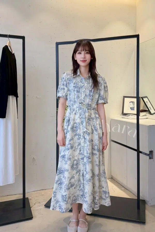 A61 0325CP家碎花雪紡襯衫洋裝附腰帶