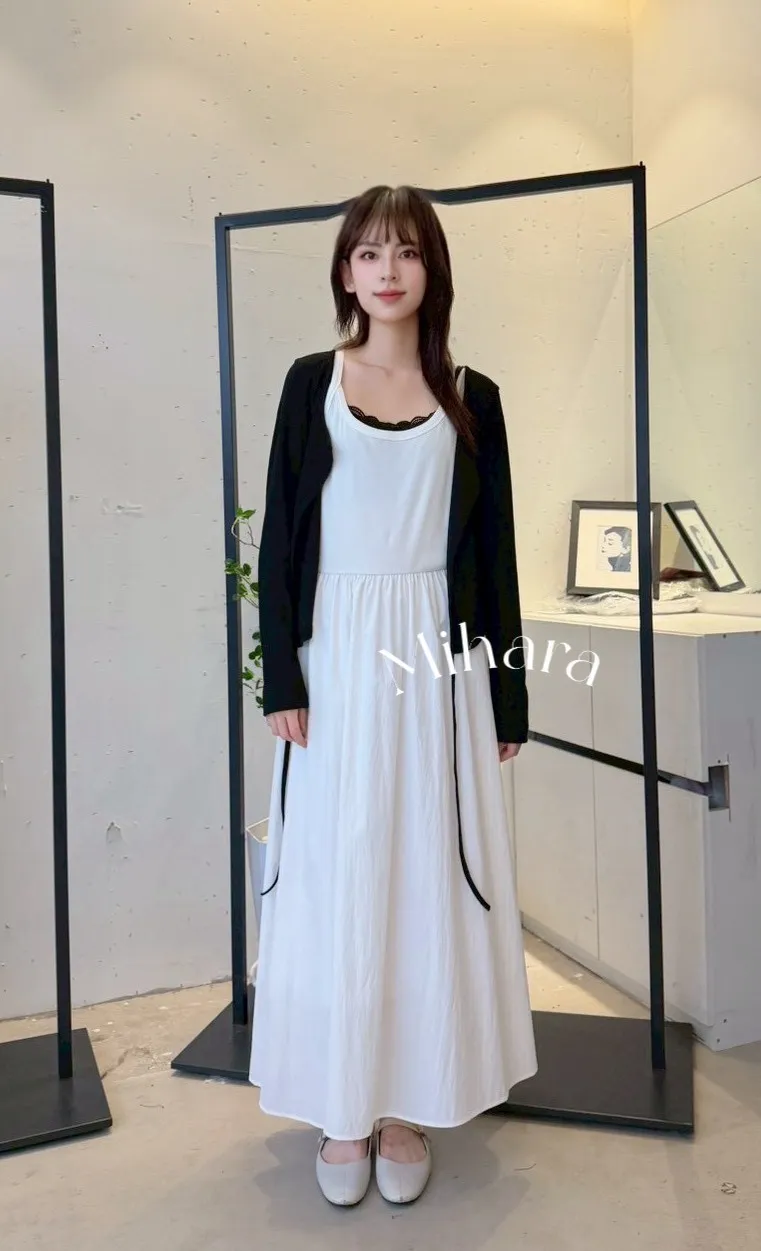 A62 0325CP家綁帶罩衫+大圓領背心洋裝(SET)