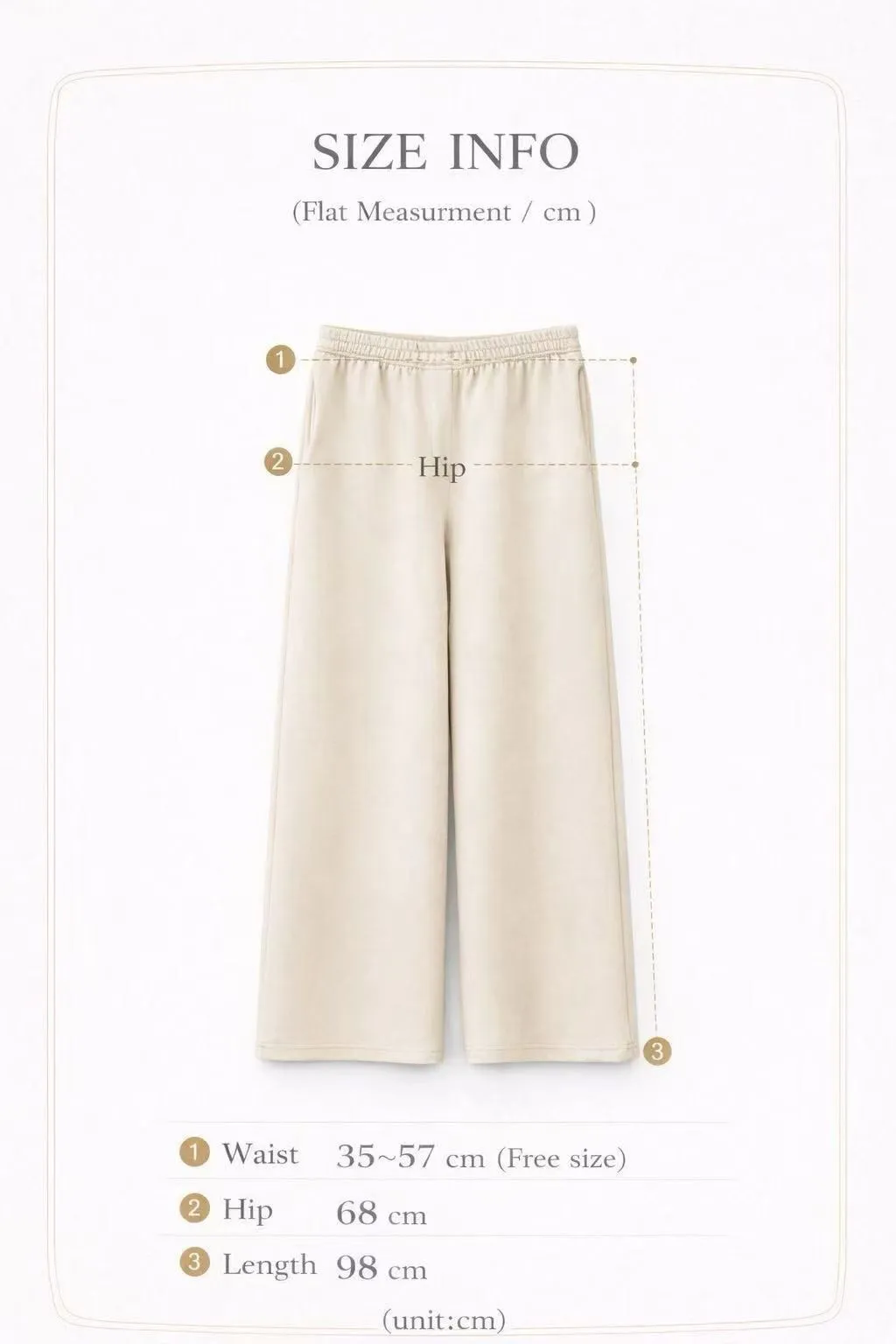 腰35-57臀68褲檔36全長98cm(以上尺寸為<單面平量/CM>)