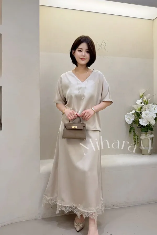A17 0326可愛歐膩家拼接睫毛蕾絲下擺光澤半裙3色
