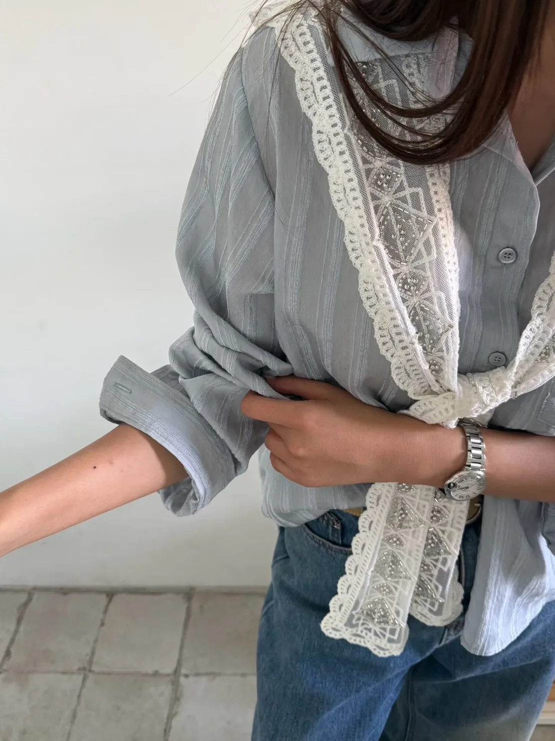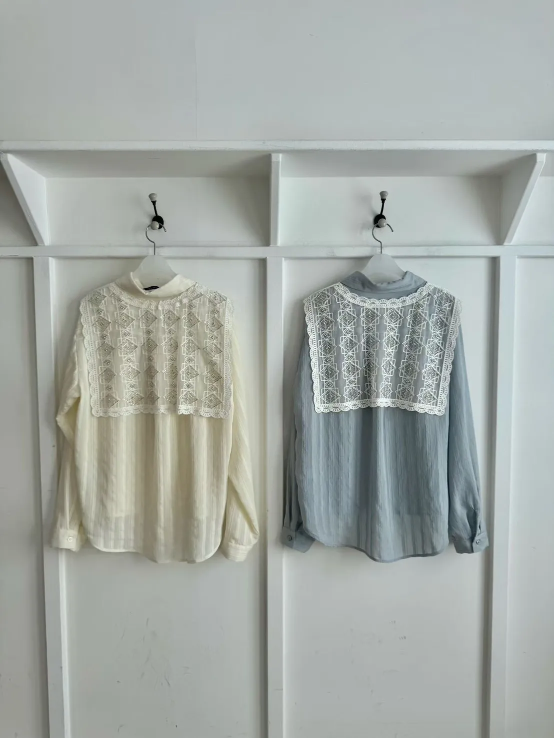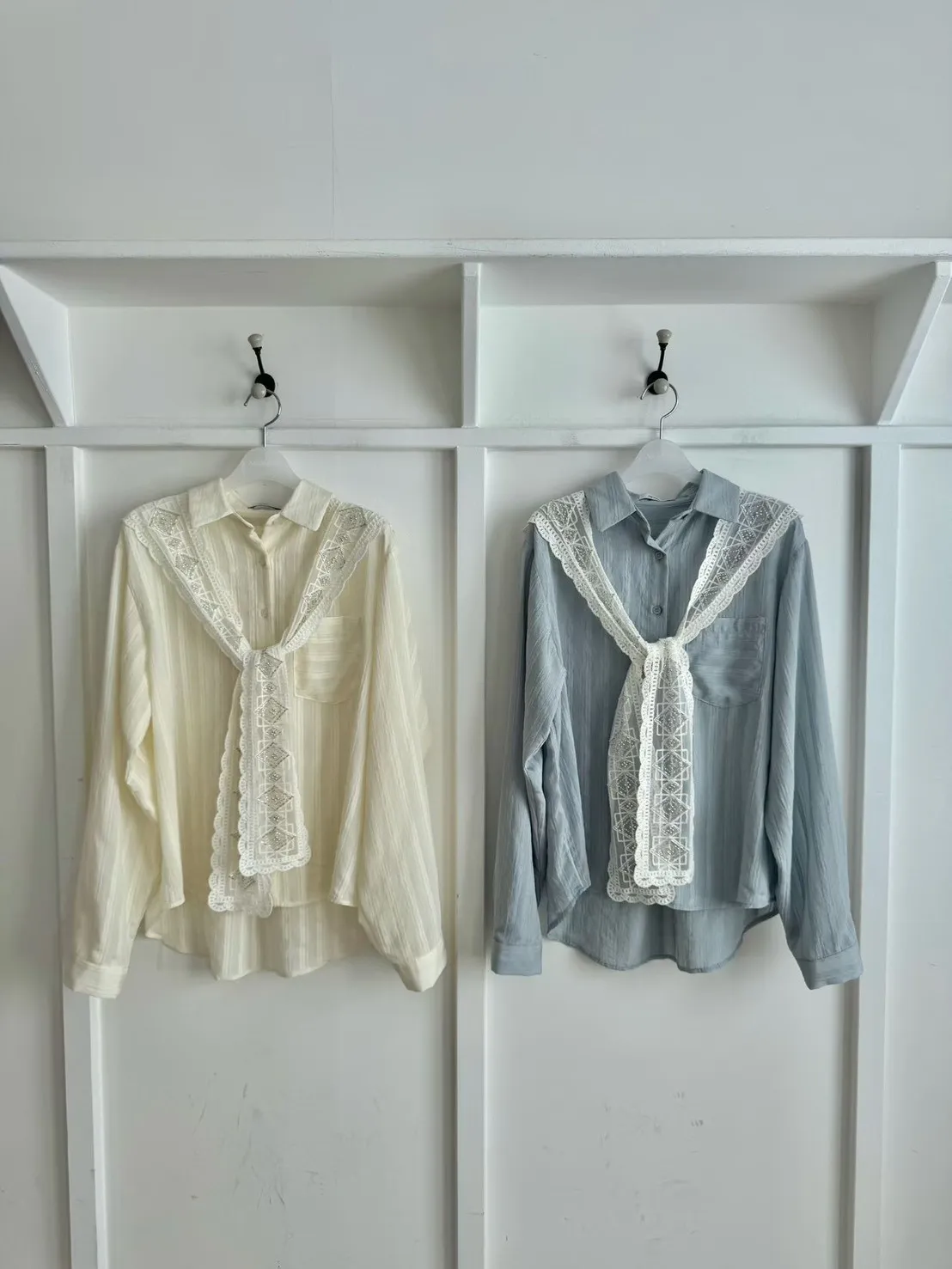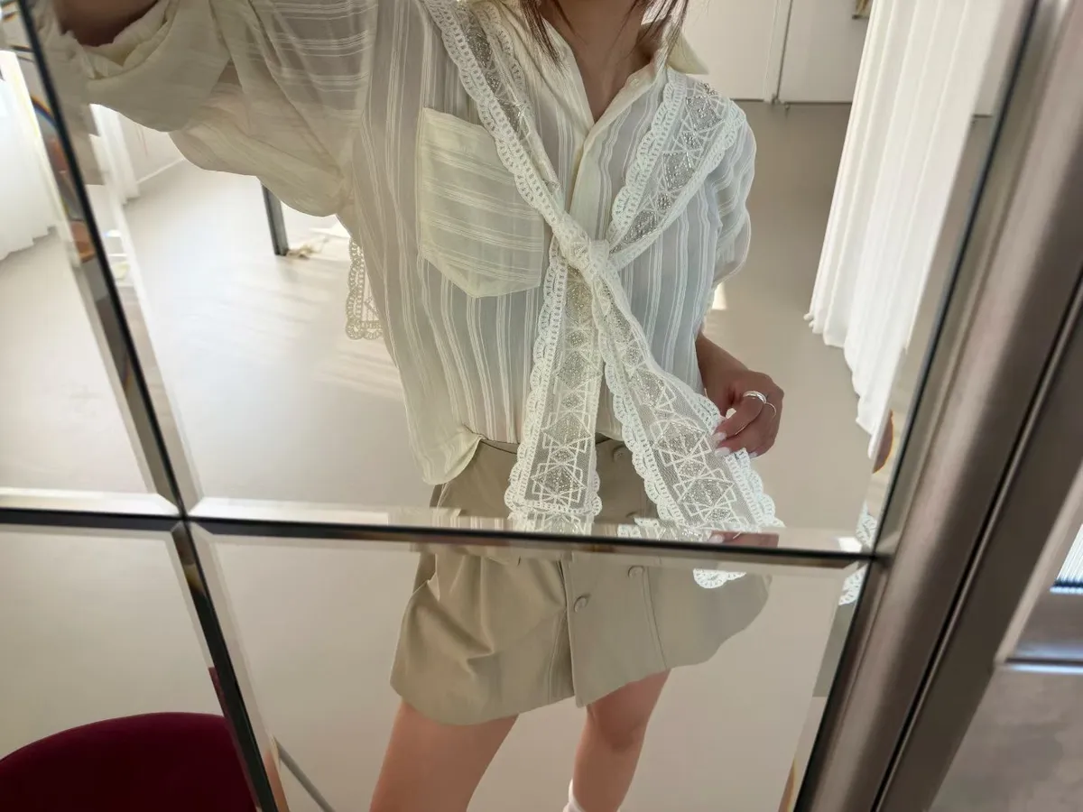 A27 0326素希歐膩家菱格領巾直紋襯衫2色