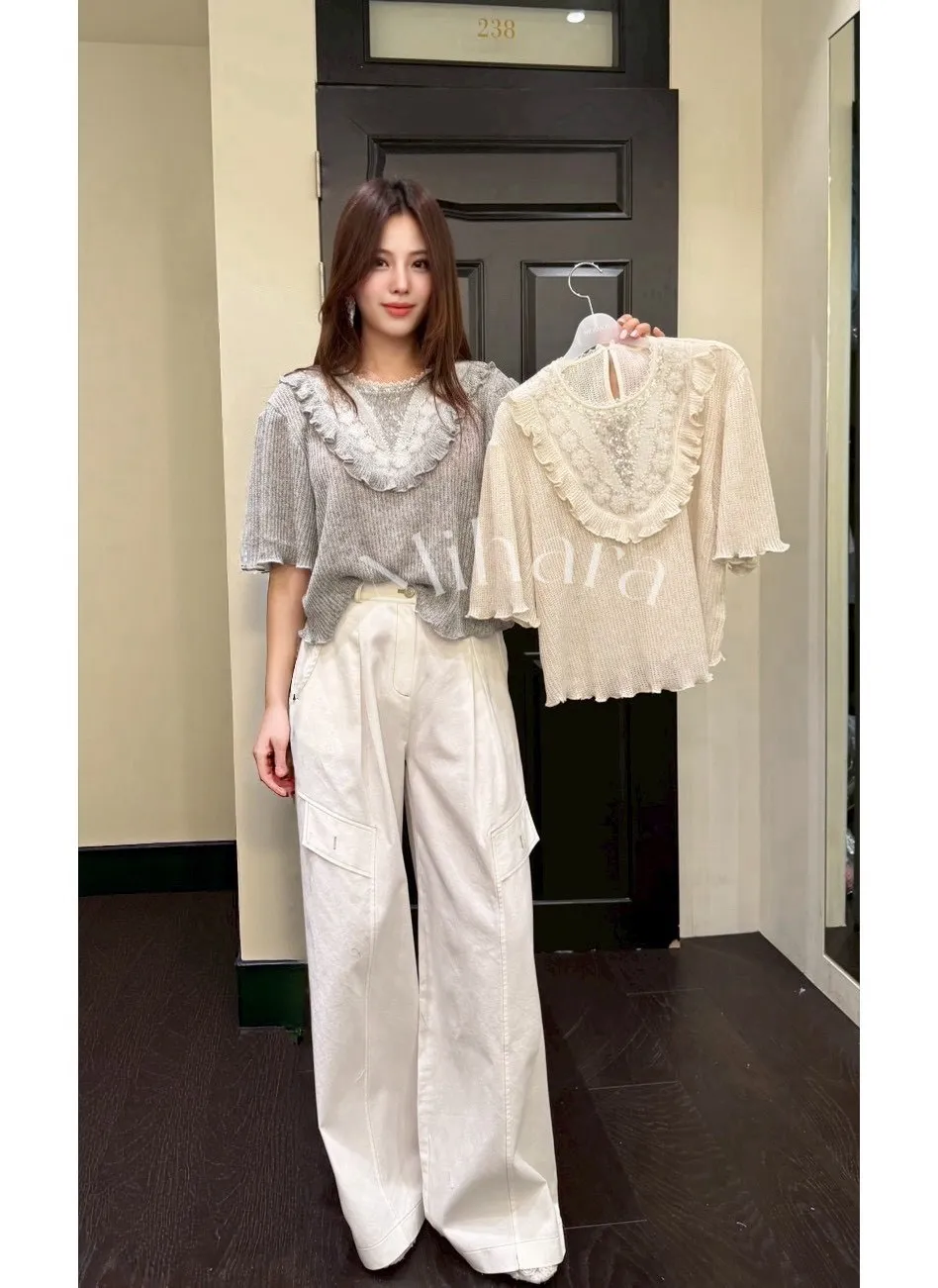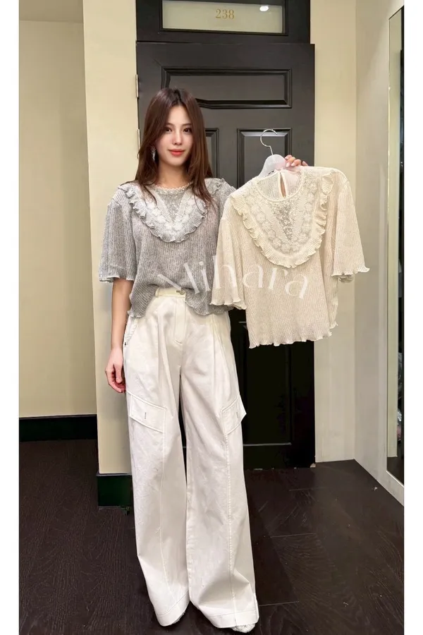 A31 0326素希歐膩家閃亮大領片圓領棉麻上衣2色
