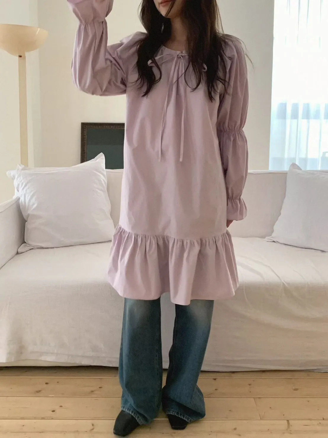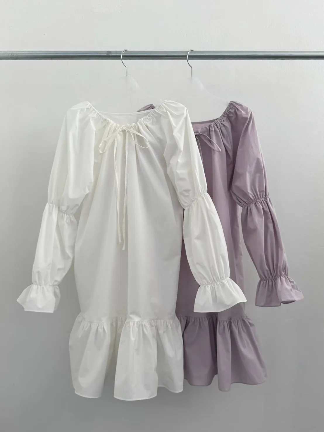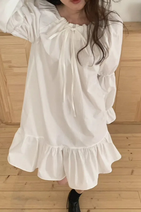 A39 0326素希歐膩家綁帶圓領可拉一字洋裝3色