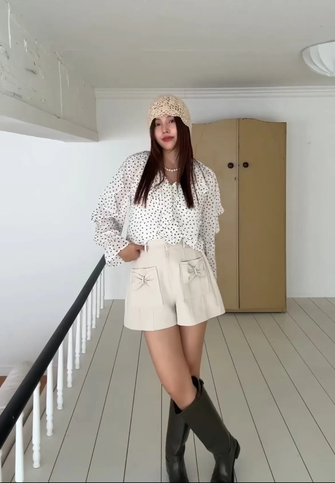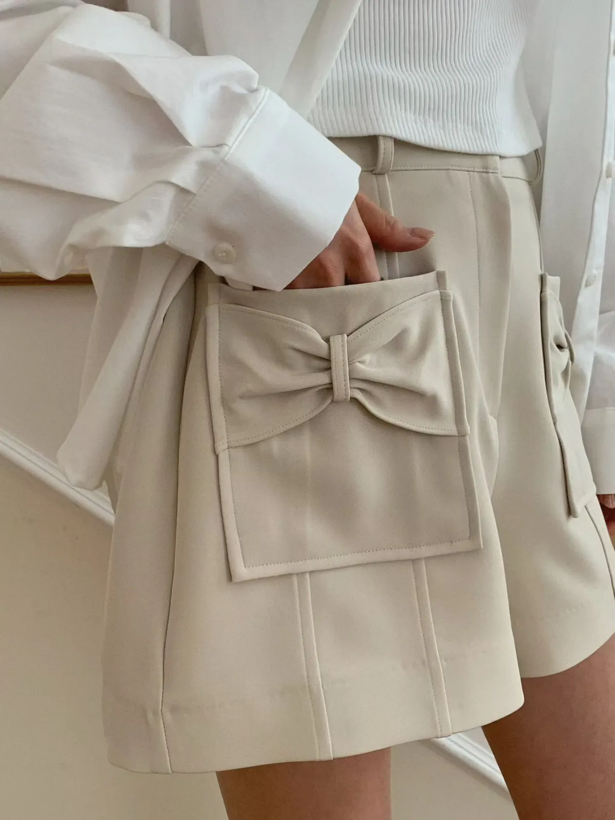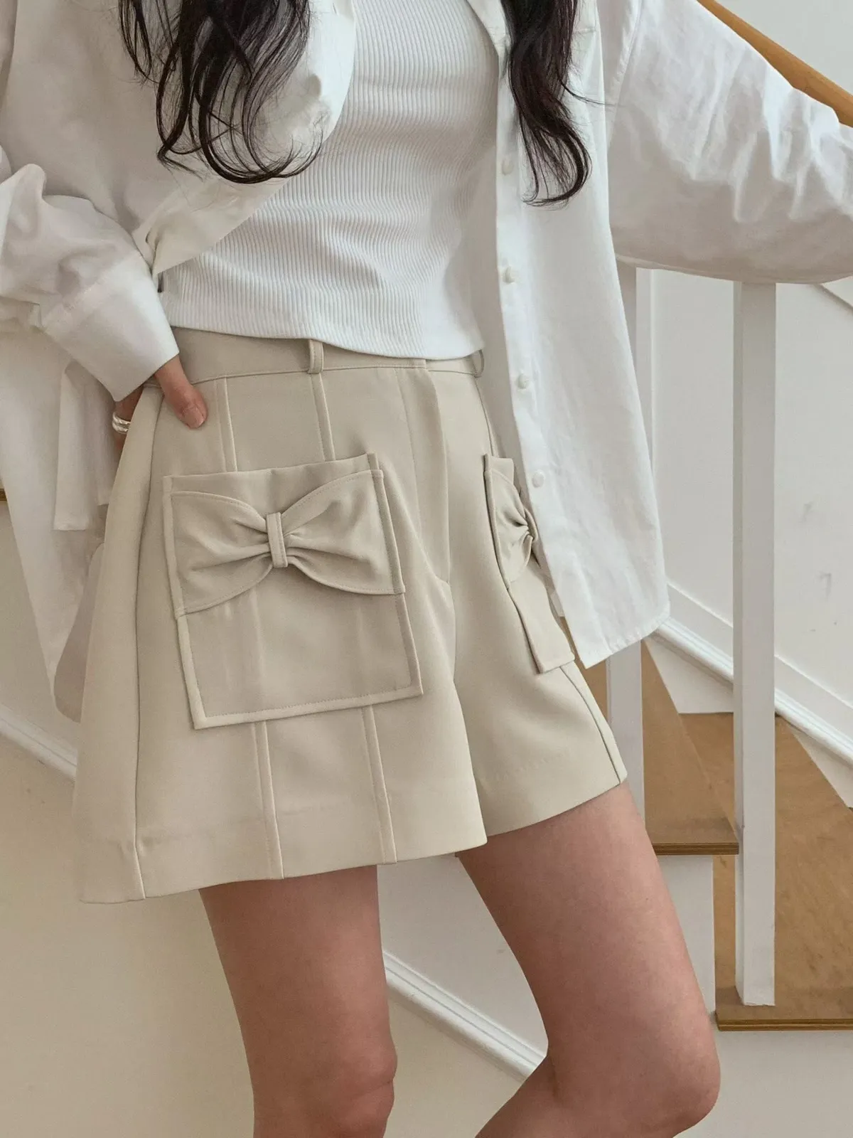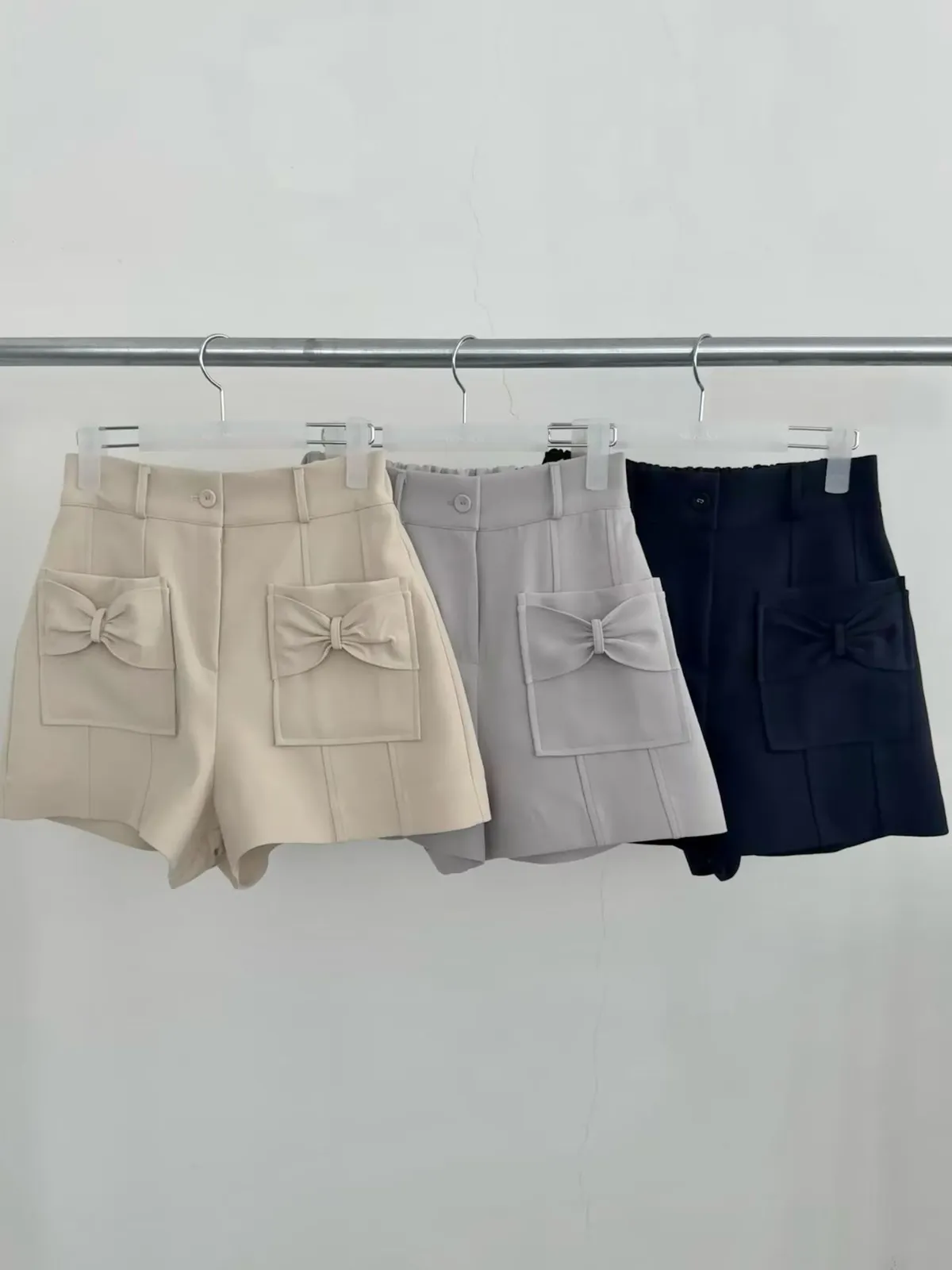 B160素希歐膩後腰彈性蝴蝶結口袋短褲3色