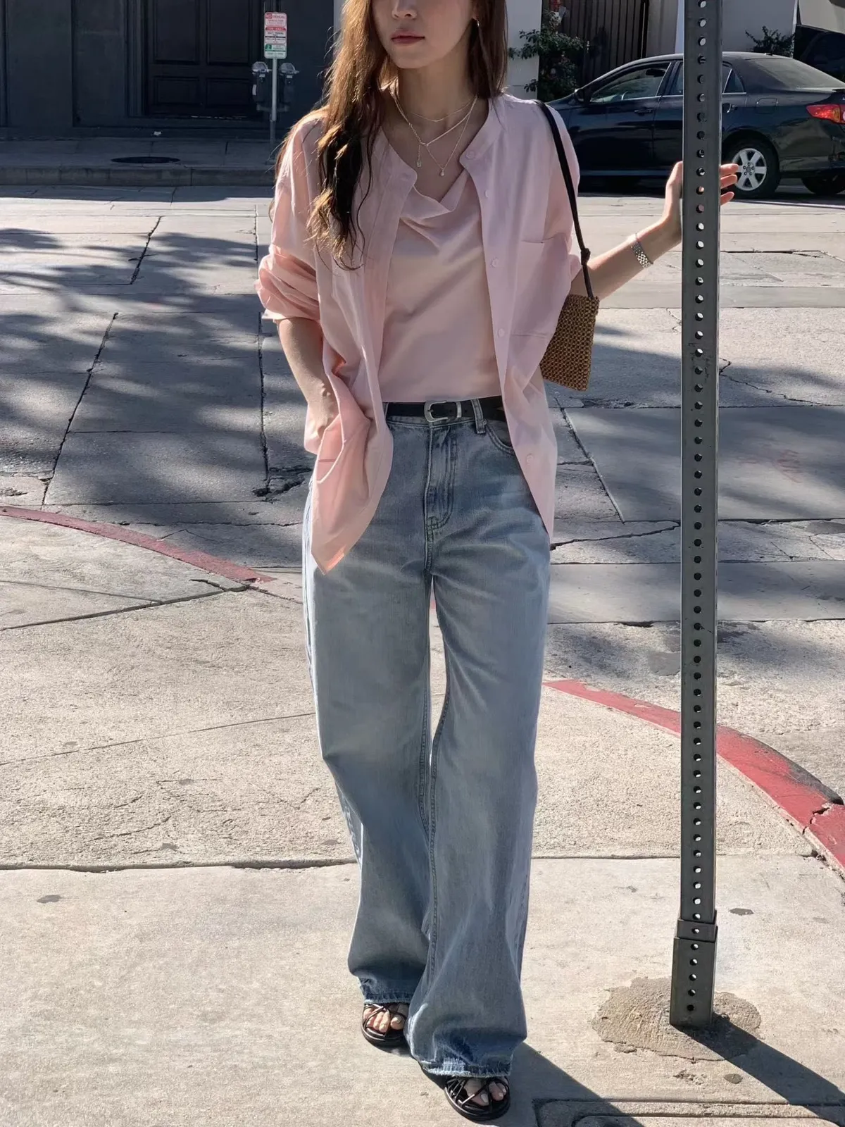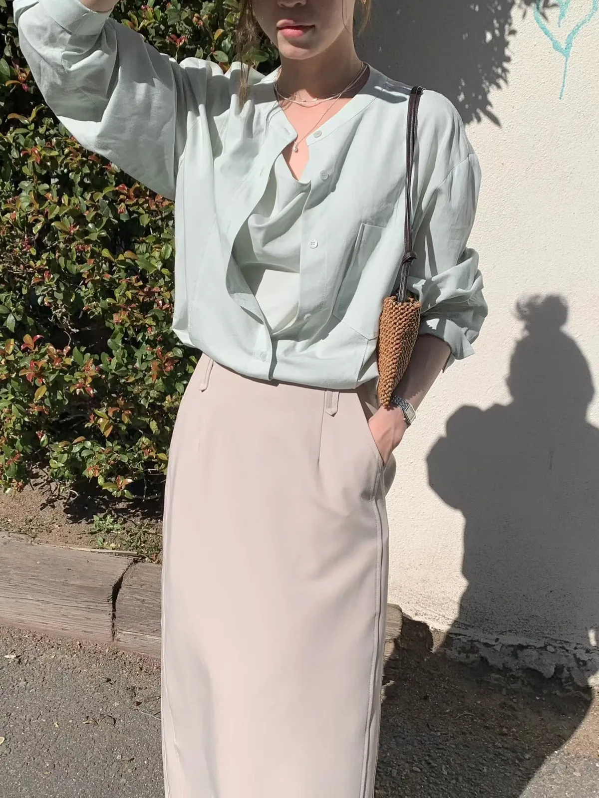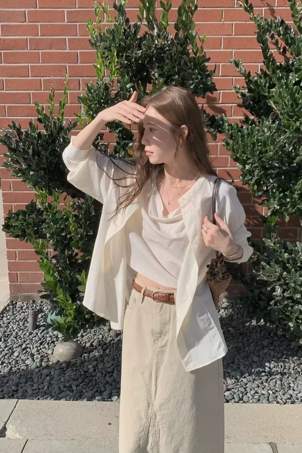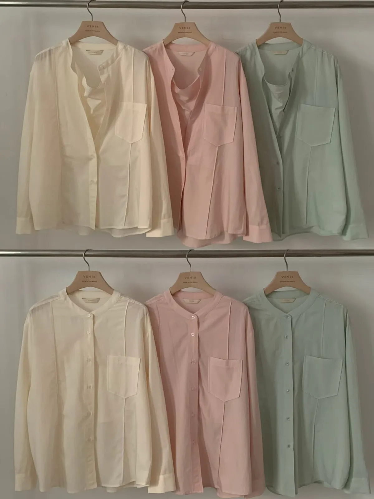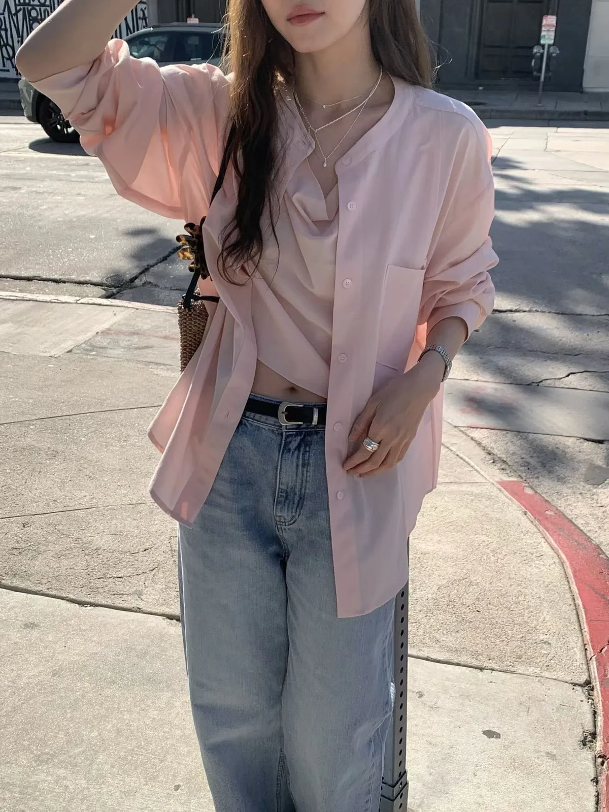 B123捲髮歐膩多穿式人造絲假兩件上衣3色