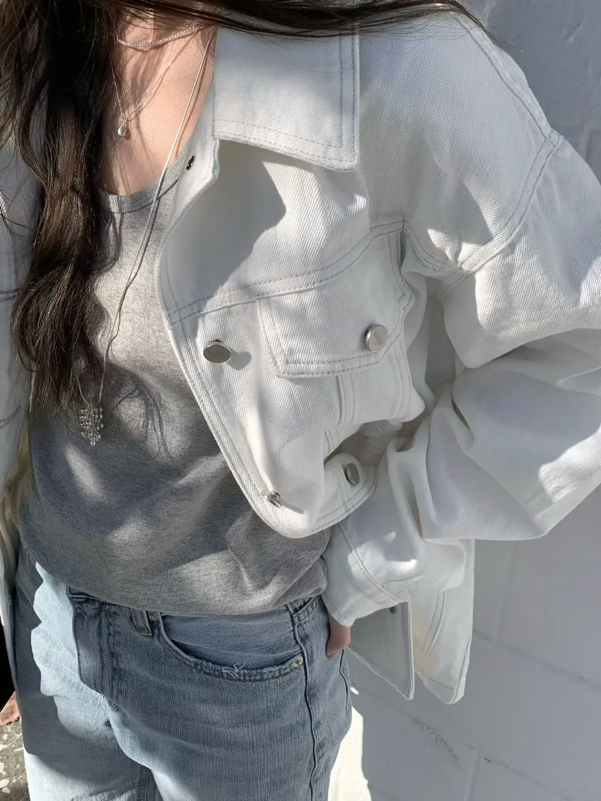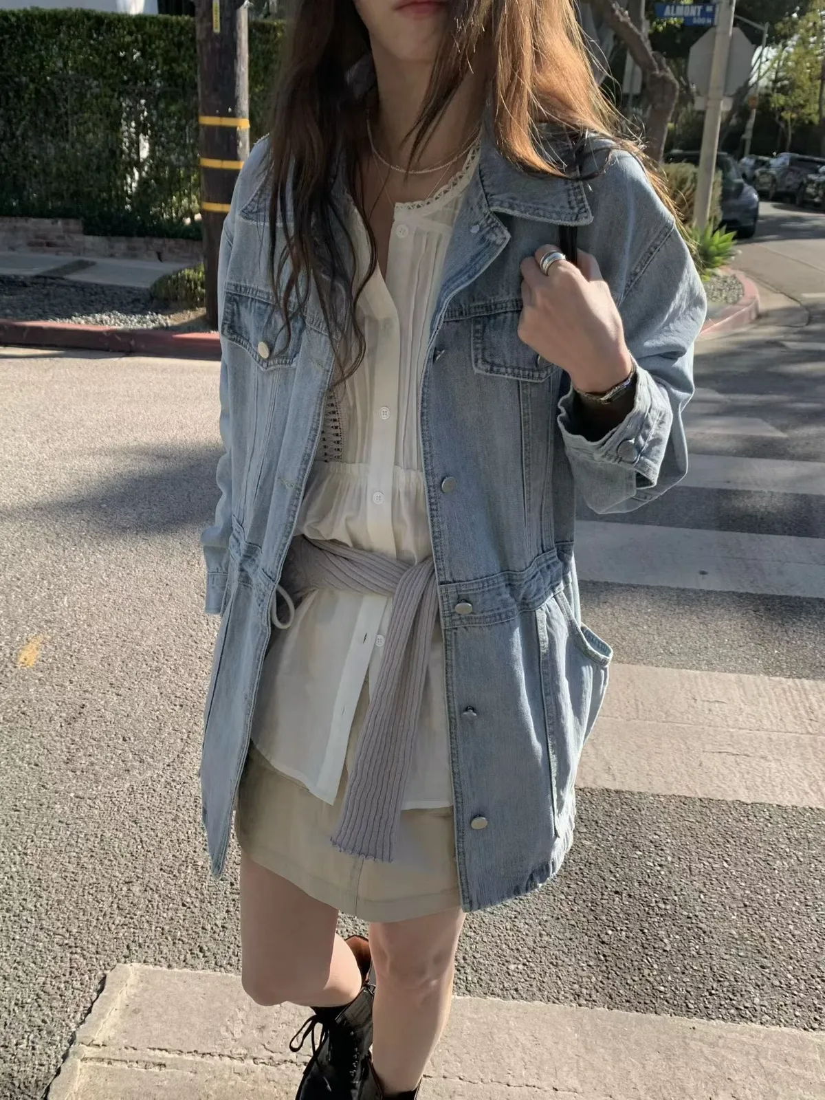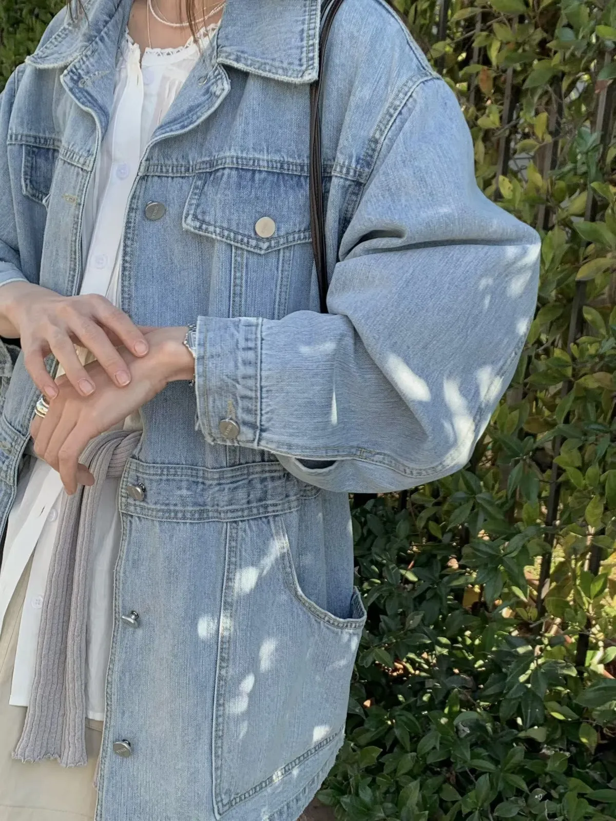 B112捲髮歐膩口袋牛仔外套2色