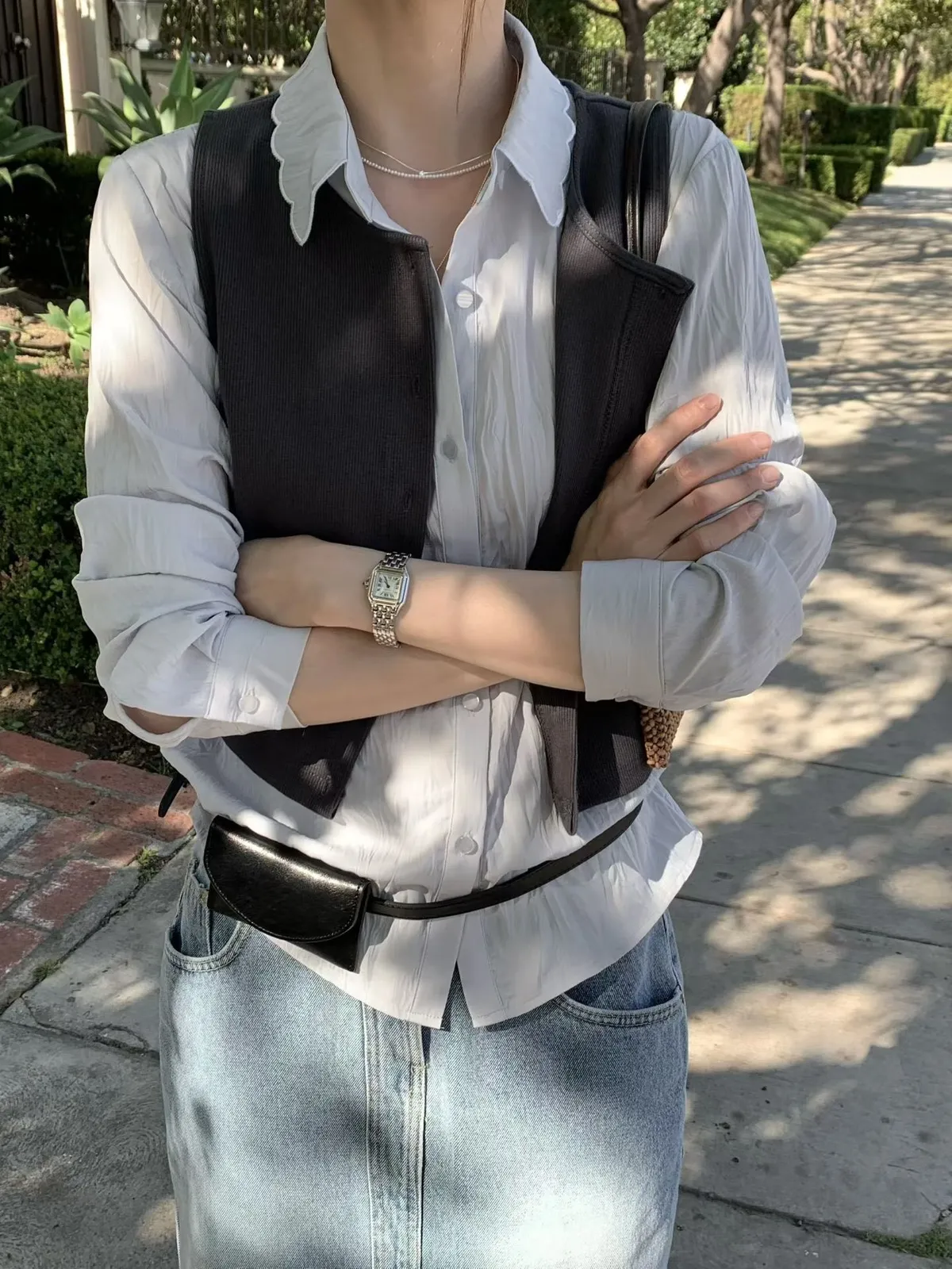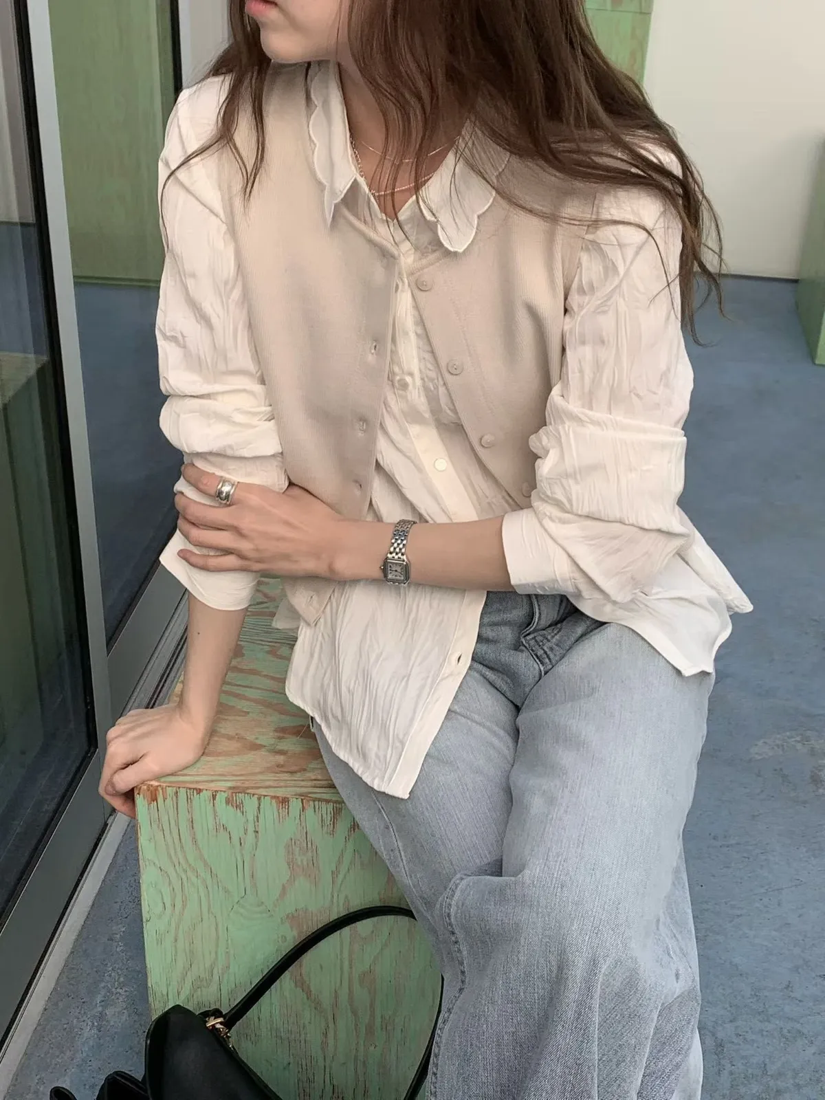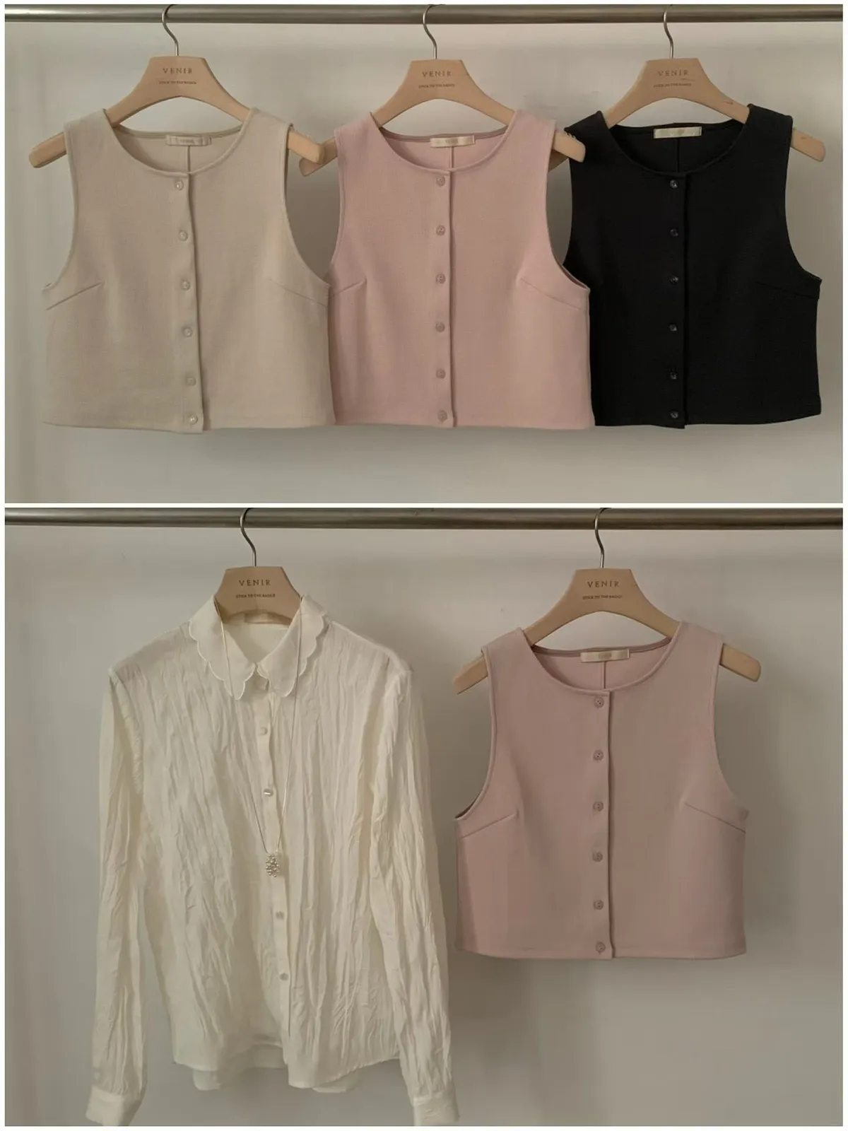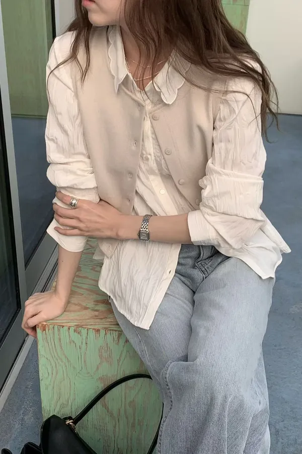B105捲髮歐膩簡約排釦背心2色