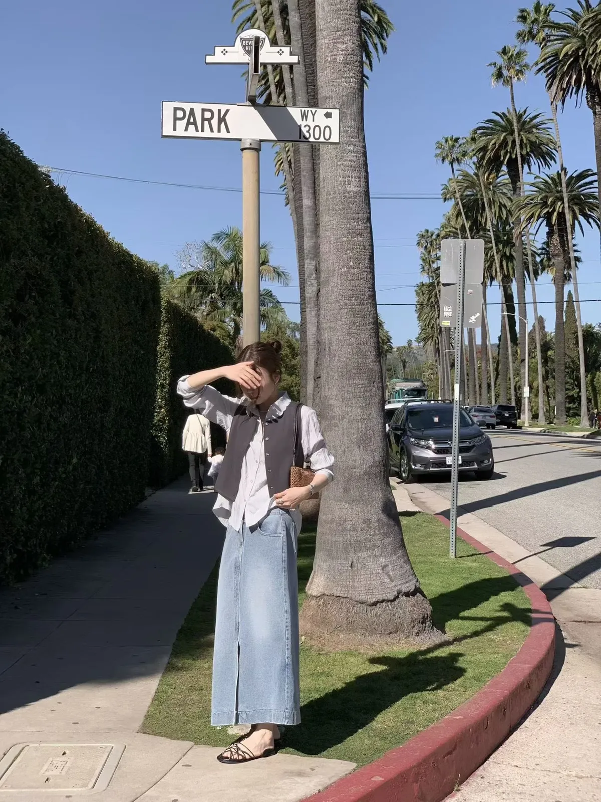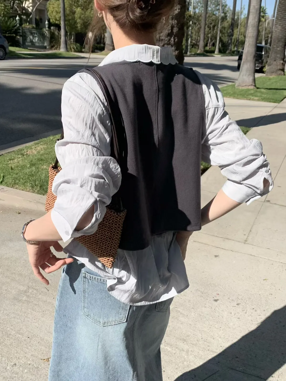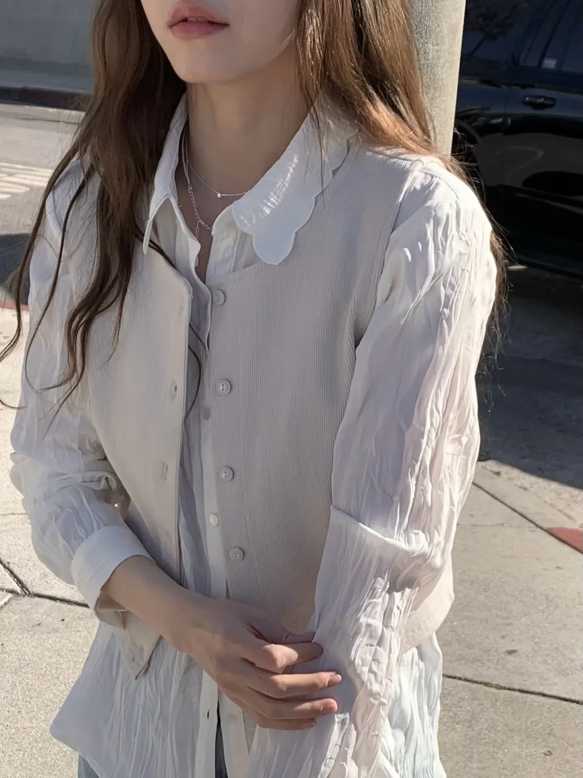 B105捲髮歐膩簡約排釦背心2色