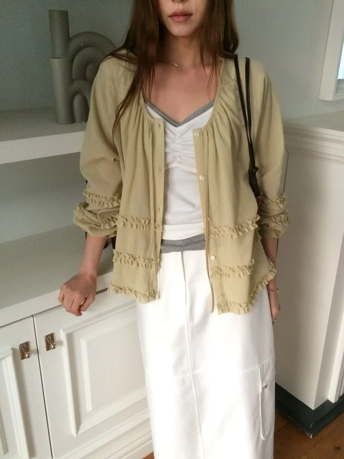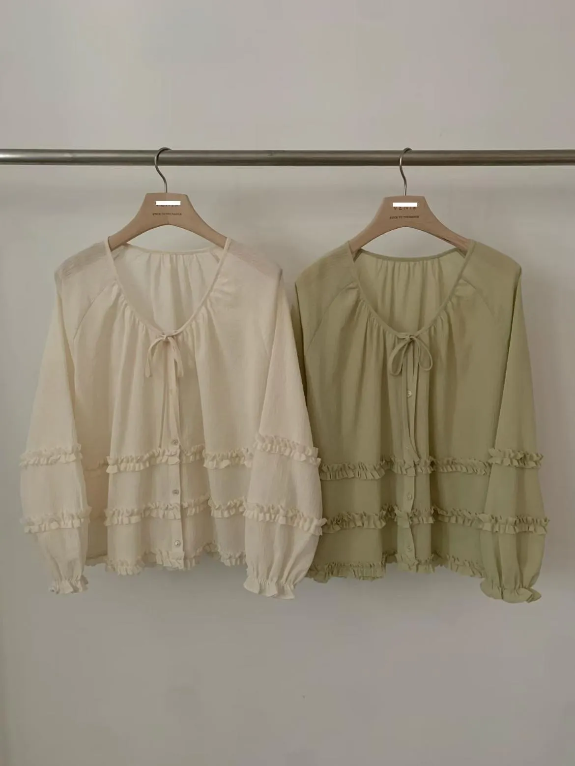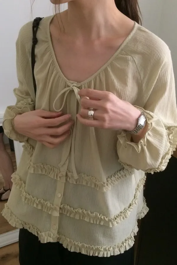 B101捲髮歐膩荷葉蛋糕上衣2色