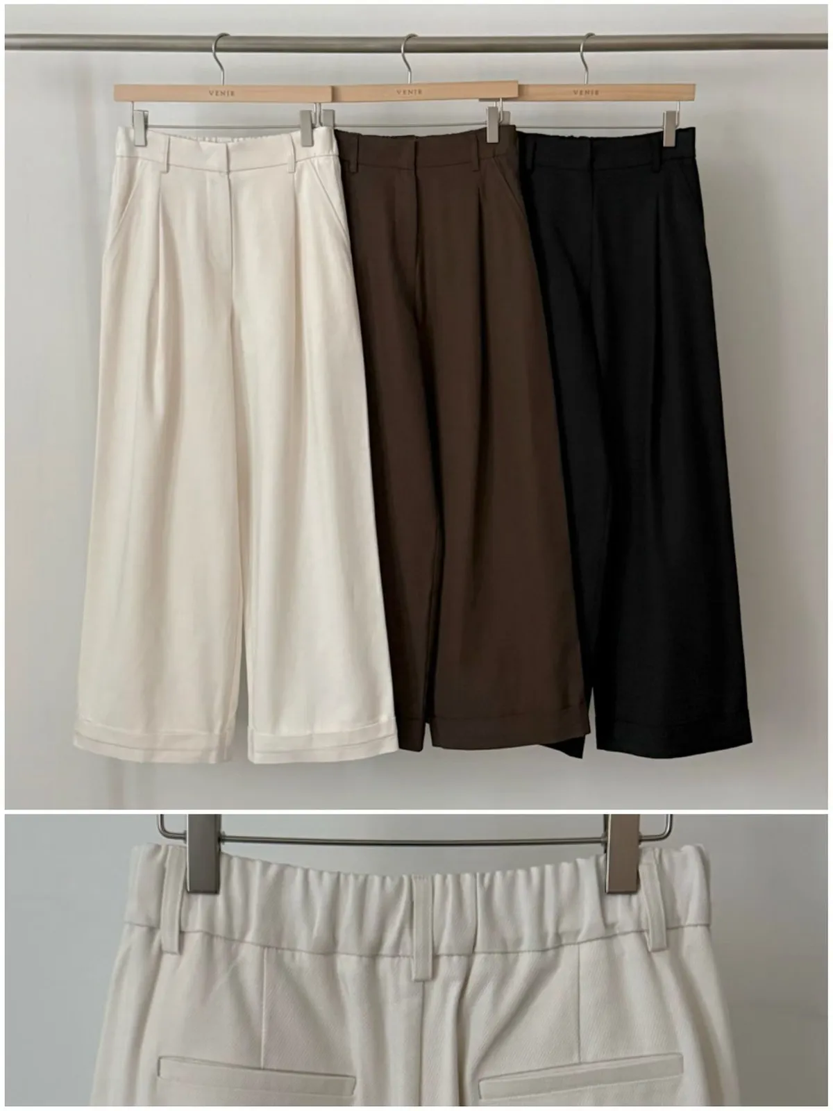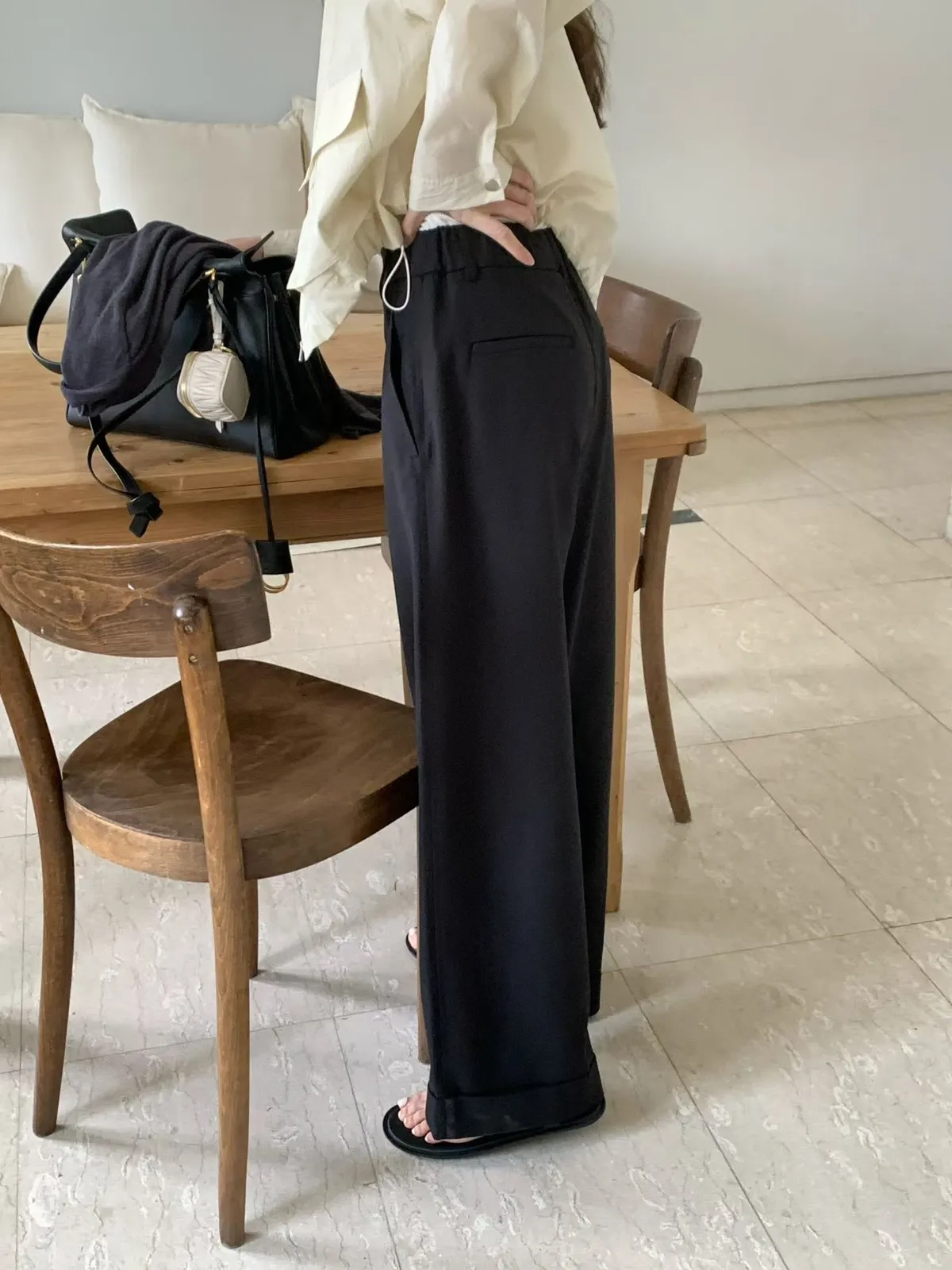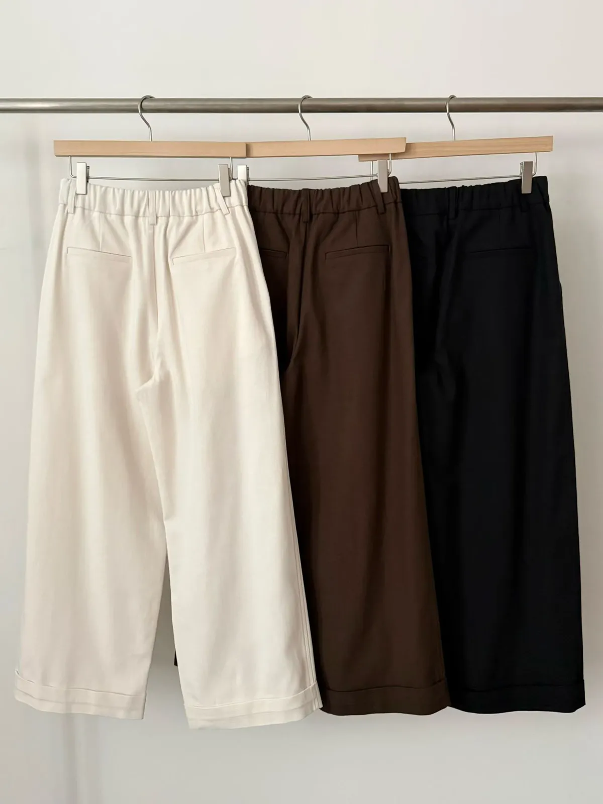B189捲髮歐膩後腰彈性下擺打褶寬褲3色