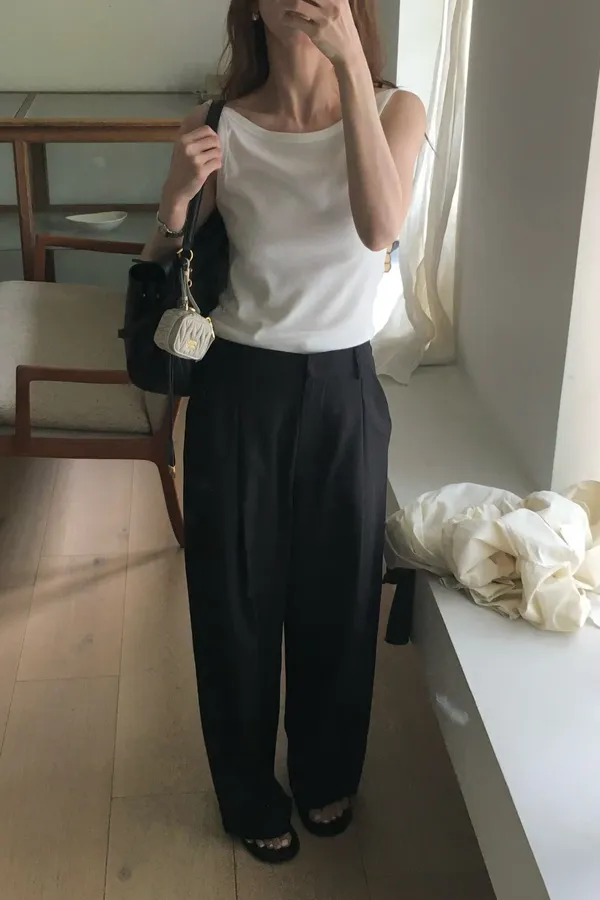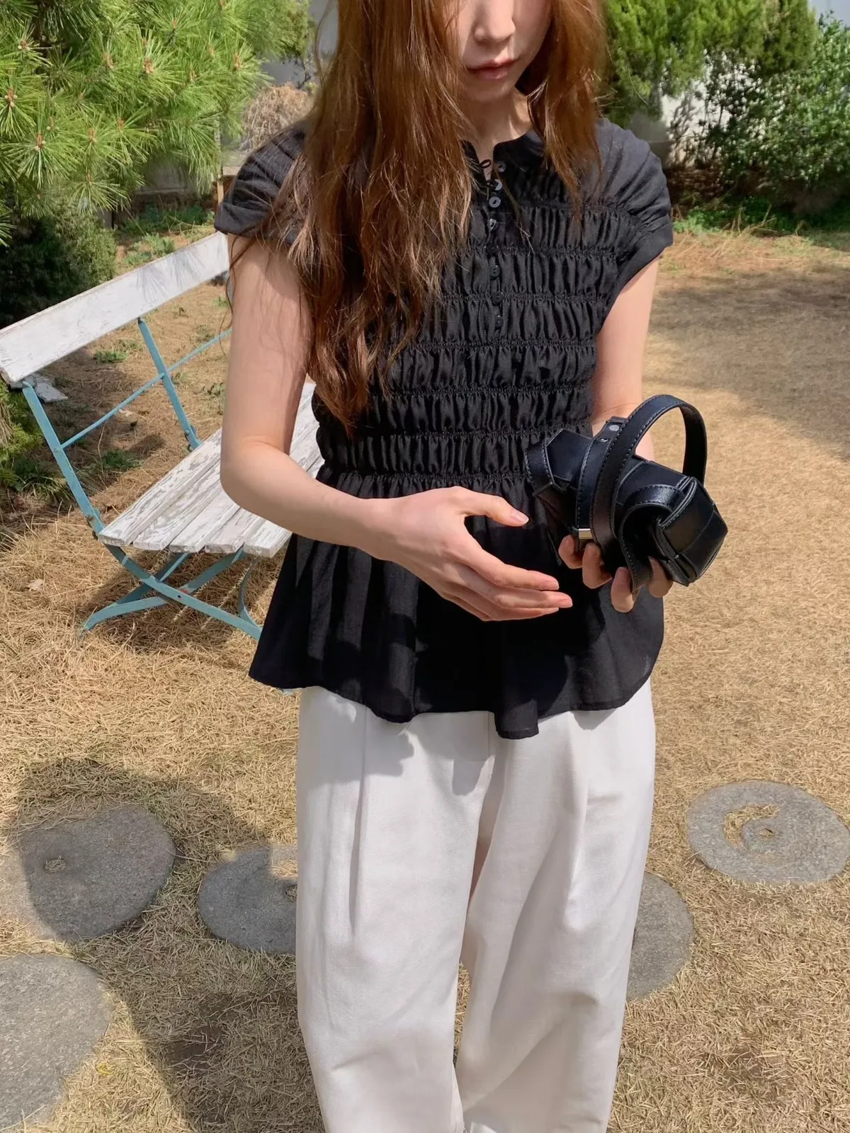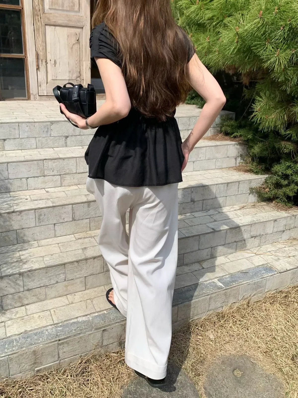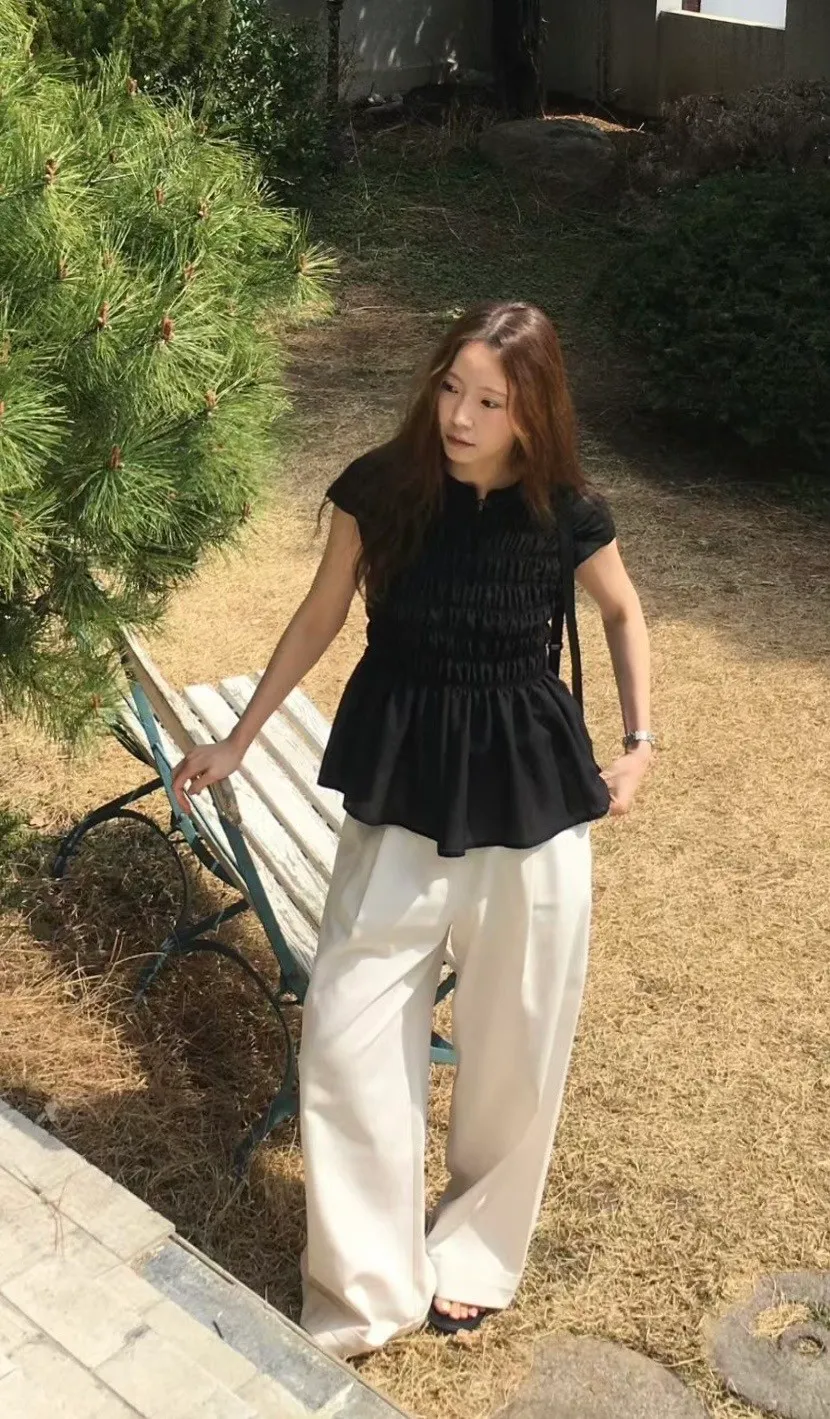 B189捲髮歐膩後腰彈性下擺打褶寬褲3色