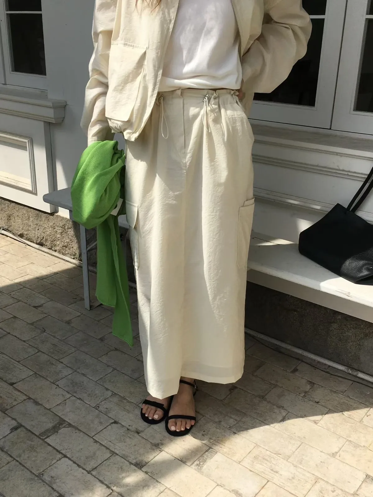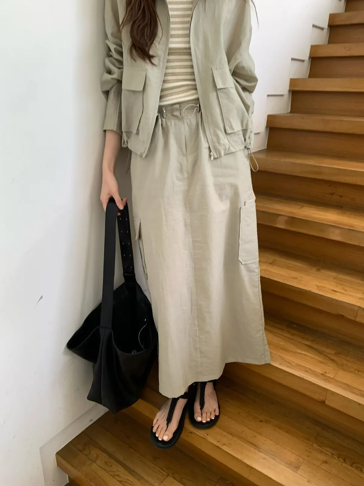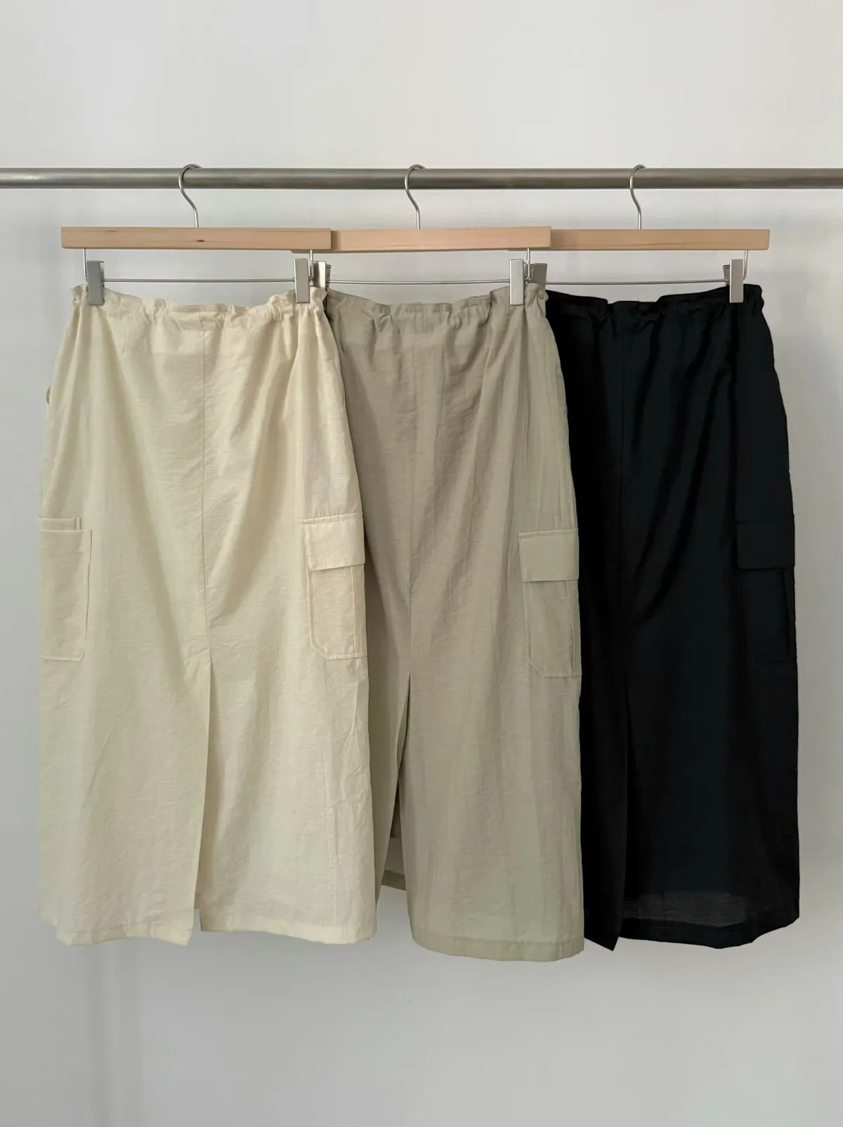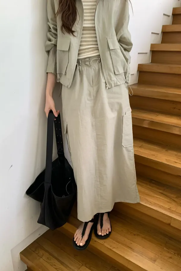 B190捲髮歐膩腰彈性工裝休閒後開叉裙3色