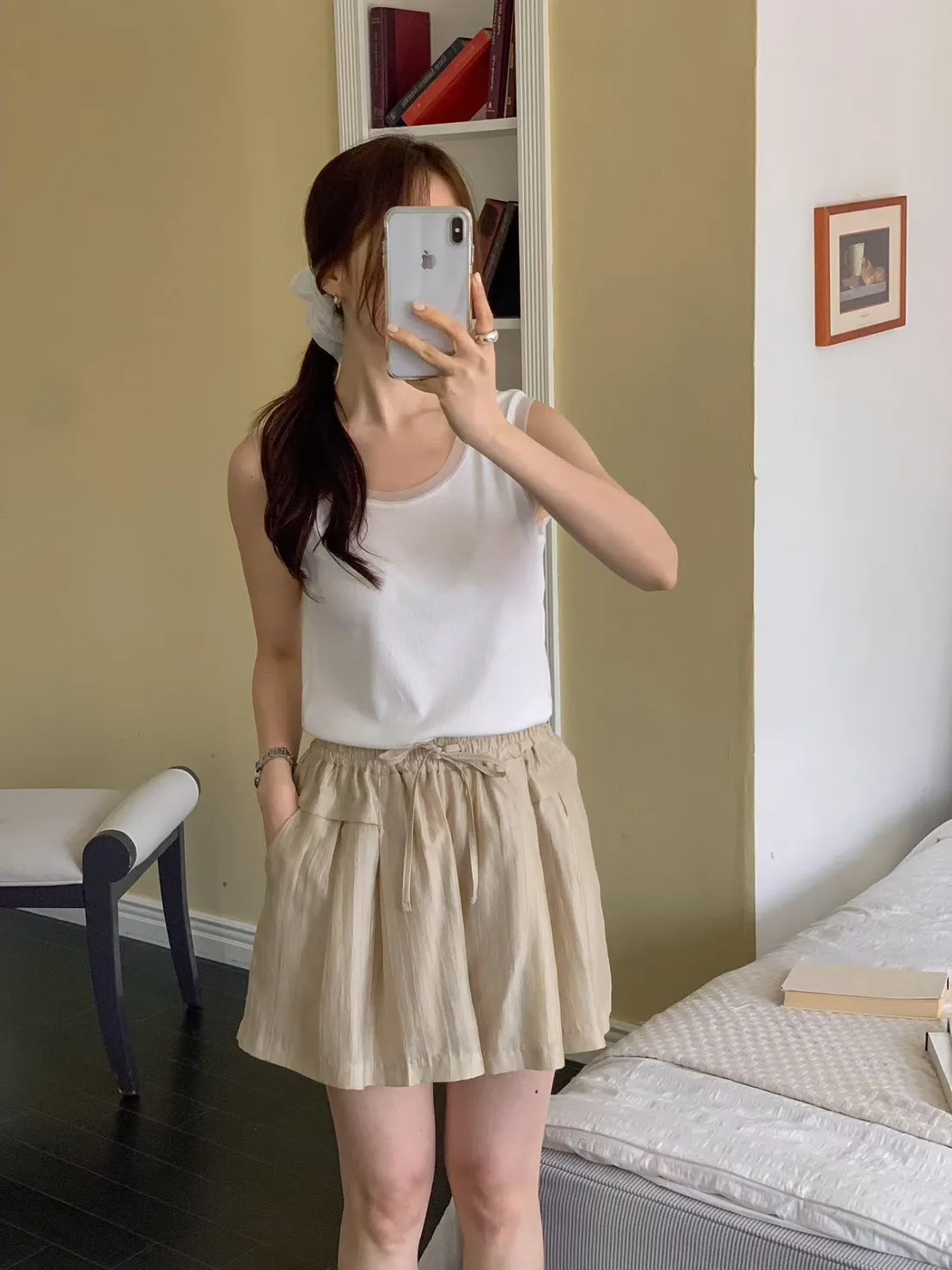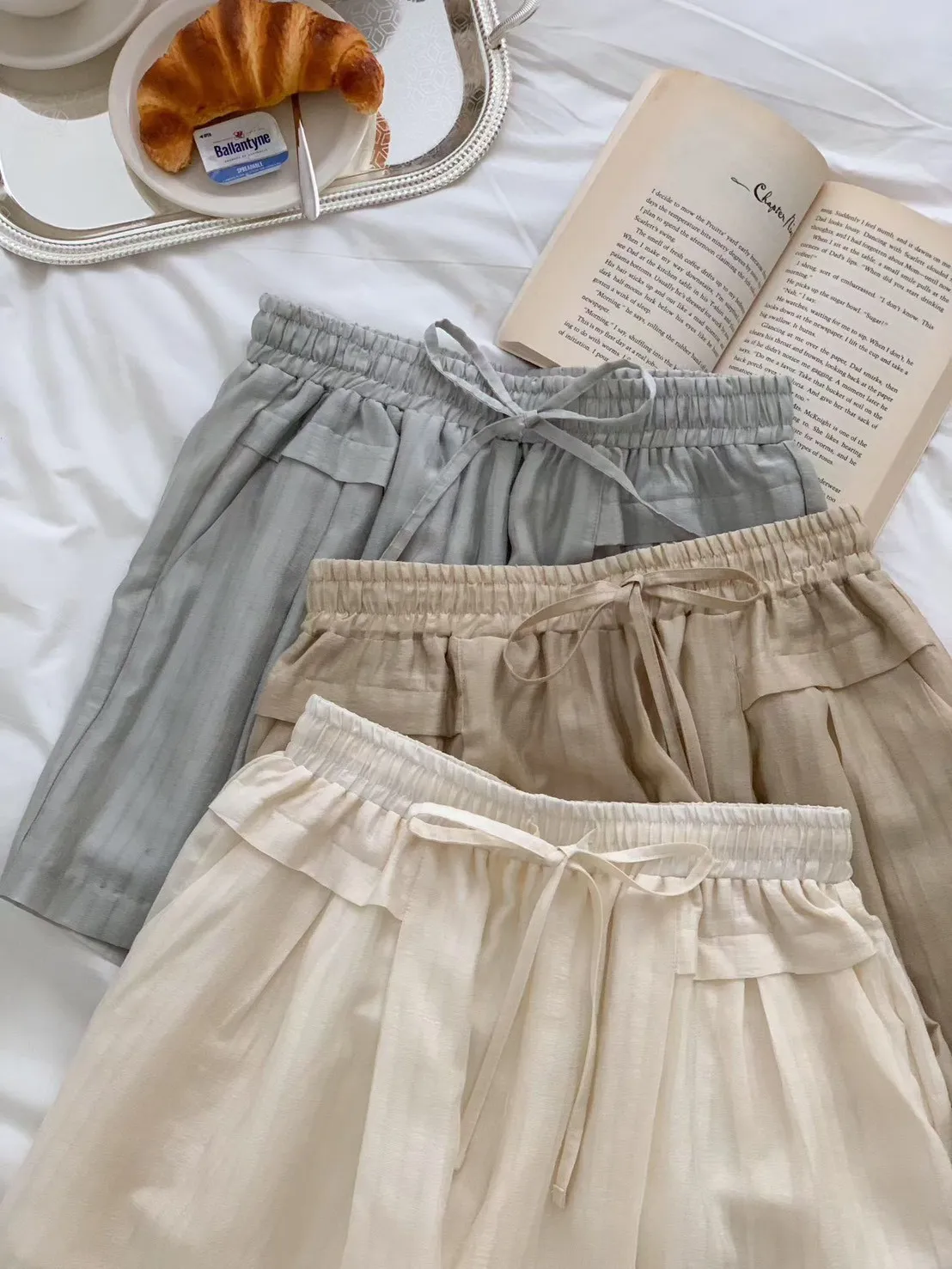 A2 0329質感家彈性腰圍人造絲短褲3色