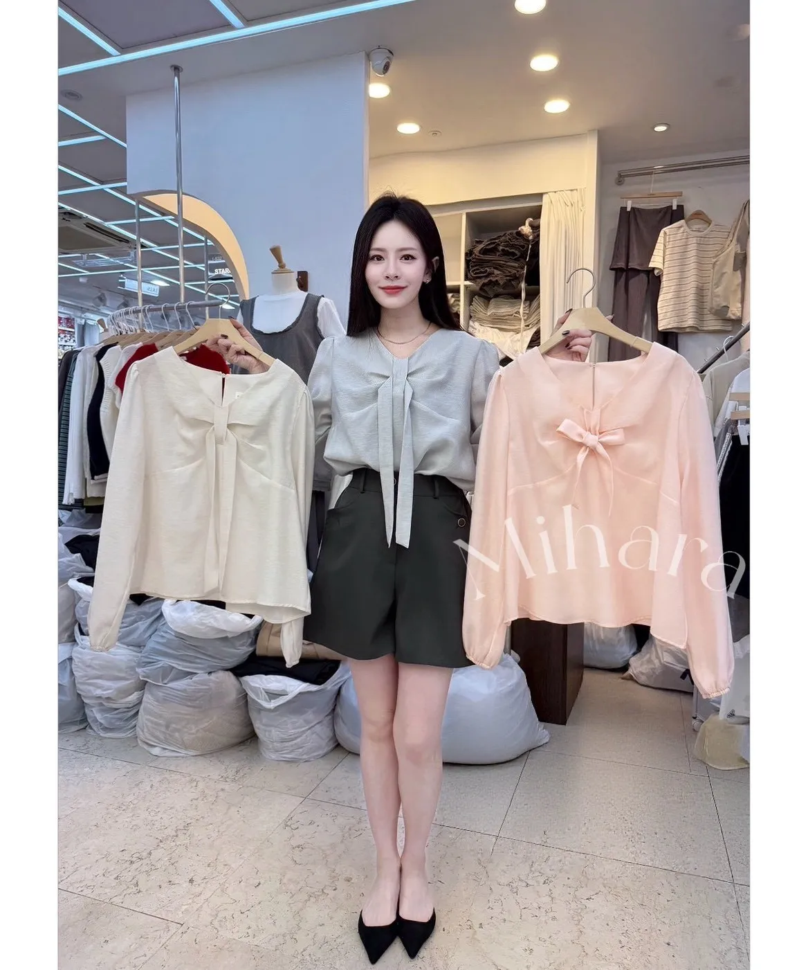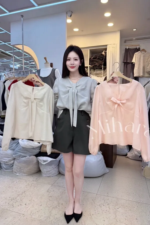 A33 0329小資家V領蝴蝶結天絲45%上衣3色
