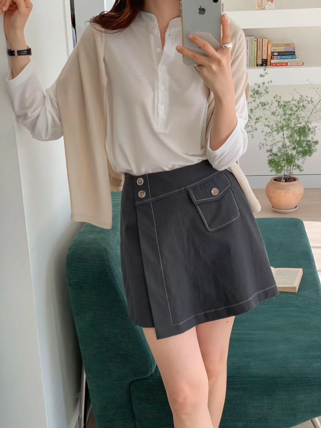 A8 0329質感家後腰彈性棉質感褲裙3色