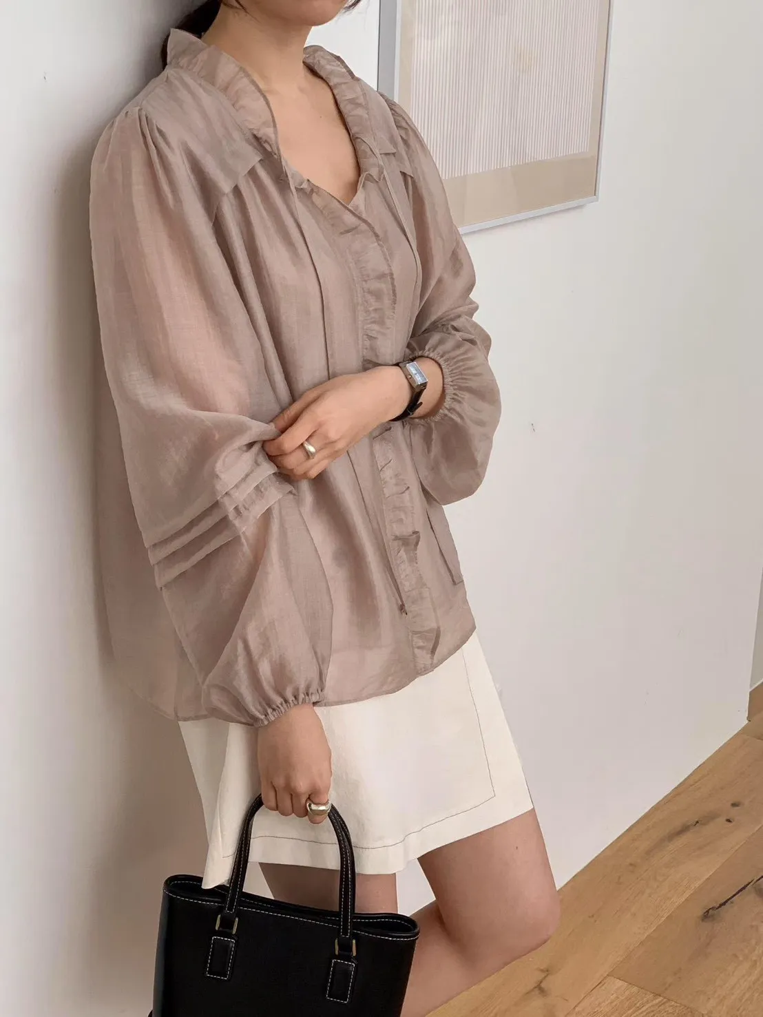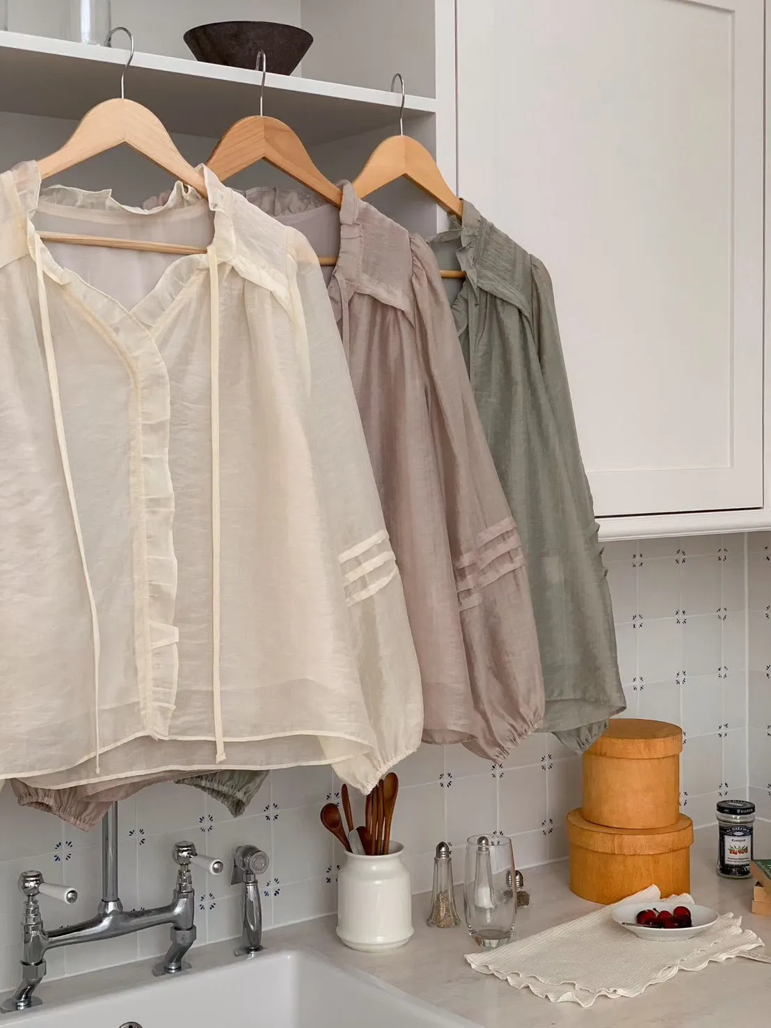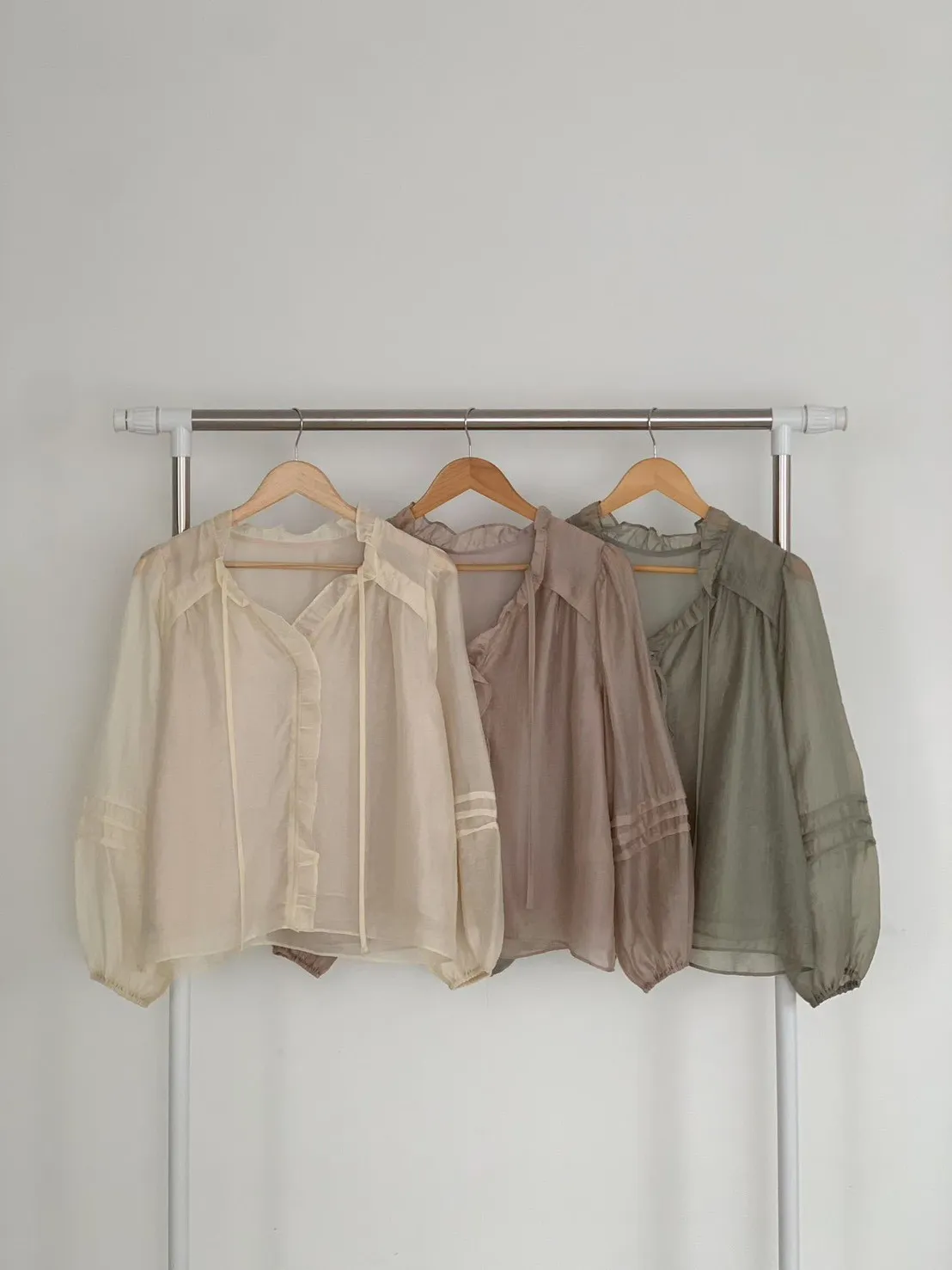 A9 0329質感家V領荷葉綁帶天絲上衣3色