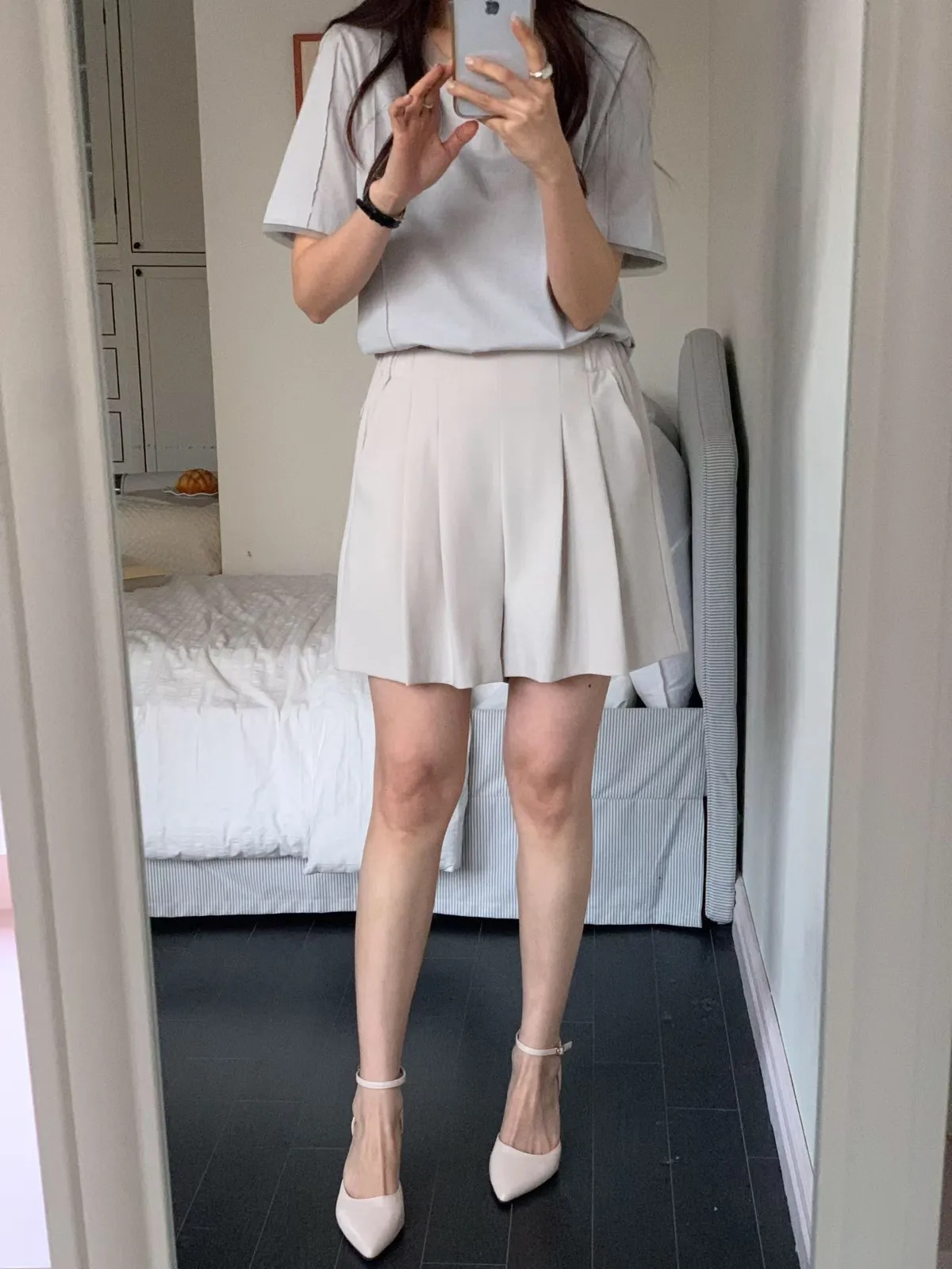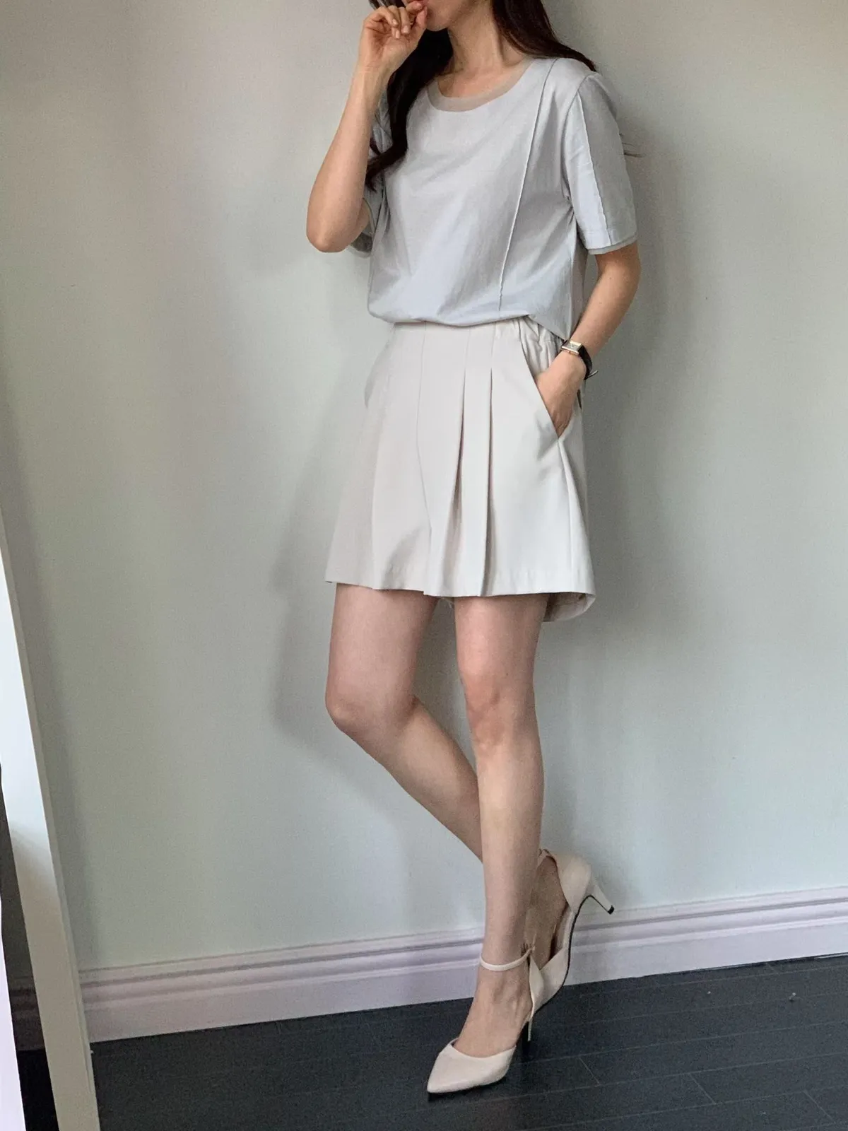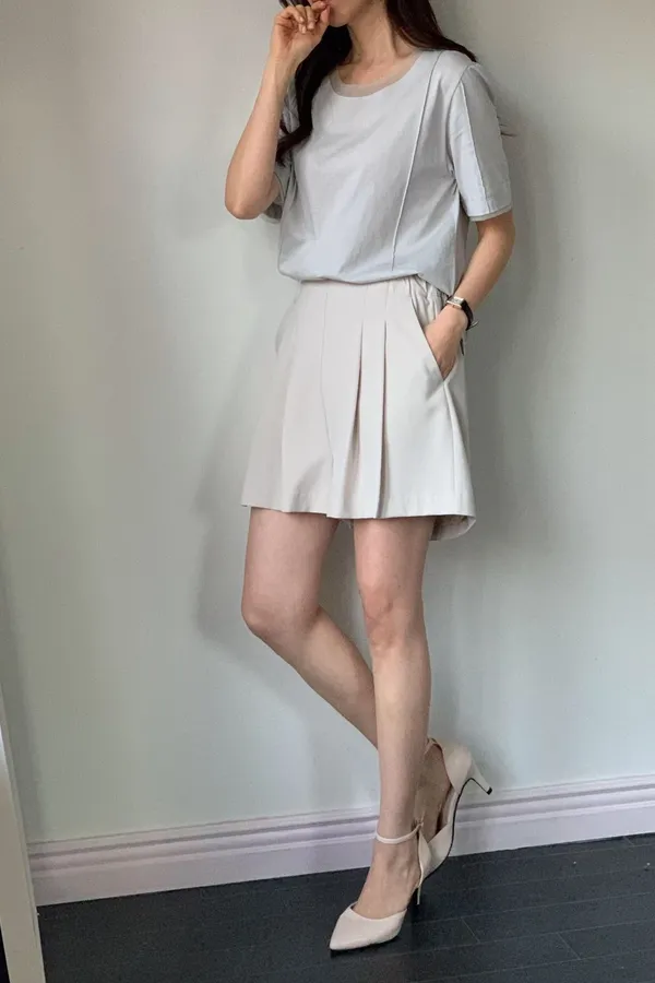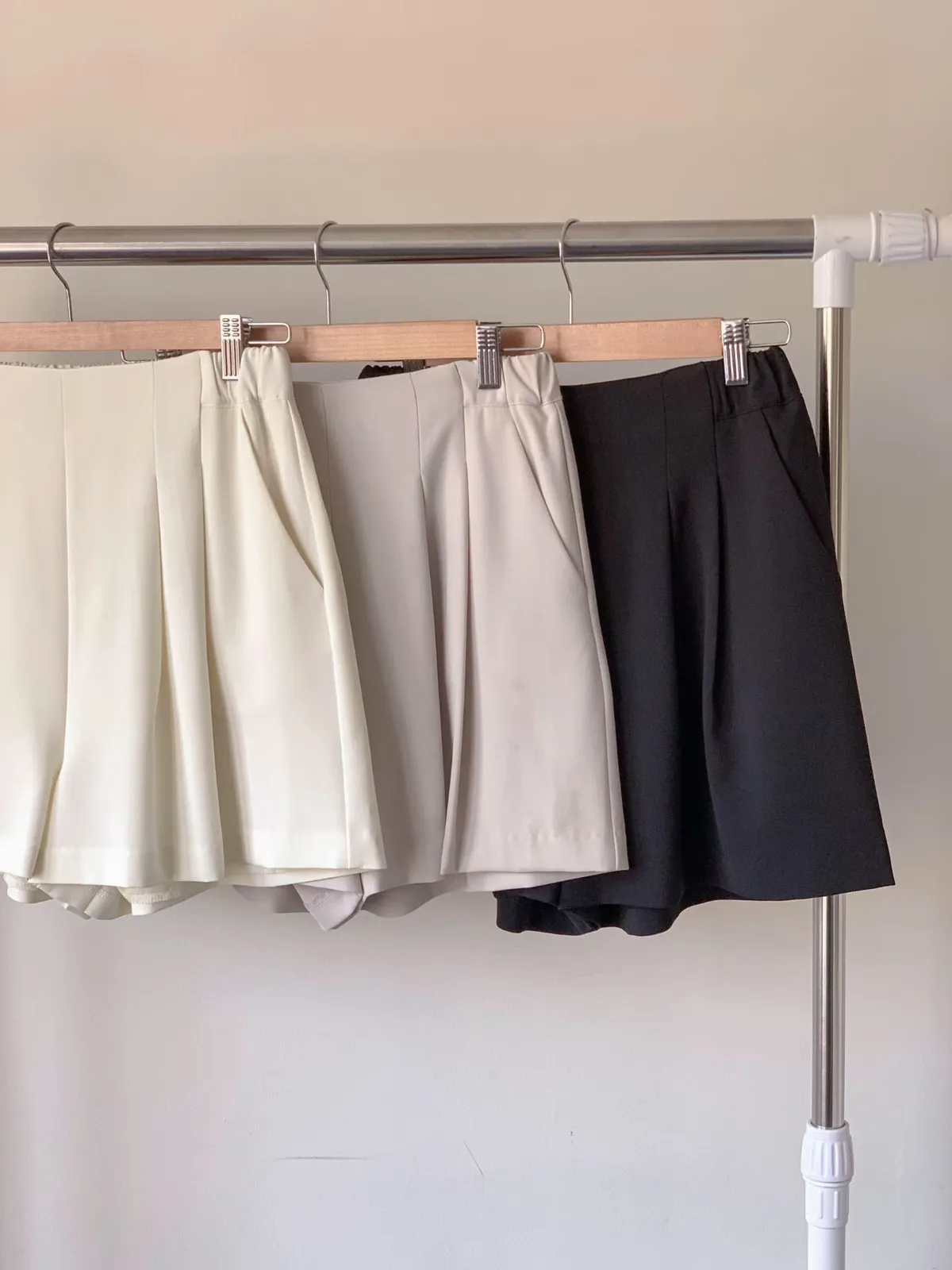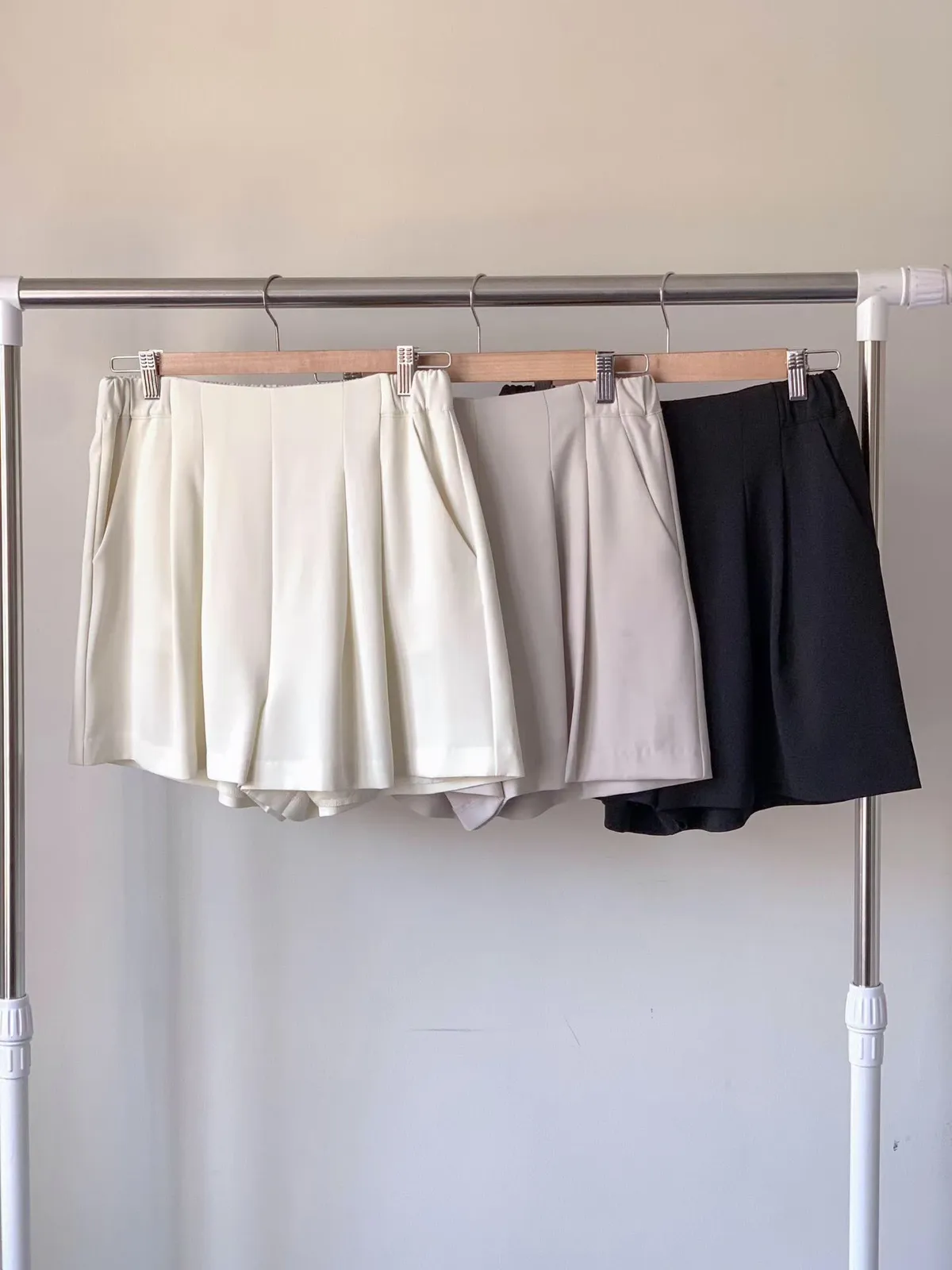 A10 0329質感家後腰彈性打褶雪紡短褲裙3色