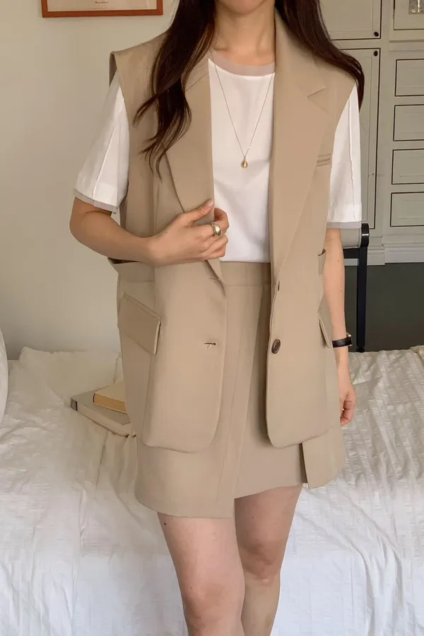 A11 0329質感家翻領西裝腰身可調背心