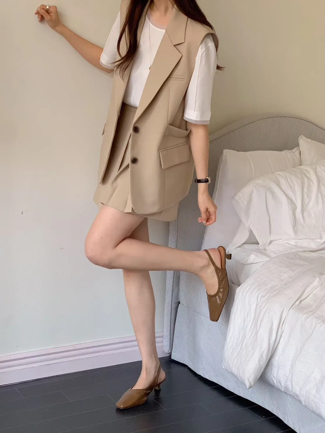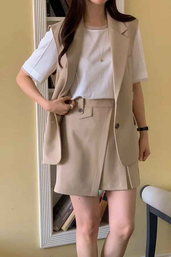 A12 0329質感家後腰彈性西裝短褲裙3色