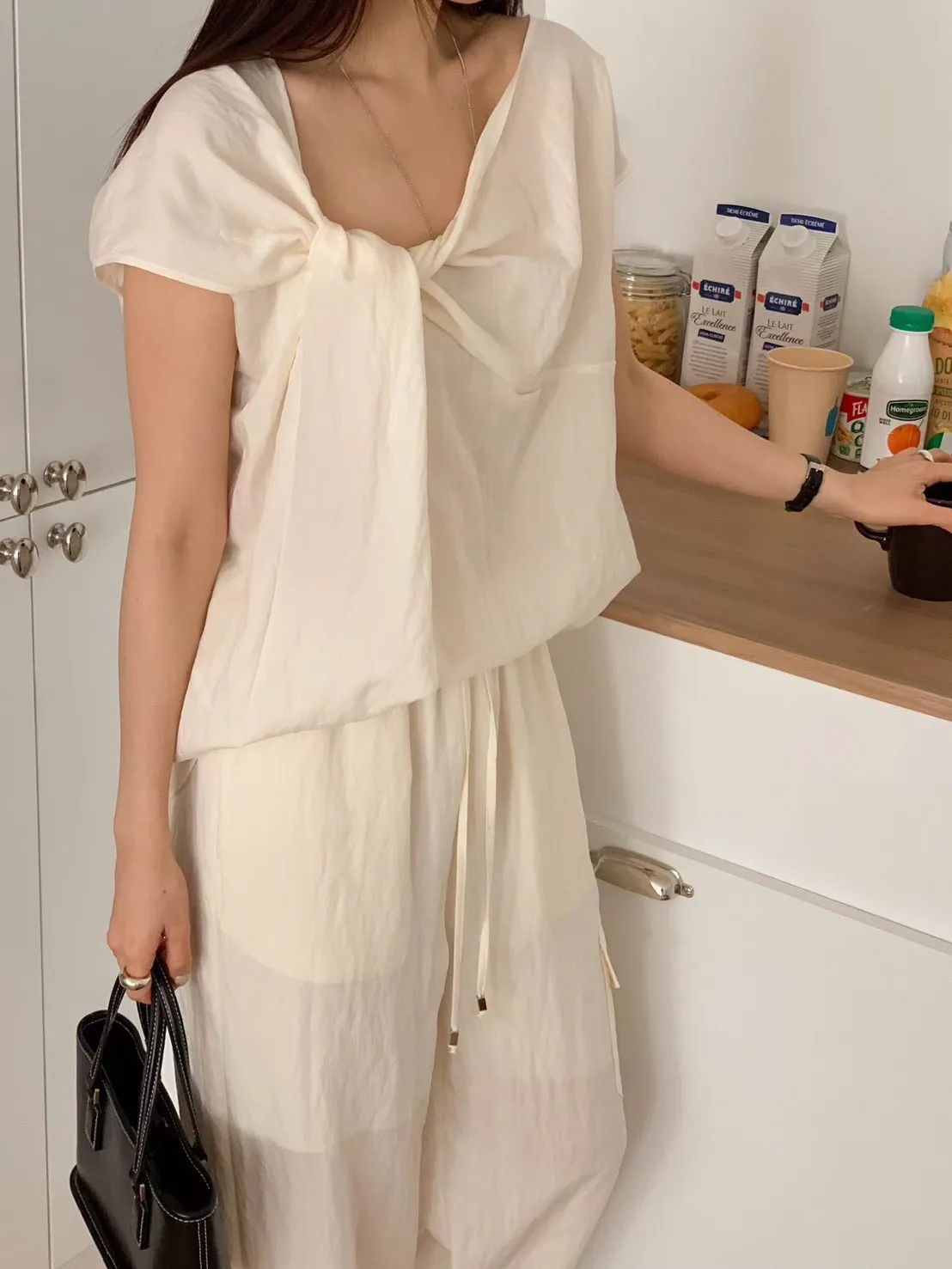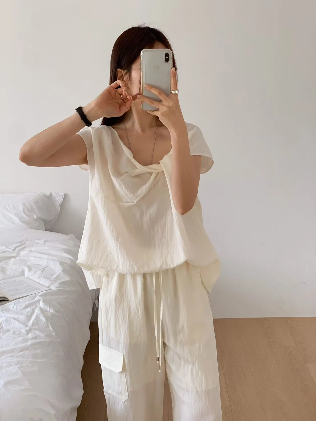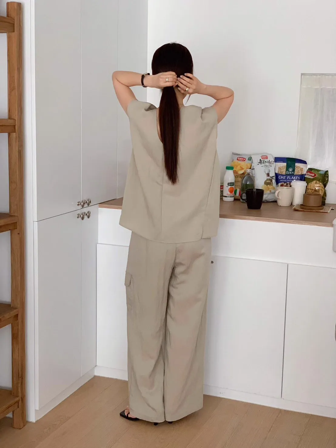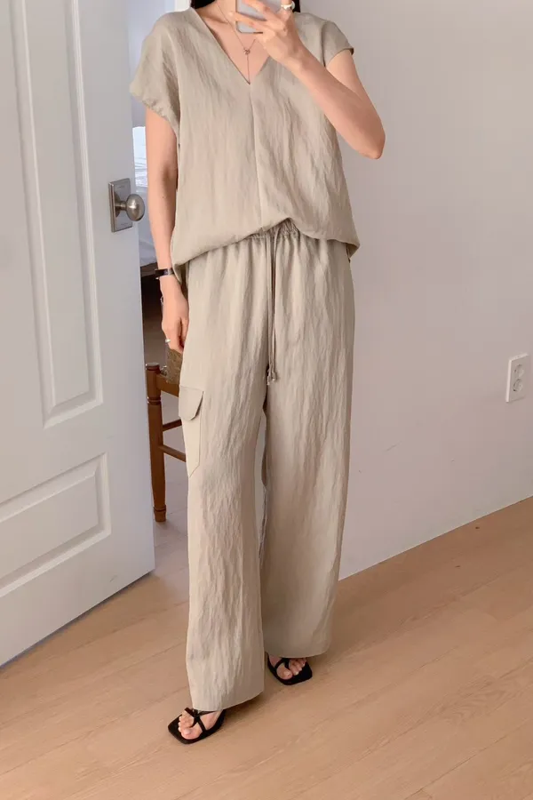 A17 0329(必買)質感家綁帶天絲彈性腰圍工裝褲3色