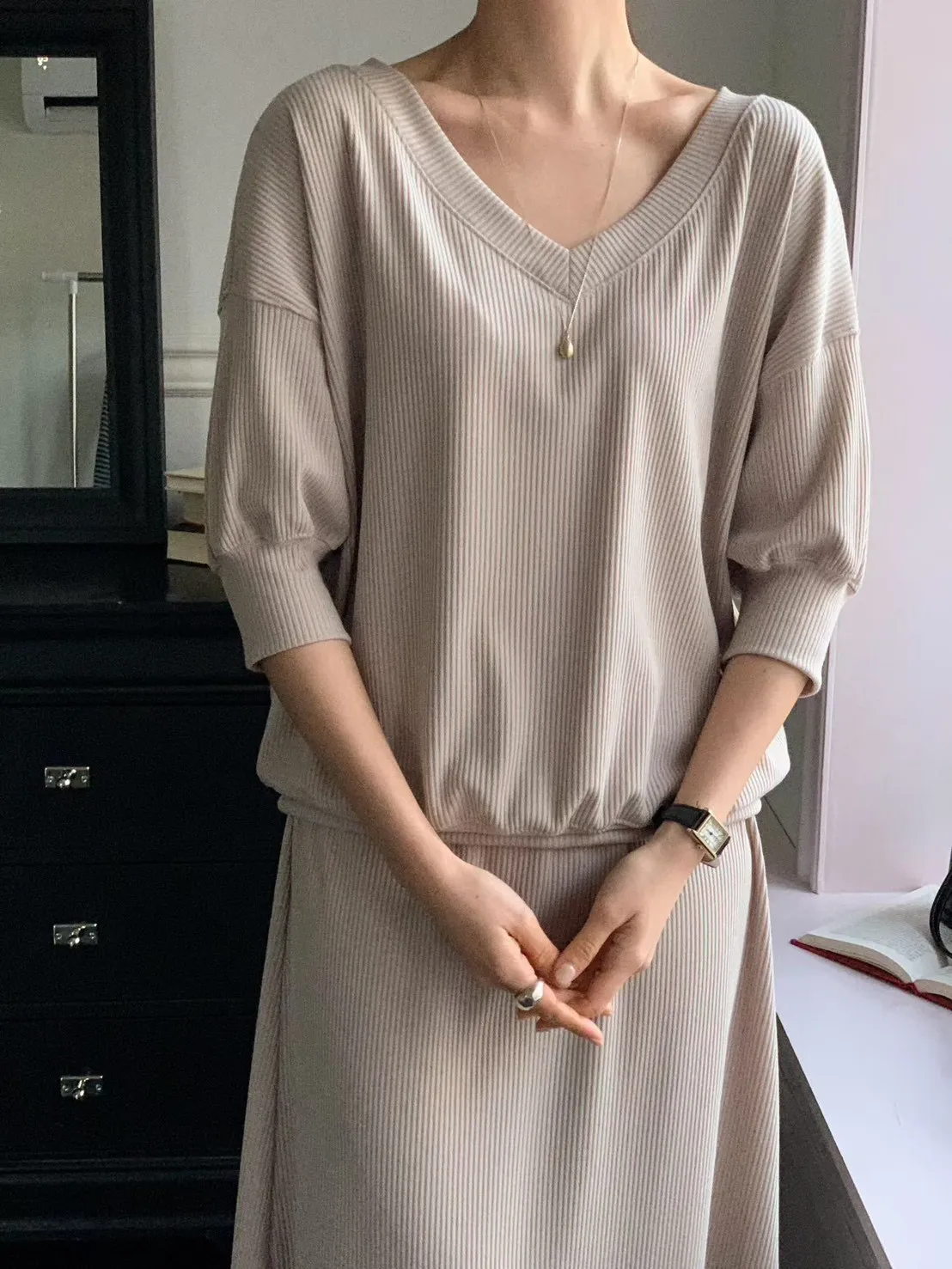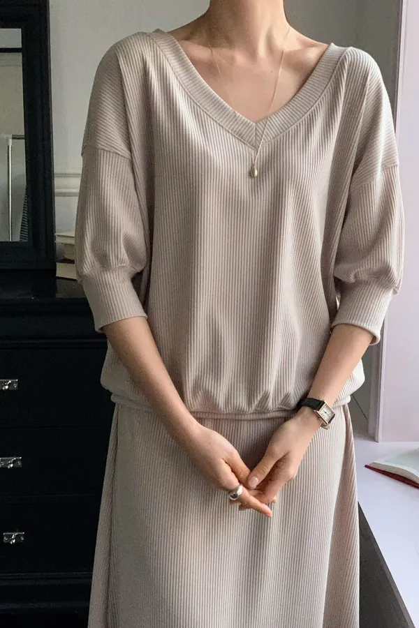 A18 0329質感家兩面穿圓/V領直紋上衣3色