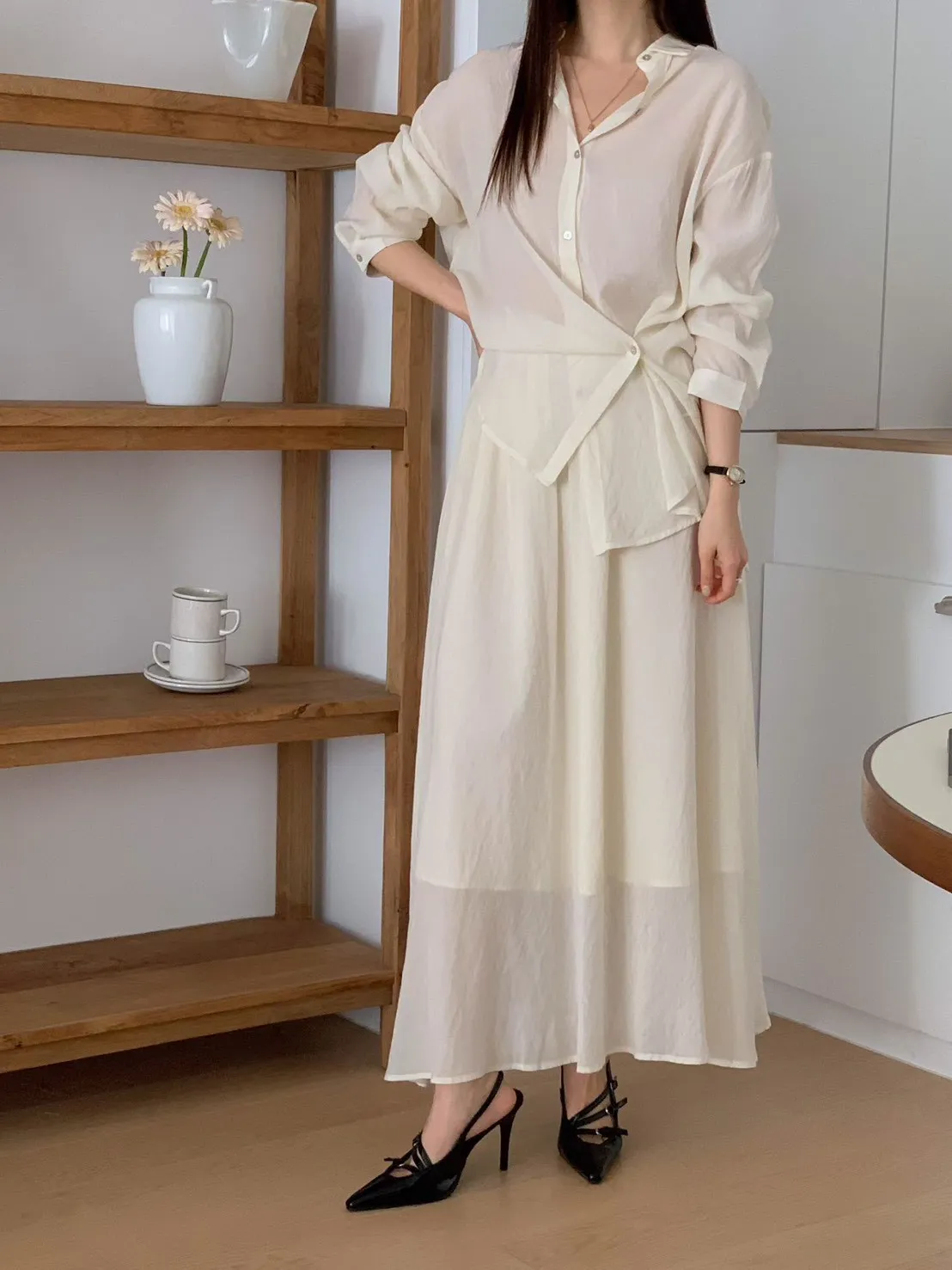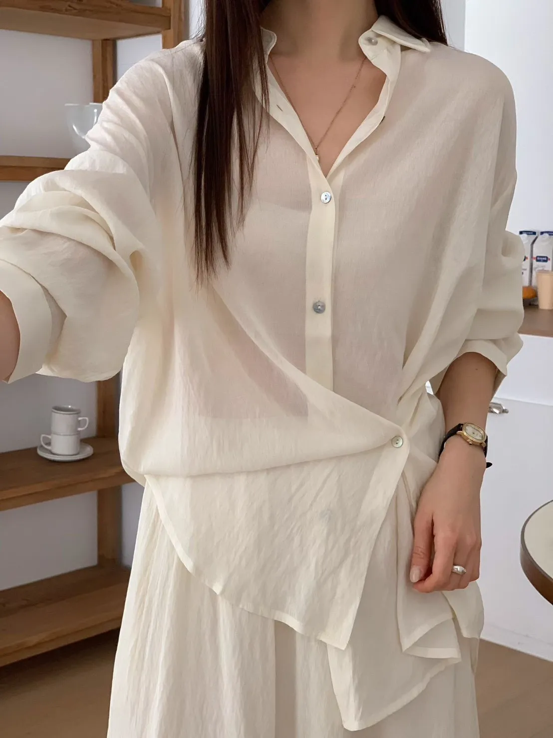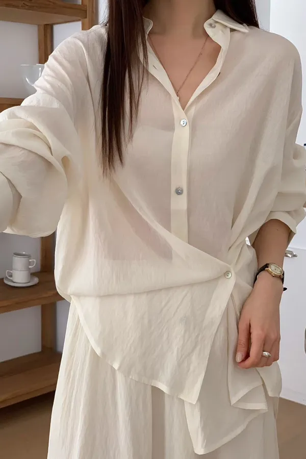 A21 0329(必買)質感家翻領棉麻天絲又薄又涼側釦襯衫4色