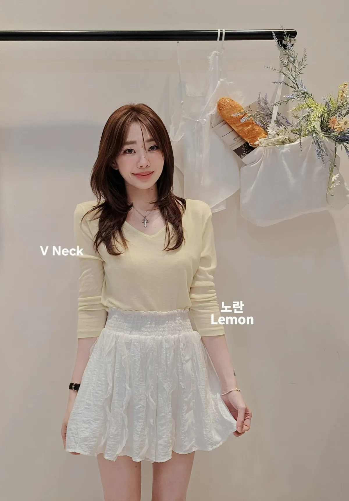 此特價商品已超低特惠價恕不接受退換貨。請能接受此規則的甜心才購買喔! 商品通知加入購物車後請於兩天內至官網付款。 V領/圓領的雙面穿著,7~8分袖設計,基礎修身版型,舒適不緊身~ 除了黑白,另外還有清爽的亮眼的檸檬黃和水晶粉 高比例天絲+涼爽羊毛,厚度偏薄,微透肌,適合夏天穿著的輕薄透氣羊毛面料,透氣親膚,觸感柔軟舒適~ 基礎版型,建議XS~L穿著 70%天絲+30%涼爽羊毛(summer wool) ★搭配:miu里miu氣小褲裙 (( 歐尼161cm/47kg ))