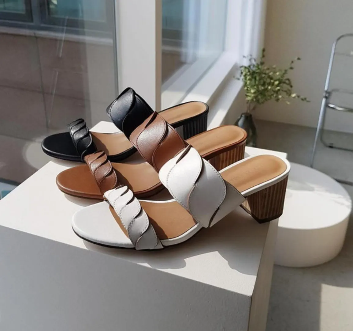 A1 0331度假風真皮中跟涼鞋(225~250)
