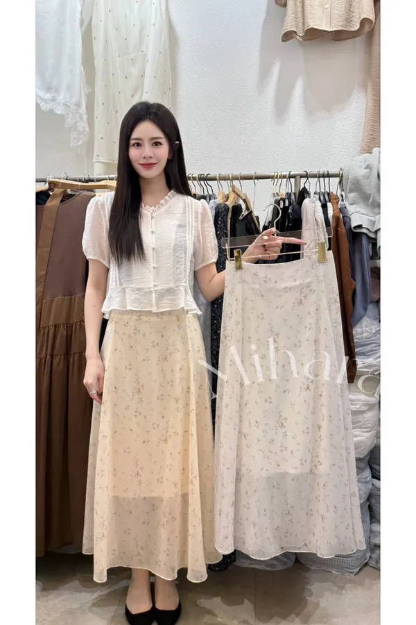 A20 0331後腰彈性雪紡碎花裙3色