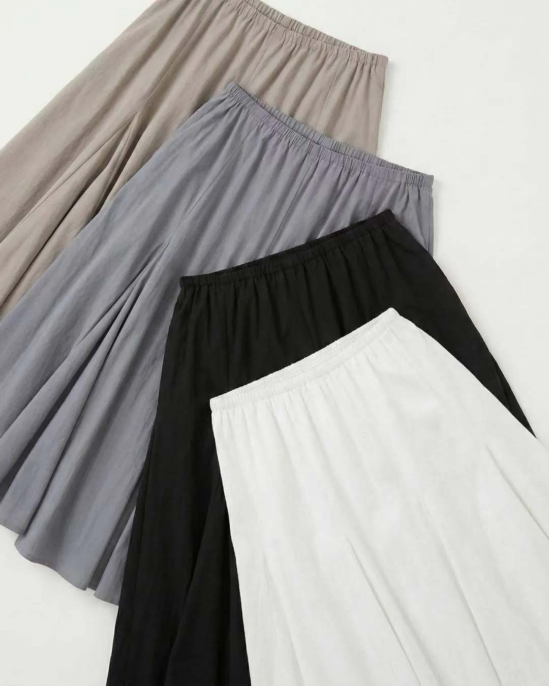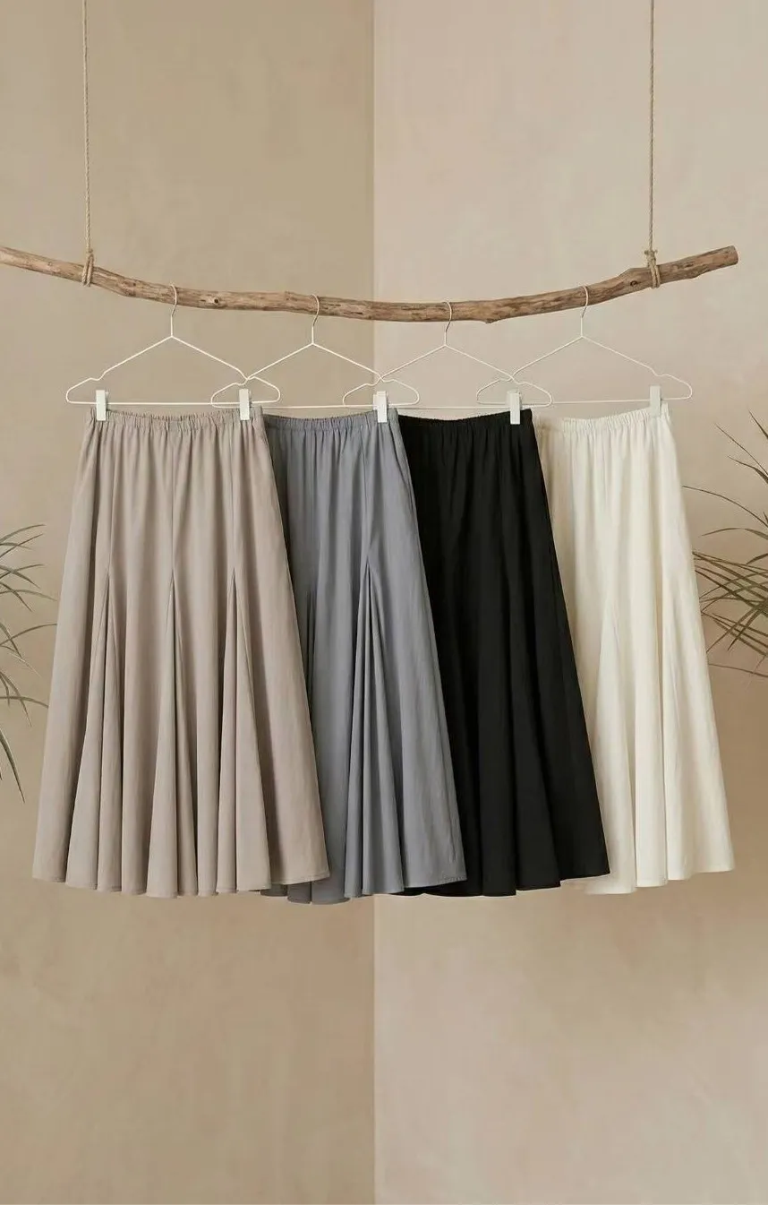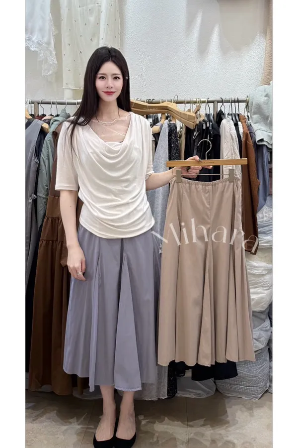 A23 0331彈性腰圍壓褶人造絲傘裙4色
