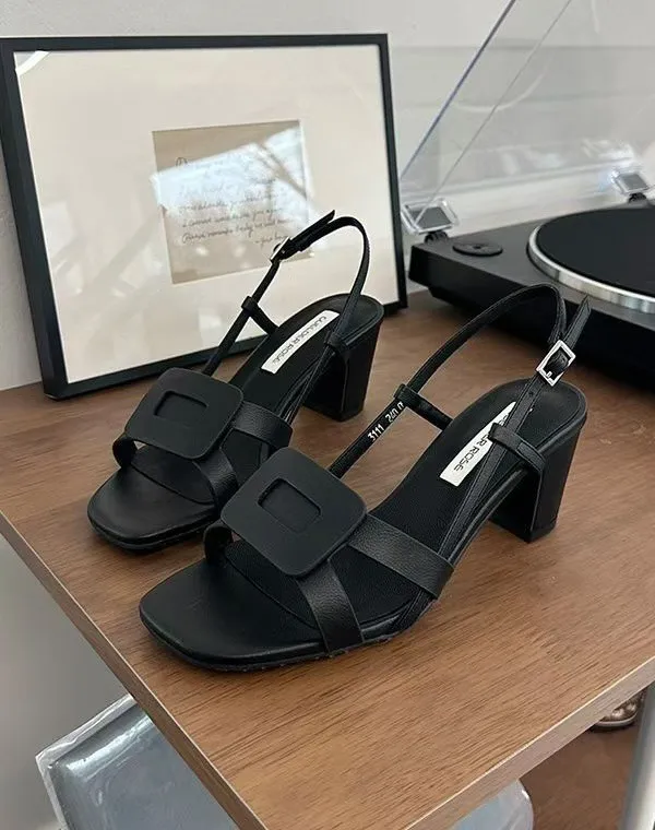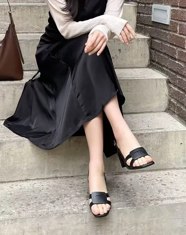 A9 0331漂亮真皮中跟涼鞋(225~250)