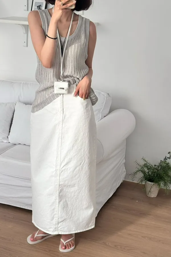 A30 0331後開衩H字牛仔半裙(S/M/L)